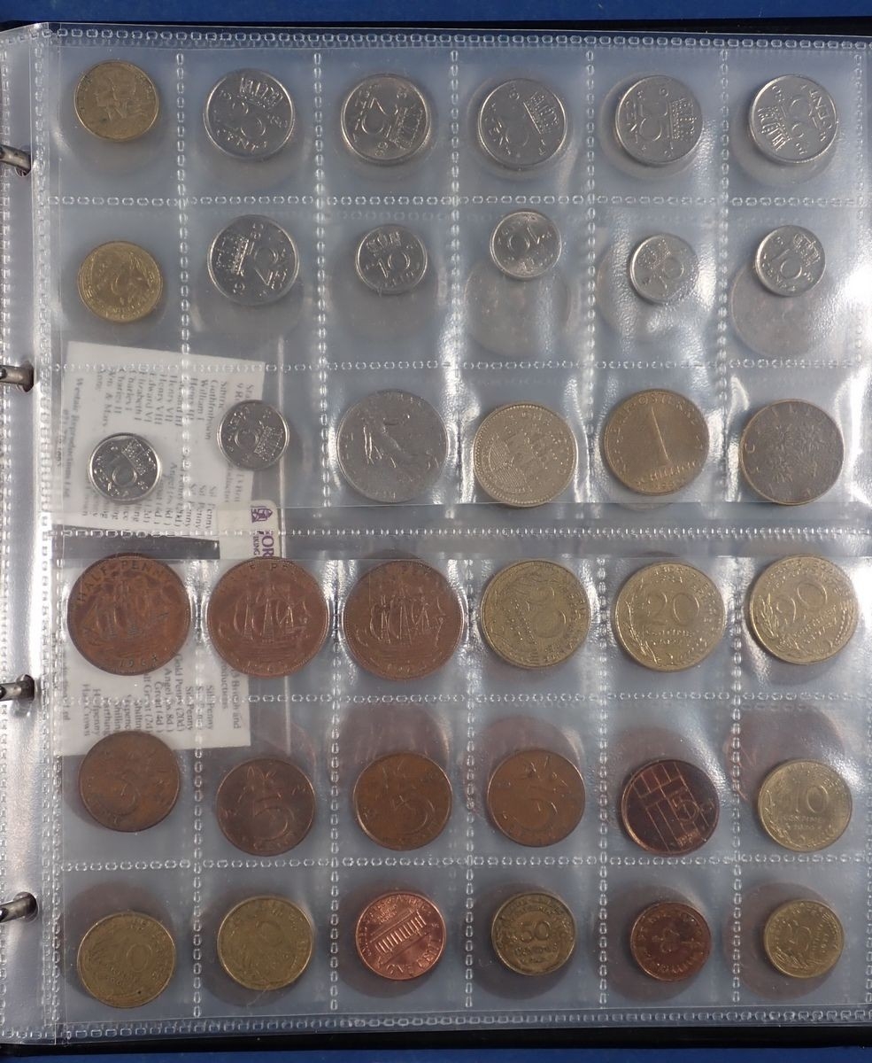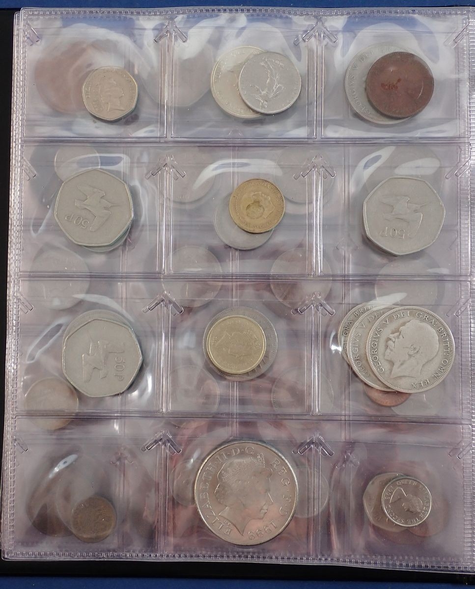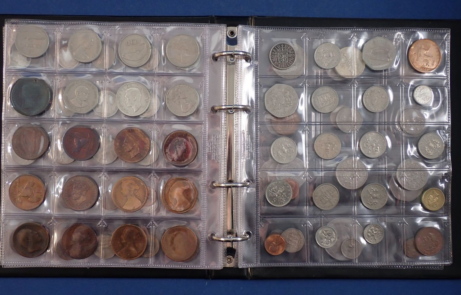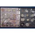 An album of British and World coins including silver examples, pre 1920 shillings x3, threepences x9, pre 1947 .500 silver half crowns x3, florin x1, shillings x2, sixpence x1 and threepences x5, Victoria - Elizabeth II plus Canada, Kenya, Eire etc