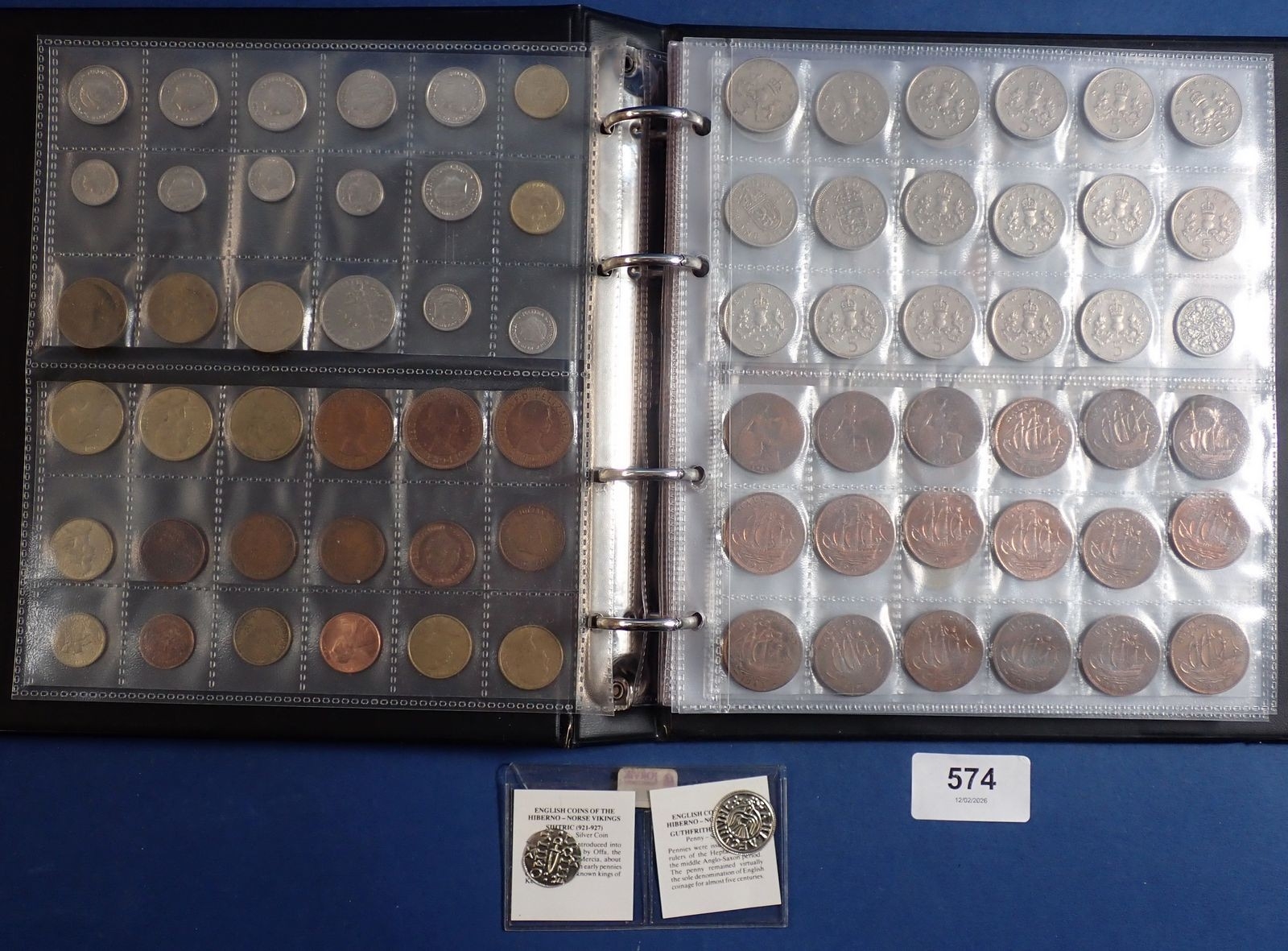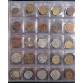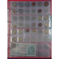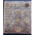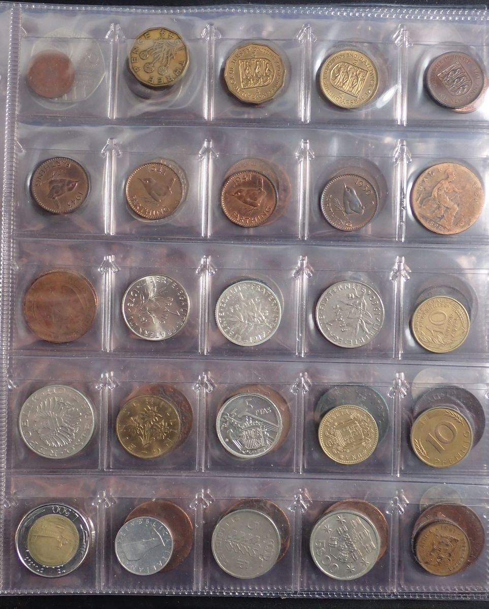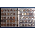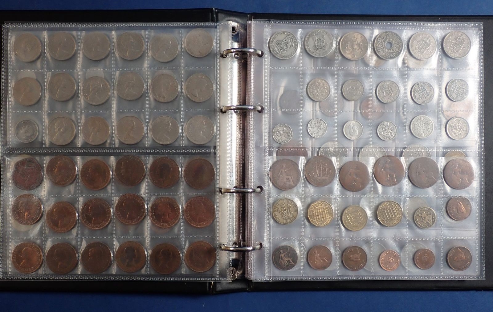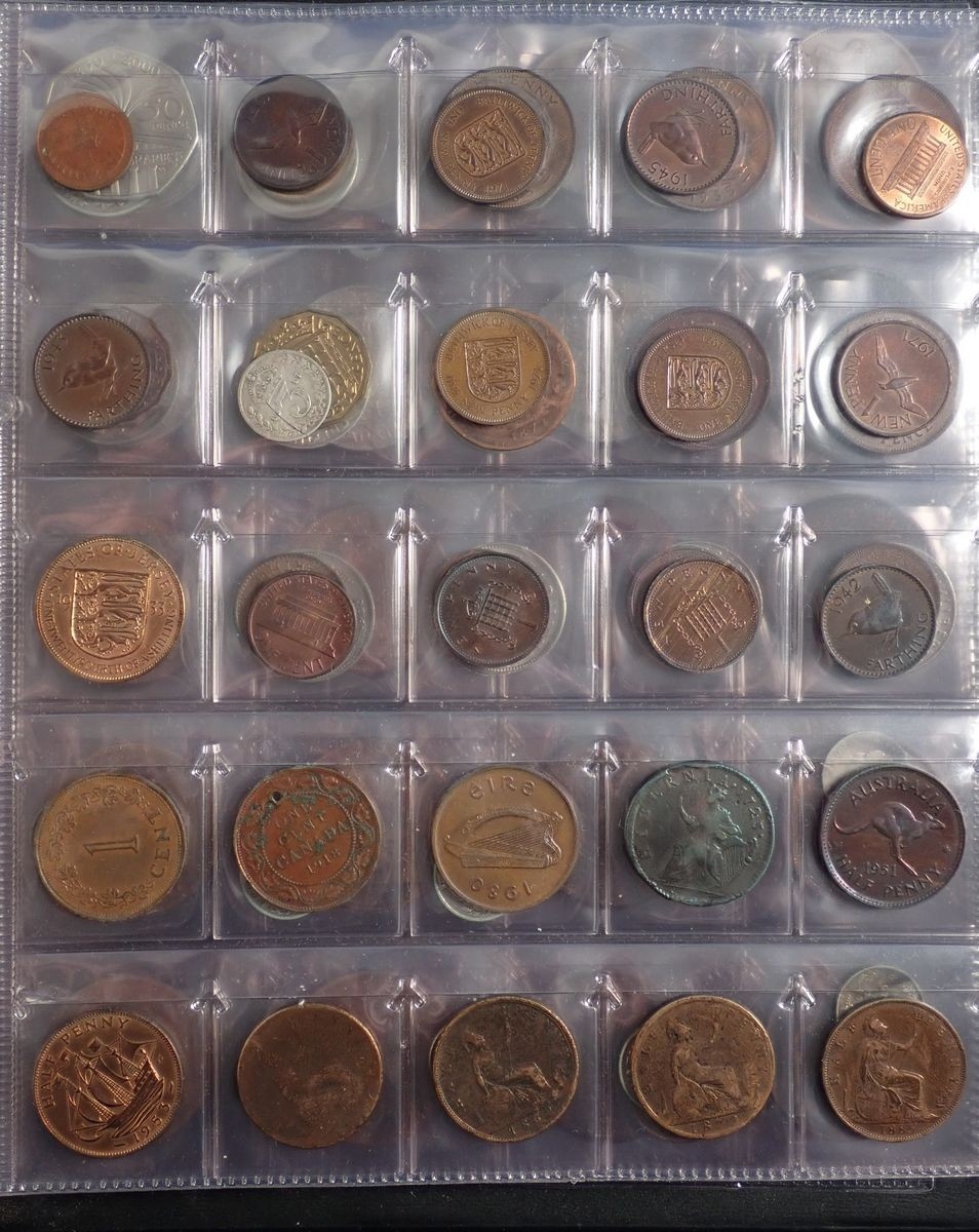An album of British and World coins including silver examples, pre 1920 shillings x3, threepences x9, pre 1947 .500 silver half crowns x3, florin x1, shillings x2, sixpence x1 and threepences x5, Victoria - Elizabeth II plus Canada, Kenya, Eire etc