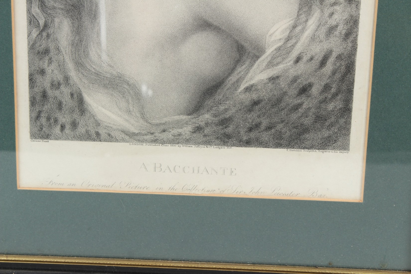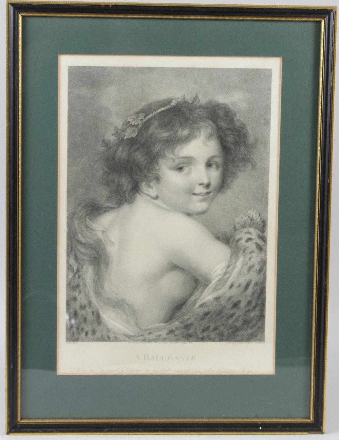 BARTOLOZZI AFTER GREUZE 'Bacchante' stipple engraving 35 x 25cm (image)