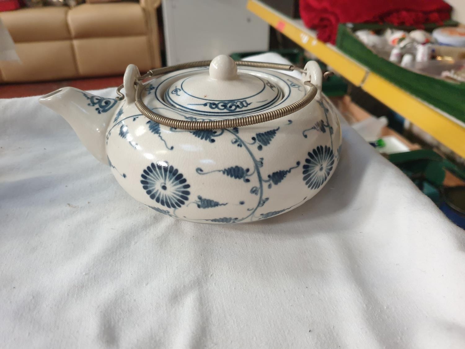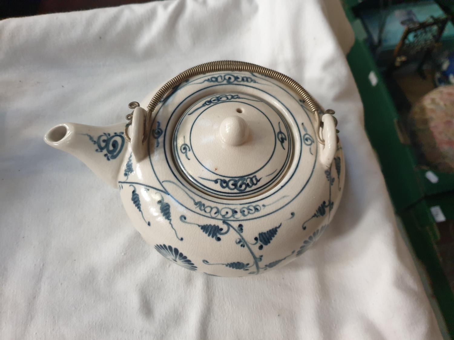 Korean Ceramic Kettle (Possibly Dynasty) 1892-1910 AD with Unglazed Blue Decoration.