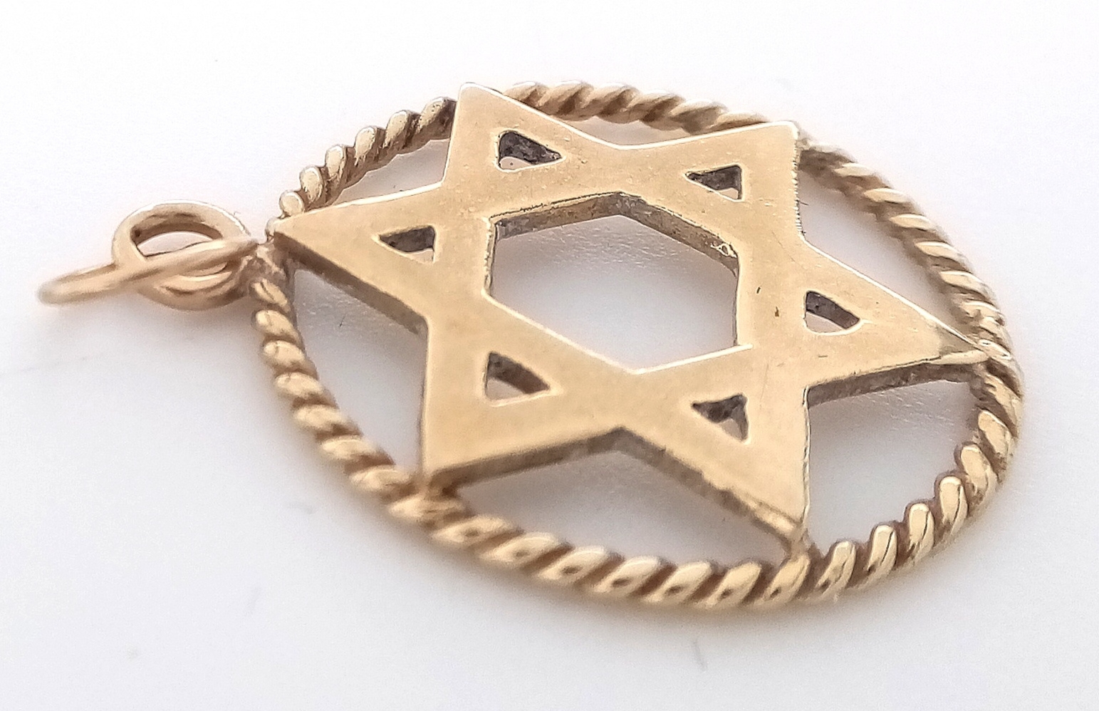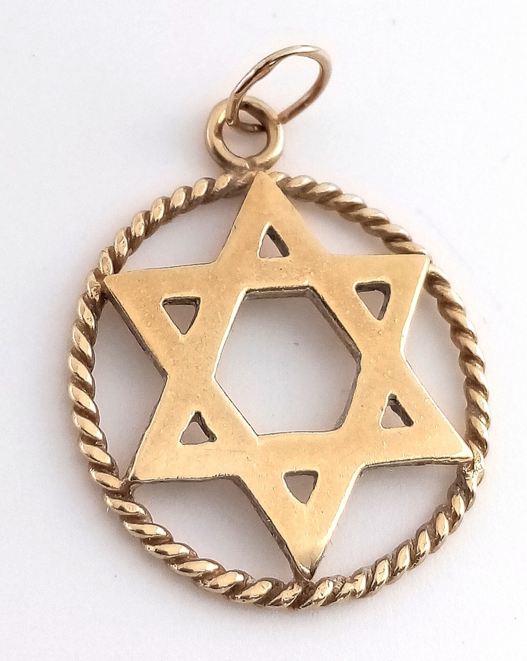 Classic 9 CARAT GOLD ‘STAR OF DAVID’ PENDANT. Attractive rope surround. Full UK hallmark. 1.7 grams.