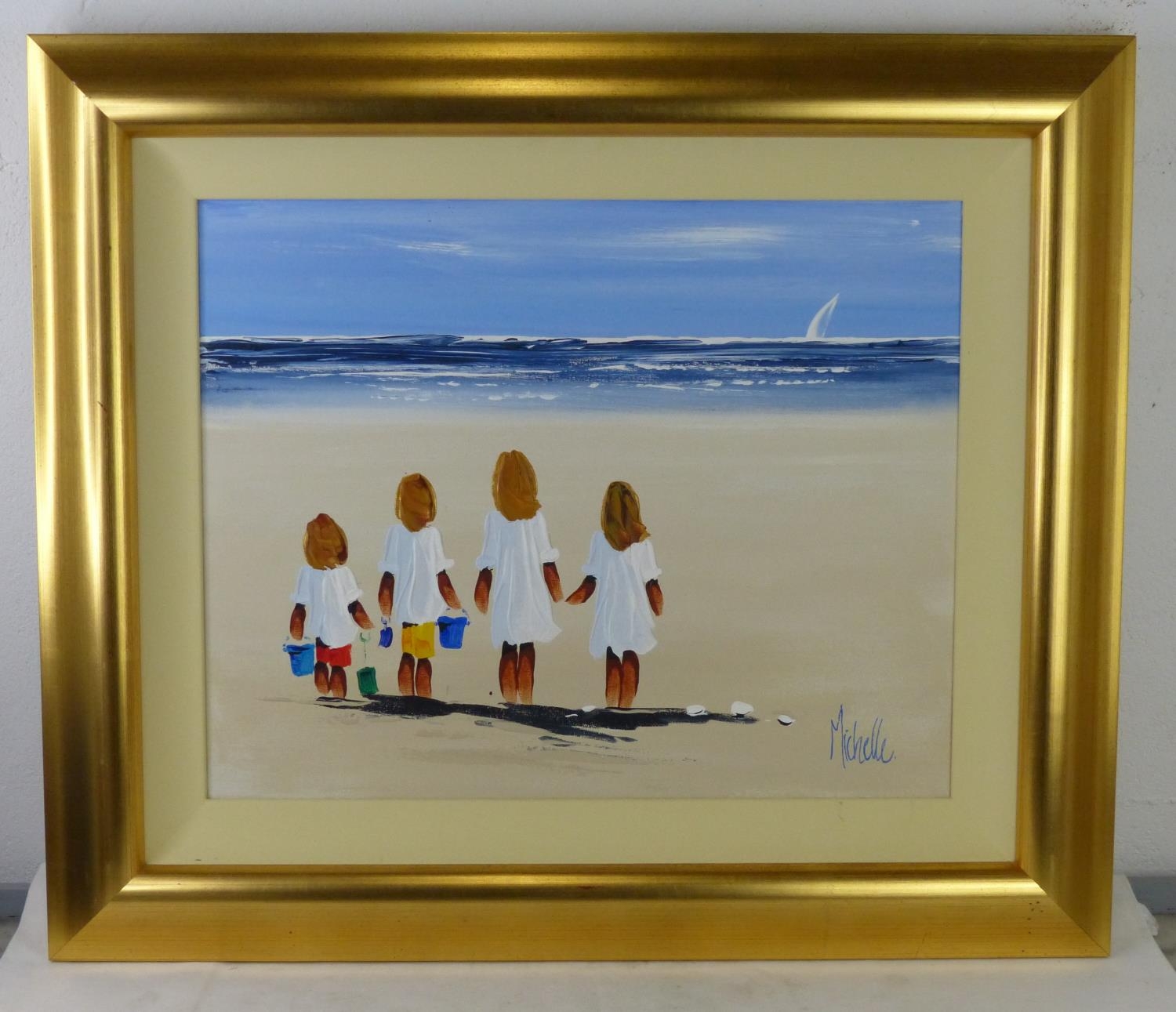 A large gilt framed oil painting by Michelle Carlin. Measuring 70x59cm including frame.