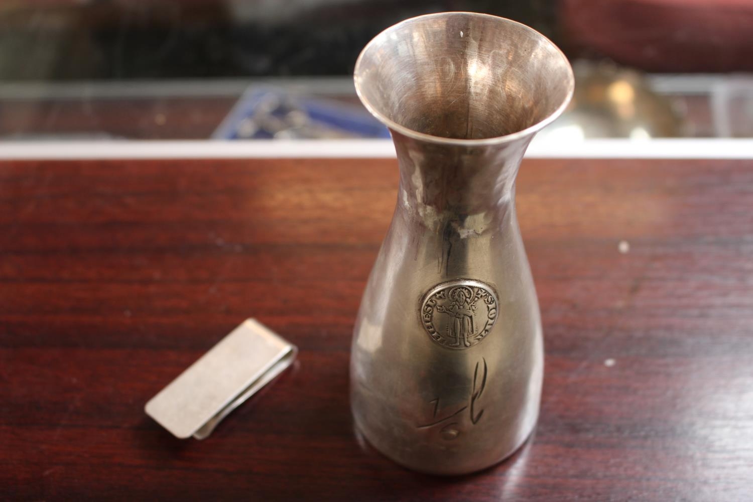 Silver Money Clip and a White Metal small Carafe149g total weight
