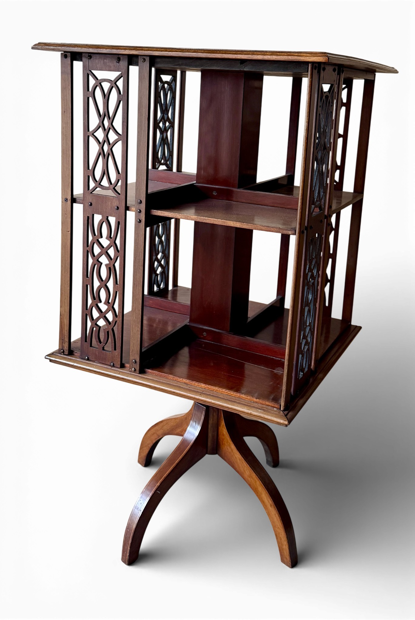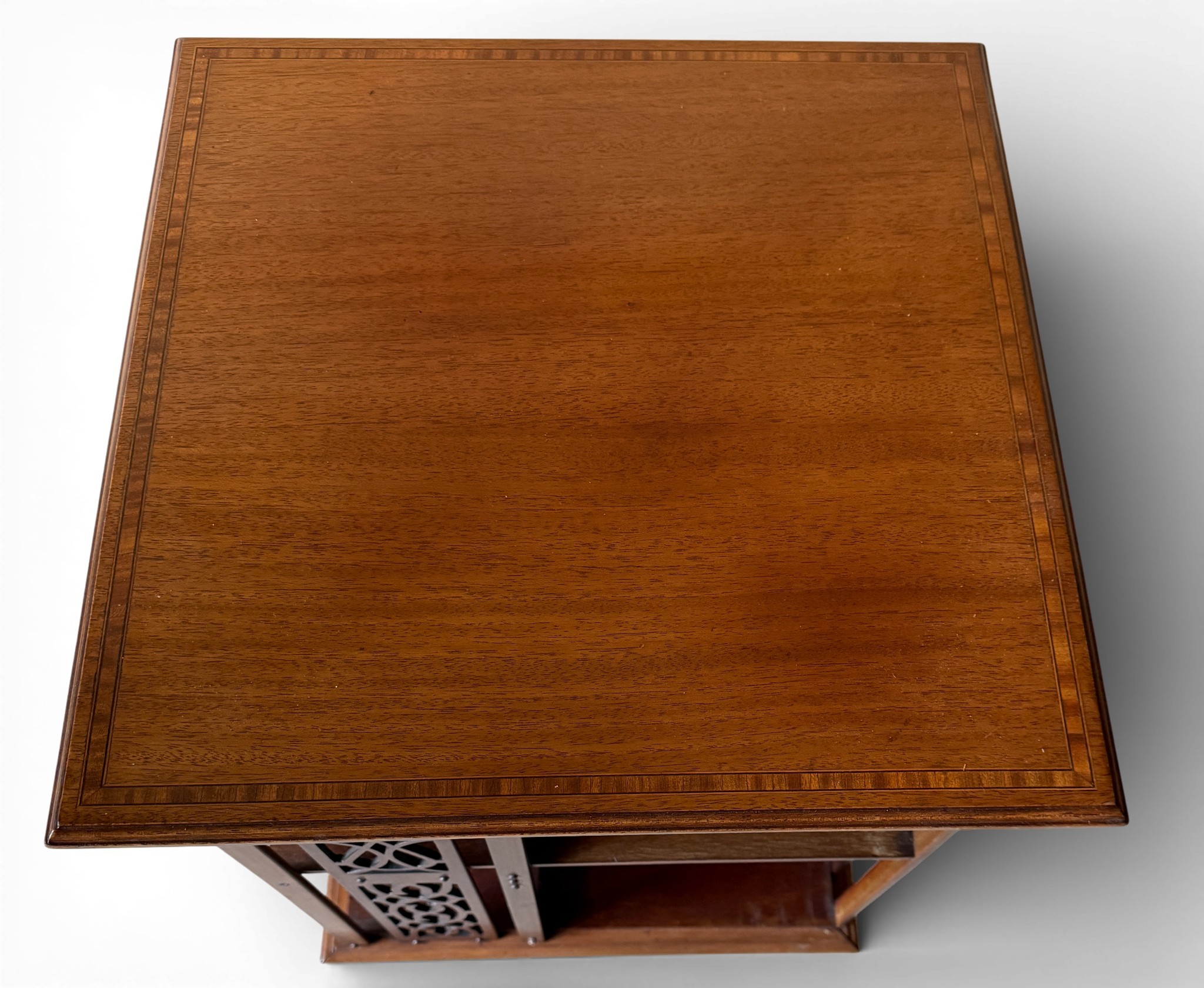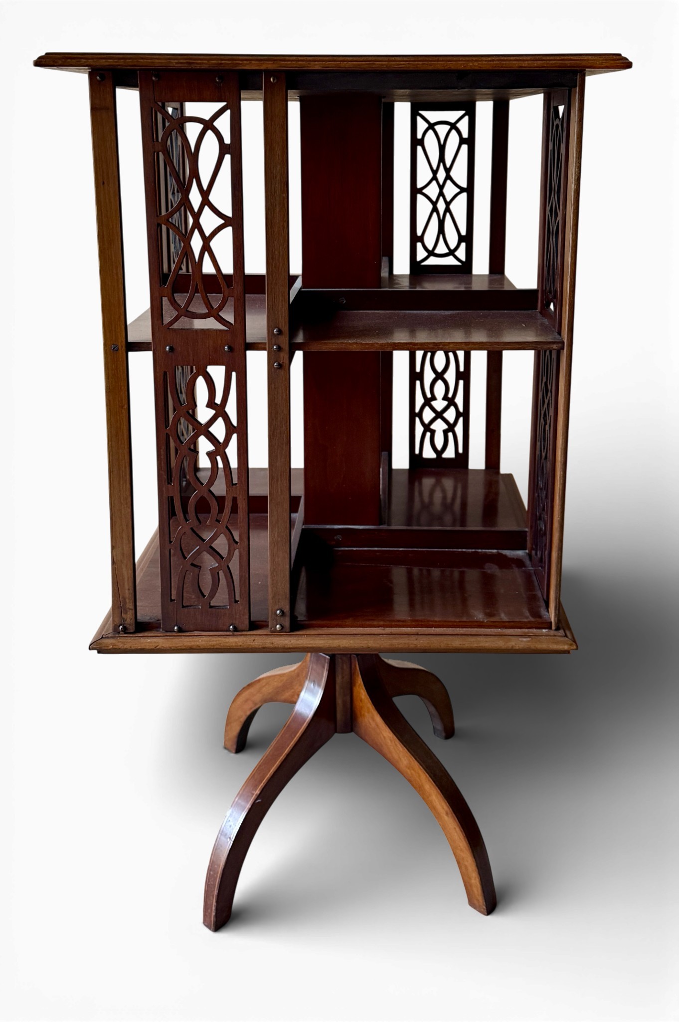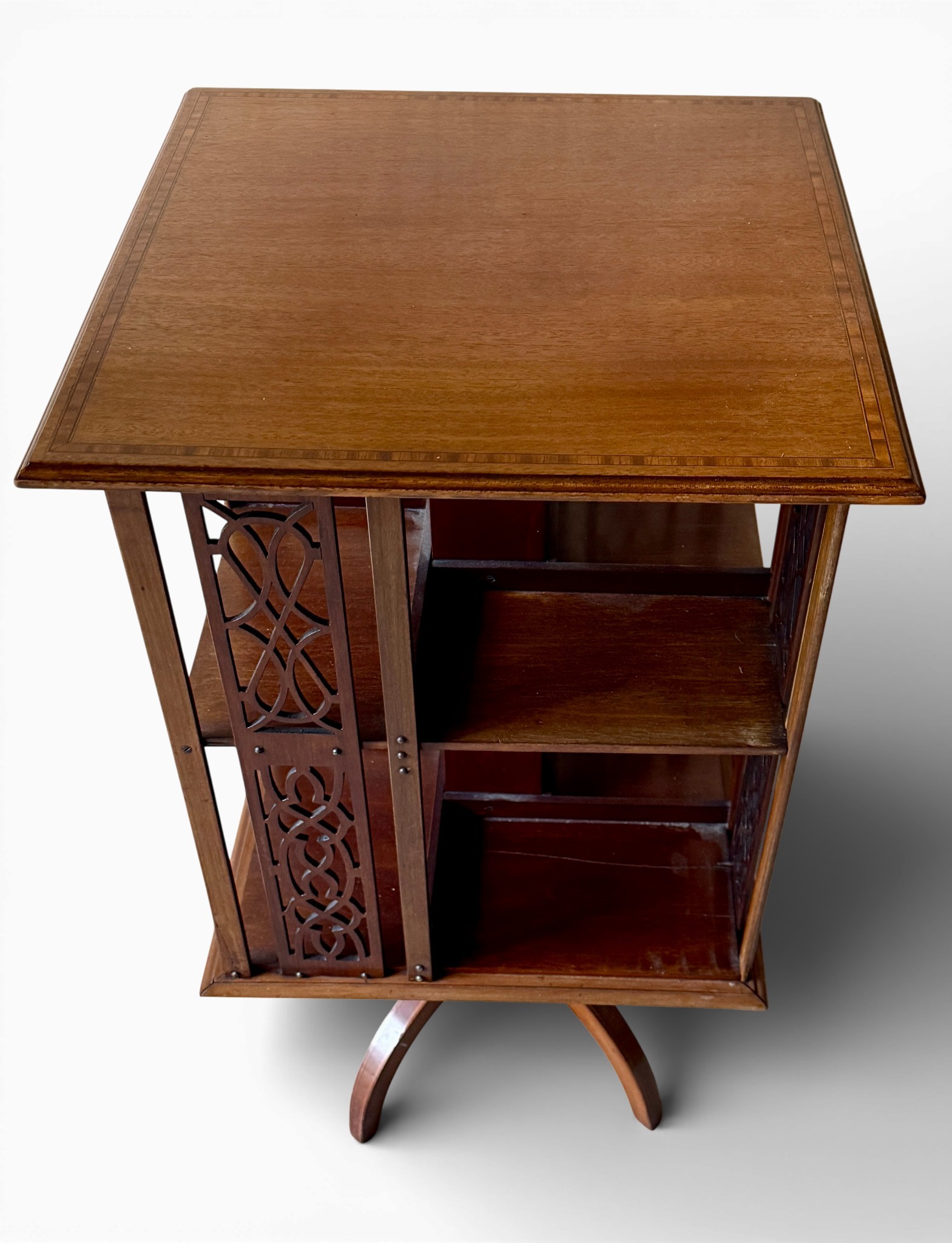 An Edwardian mahogany inlaid revolving bookcase. 43cm x 43cm x 81cm h.