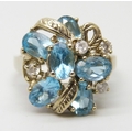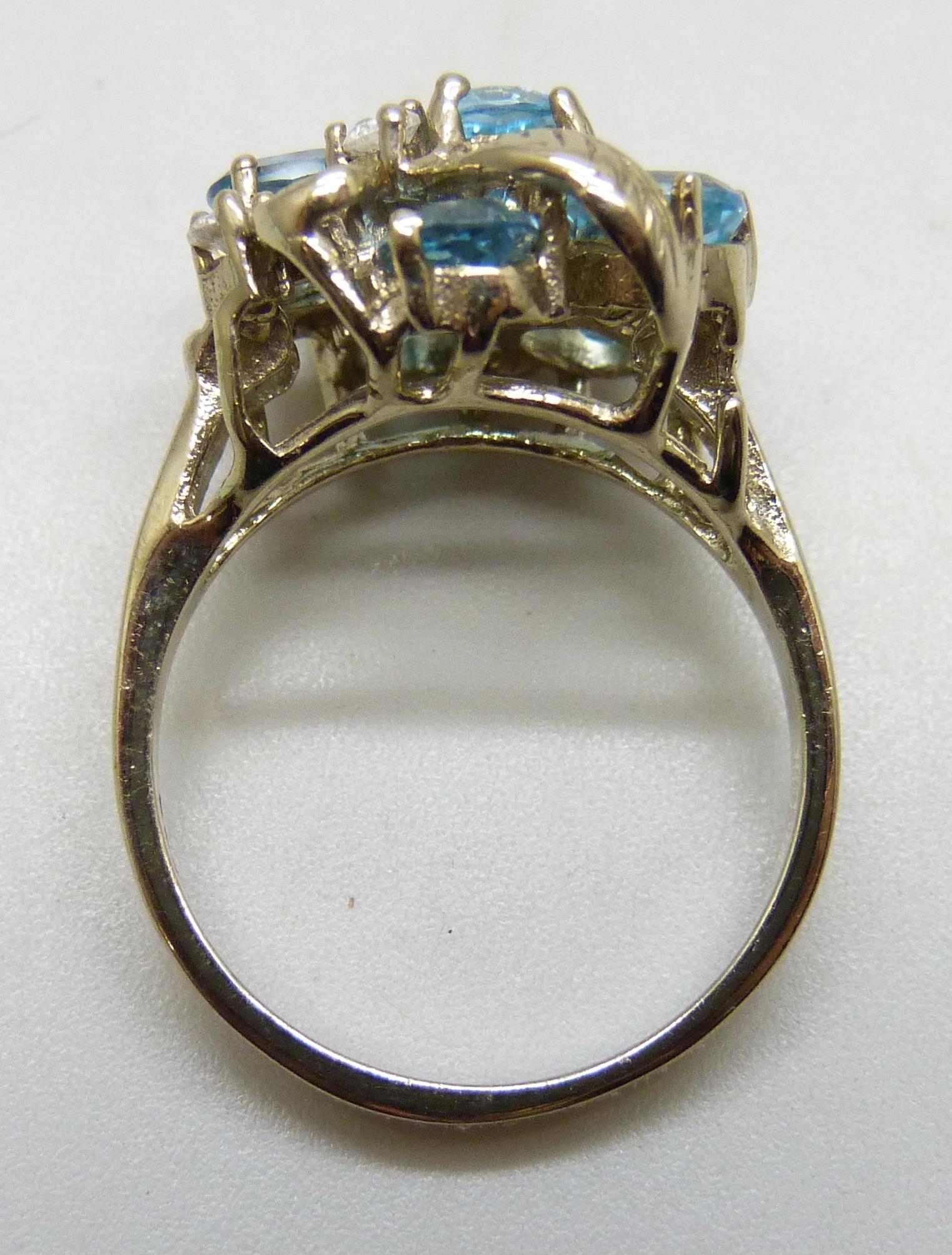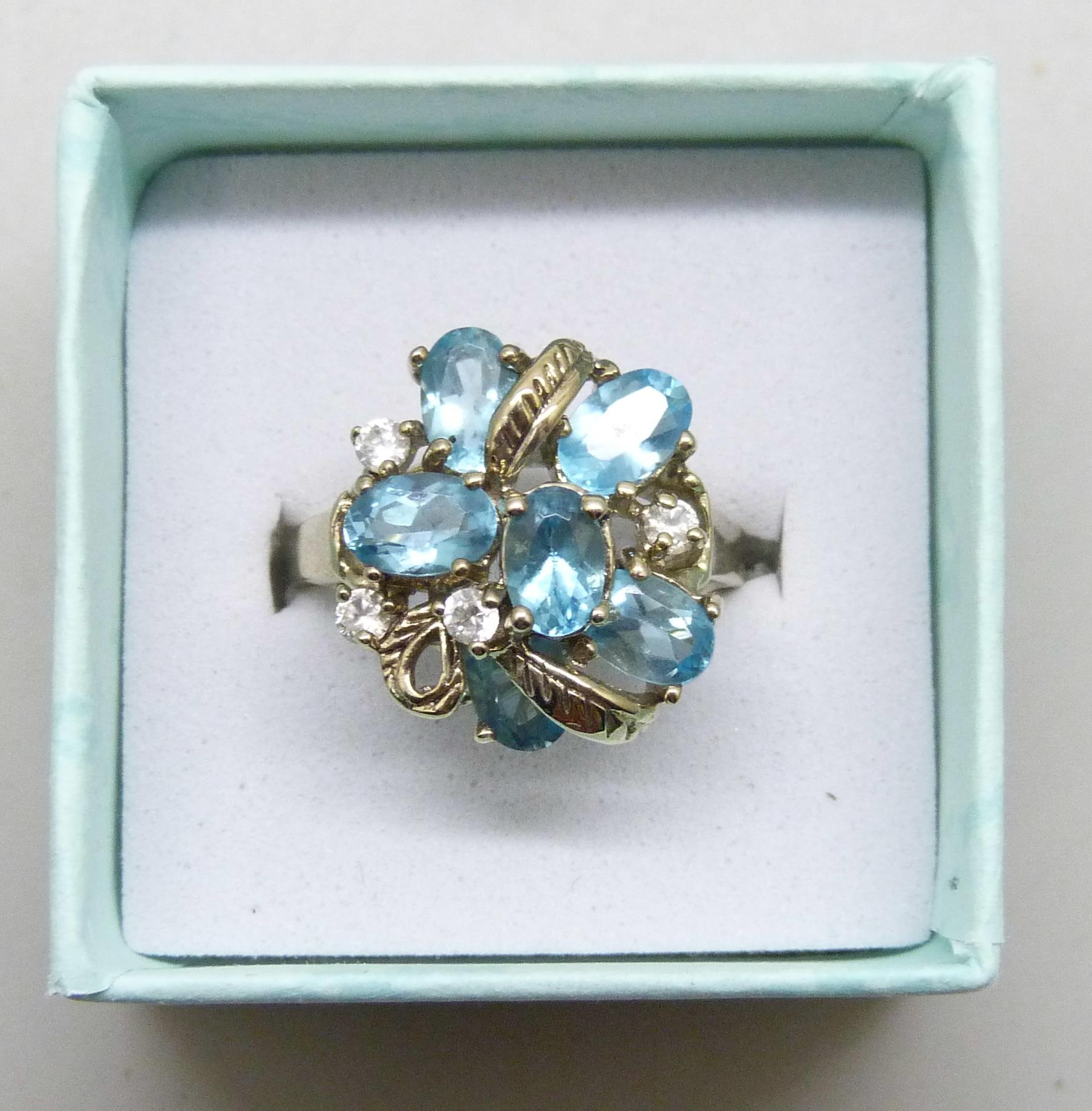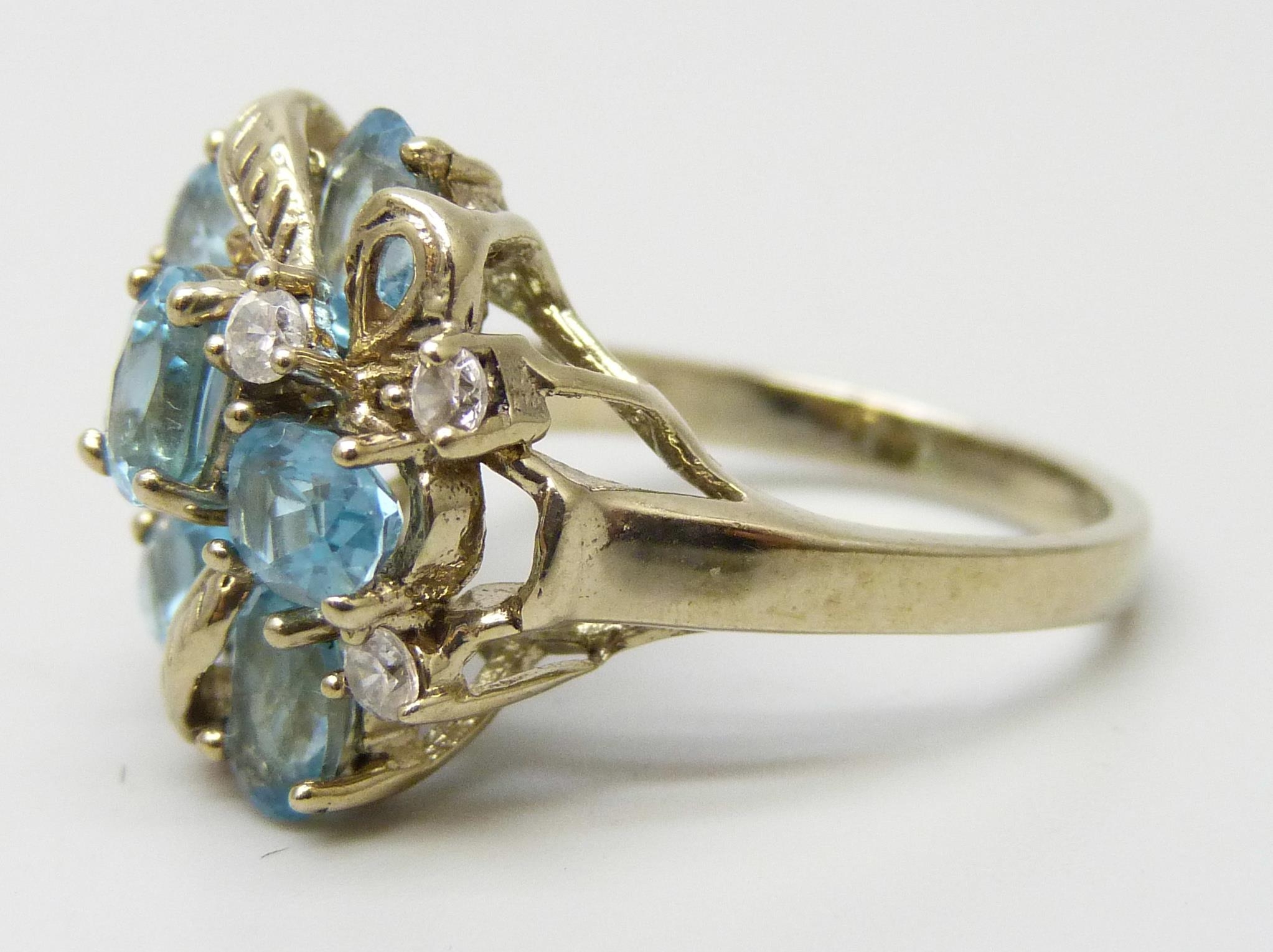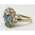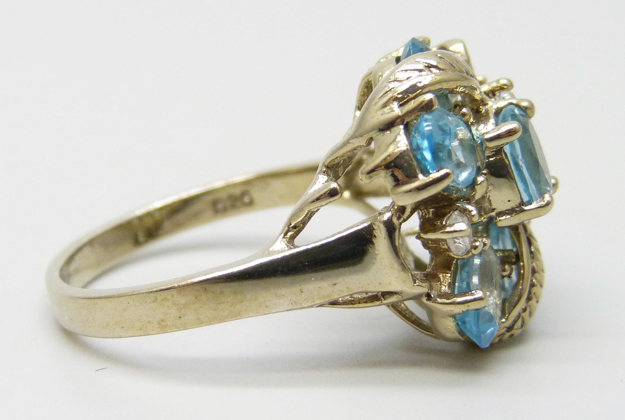 A silver gilt, topaz and white stone cluster ring, P