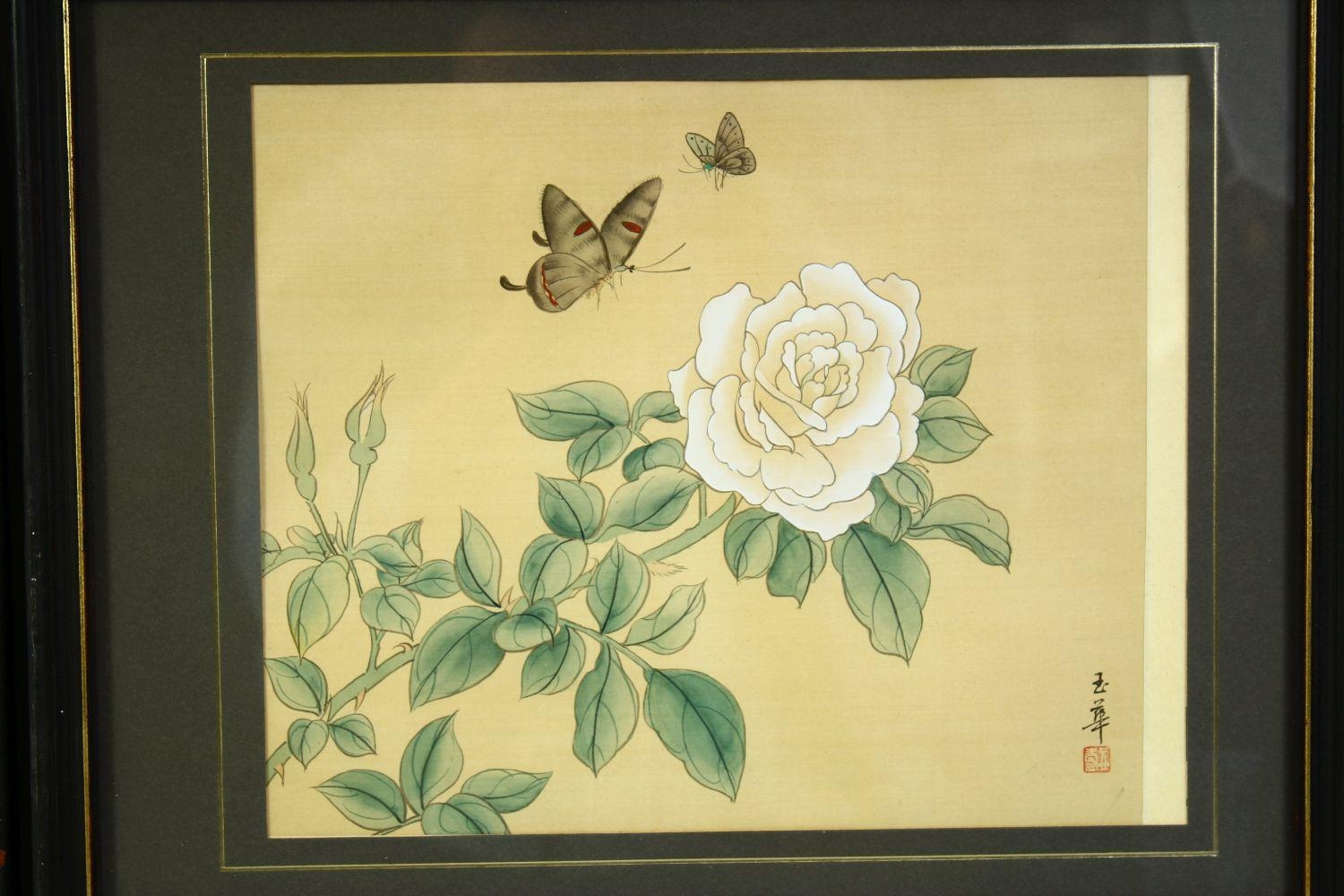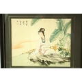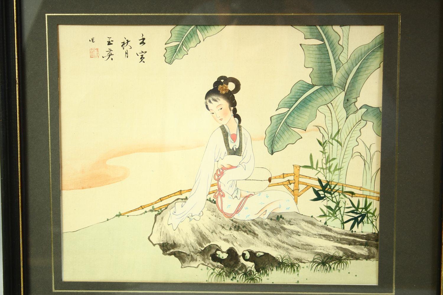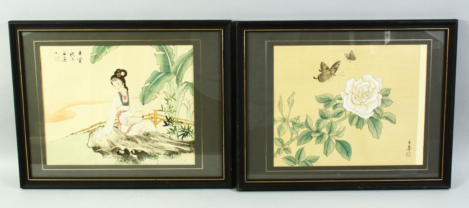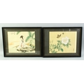 TWO CHINESE PAINTINGS ON SILK, both framed and glazed, each 33.5cm x 42.5cm.