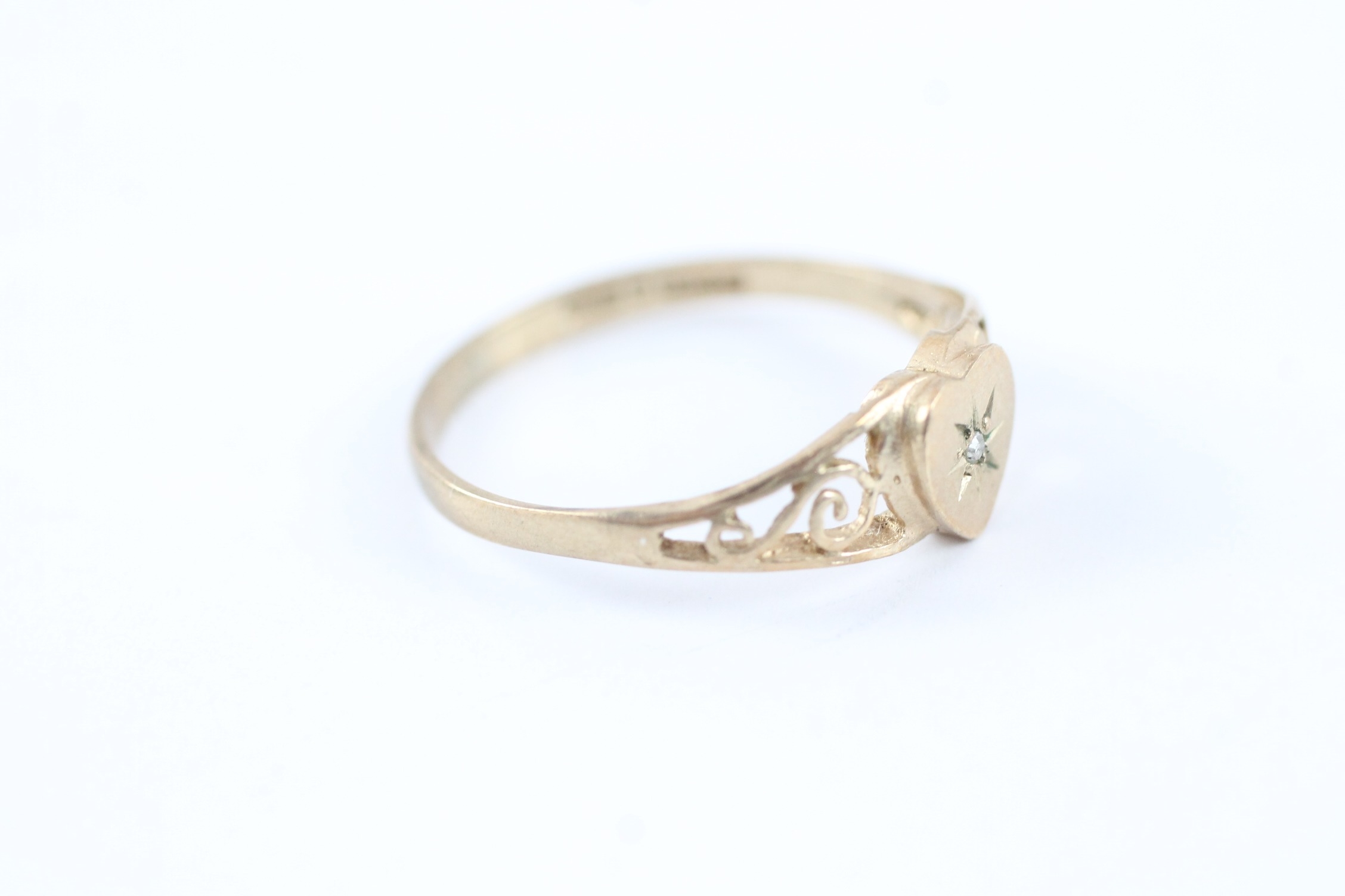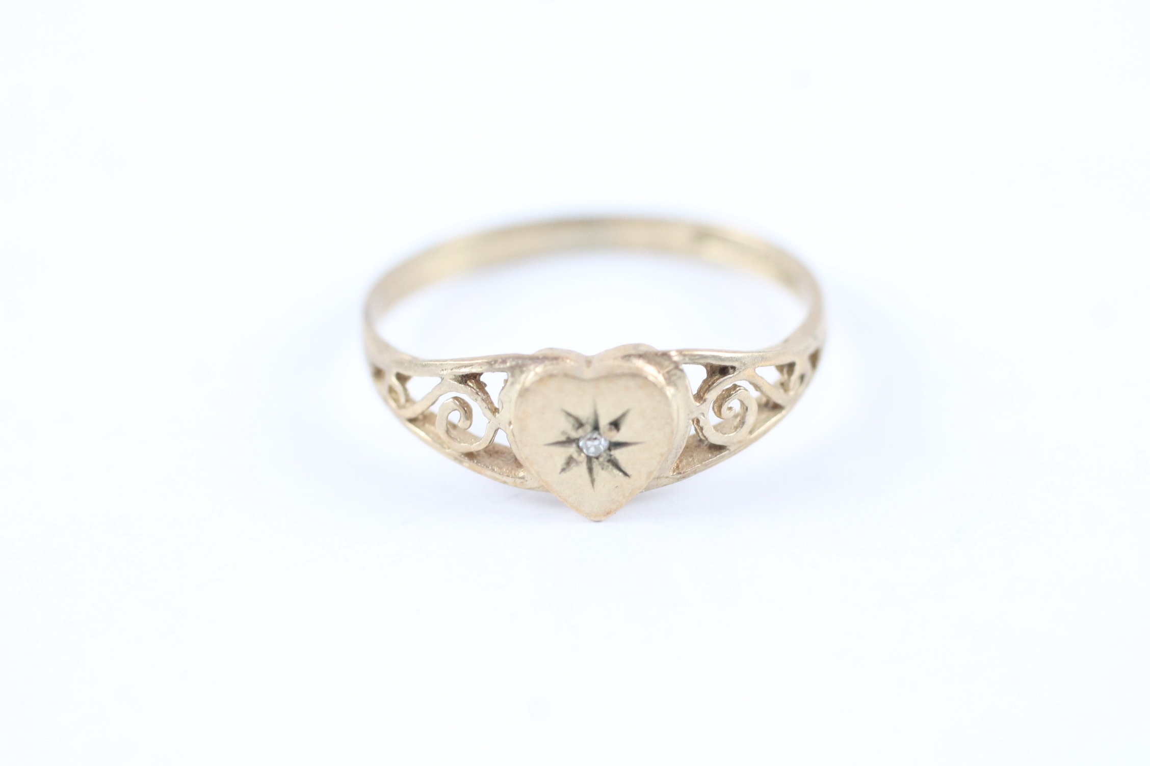 9ct gold diamond heart ring (1.3g) Size N1/2