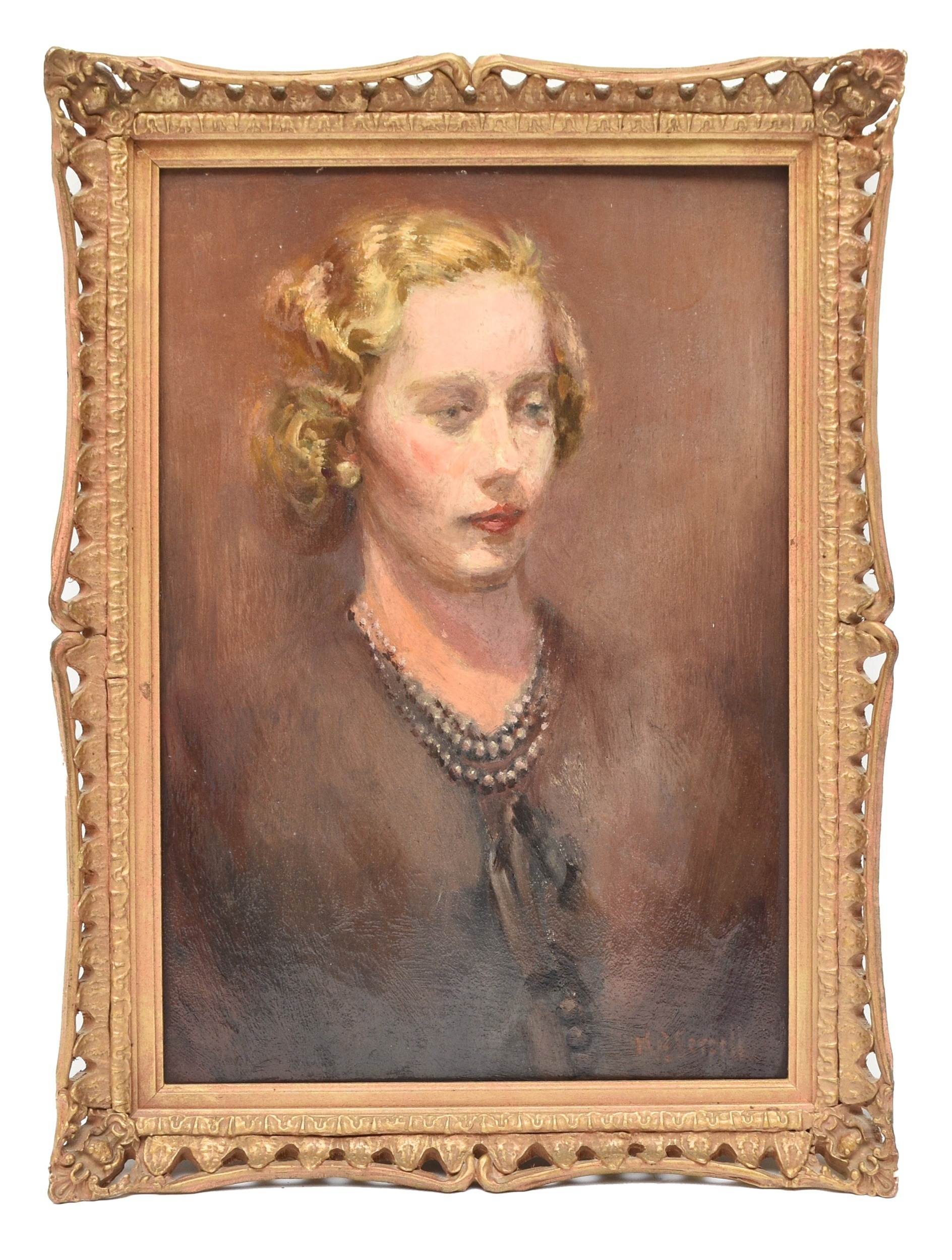 H D Serpell (20th Century) Portrait of a Genteel lady wearing pearls, signed lower right, oil on board, 52 x 36 cm, frame 62 x 46 cm