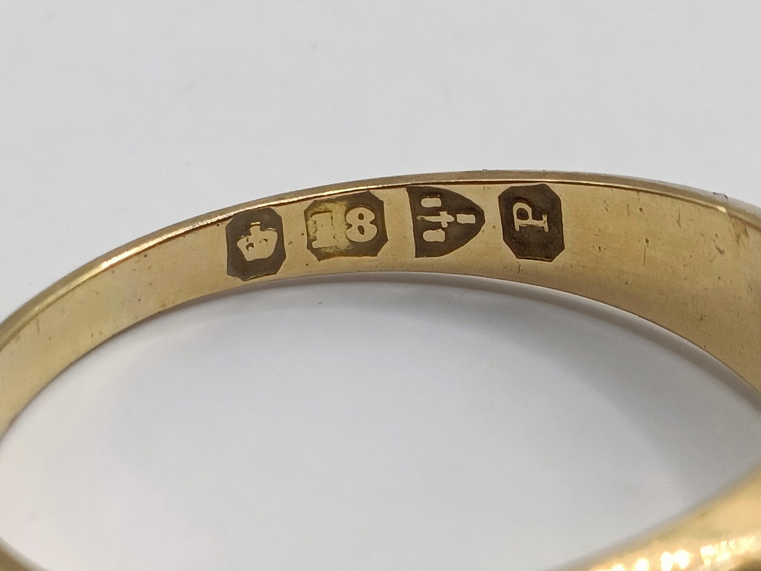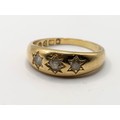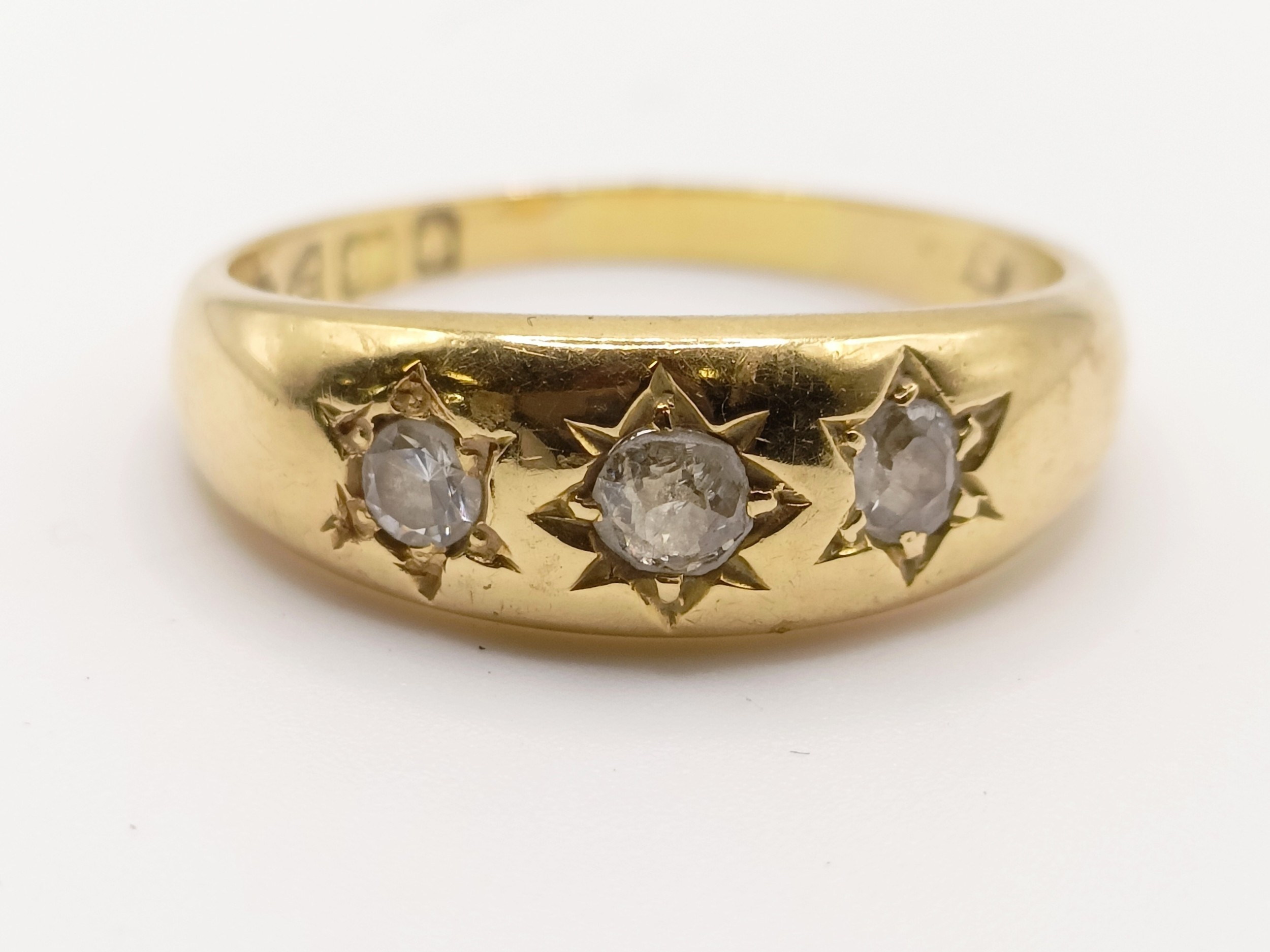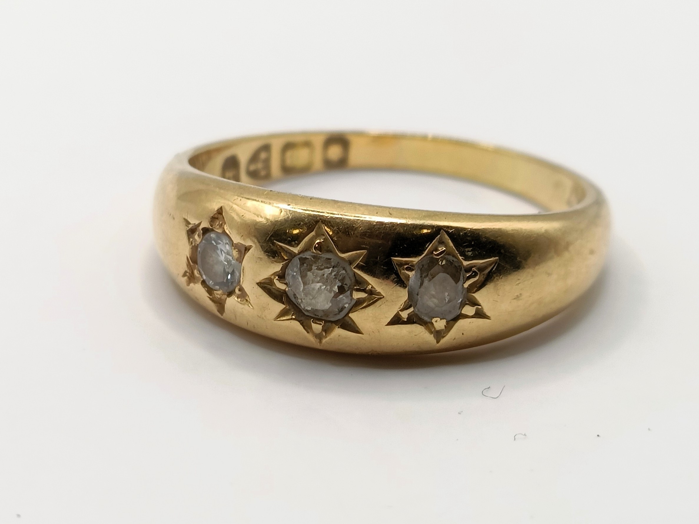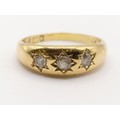 An 18ct gold and diamond three stone gypsy set ring, ring size M, 4.4 g all in