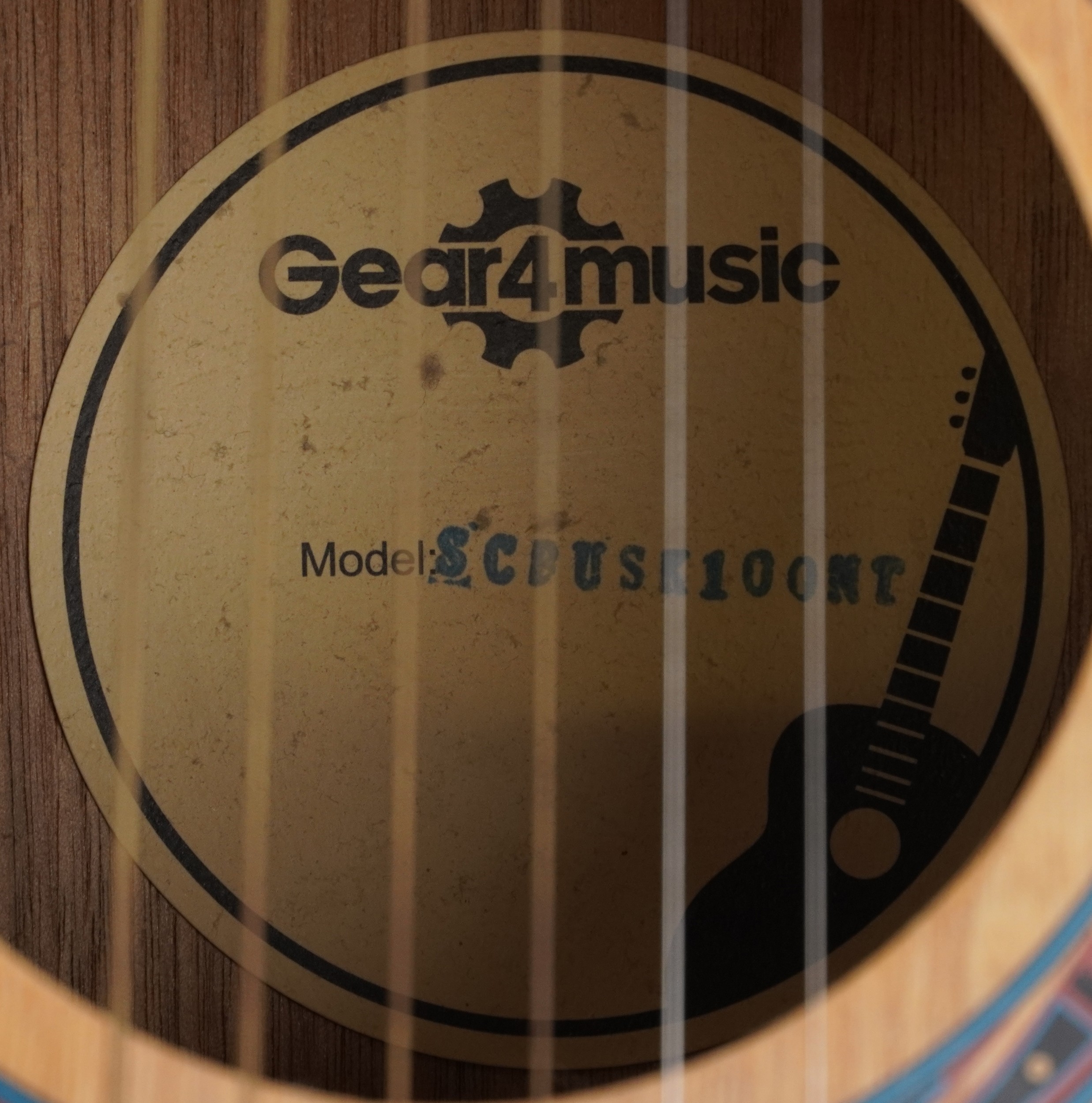 A Gear4music six string electro-acoustic guitar, model SCBUSK100NT, 104cm in length.