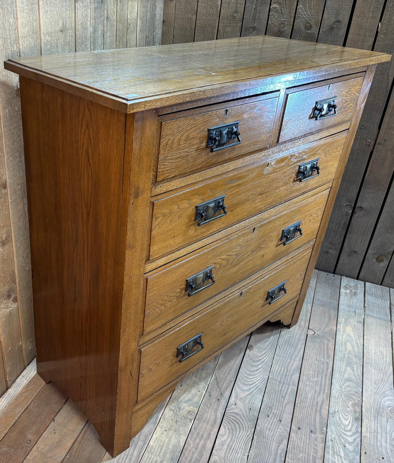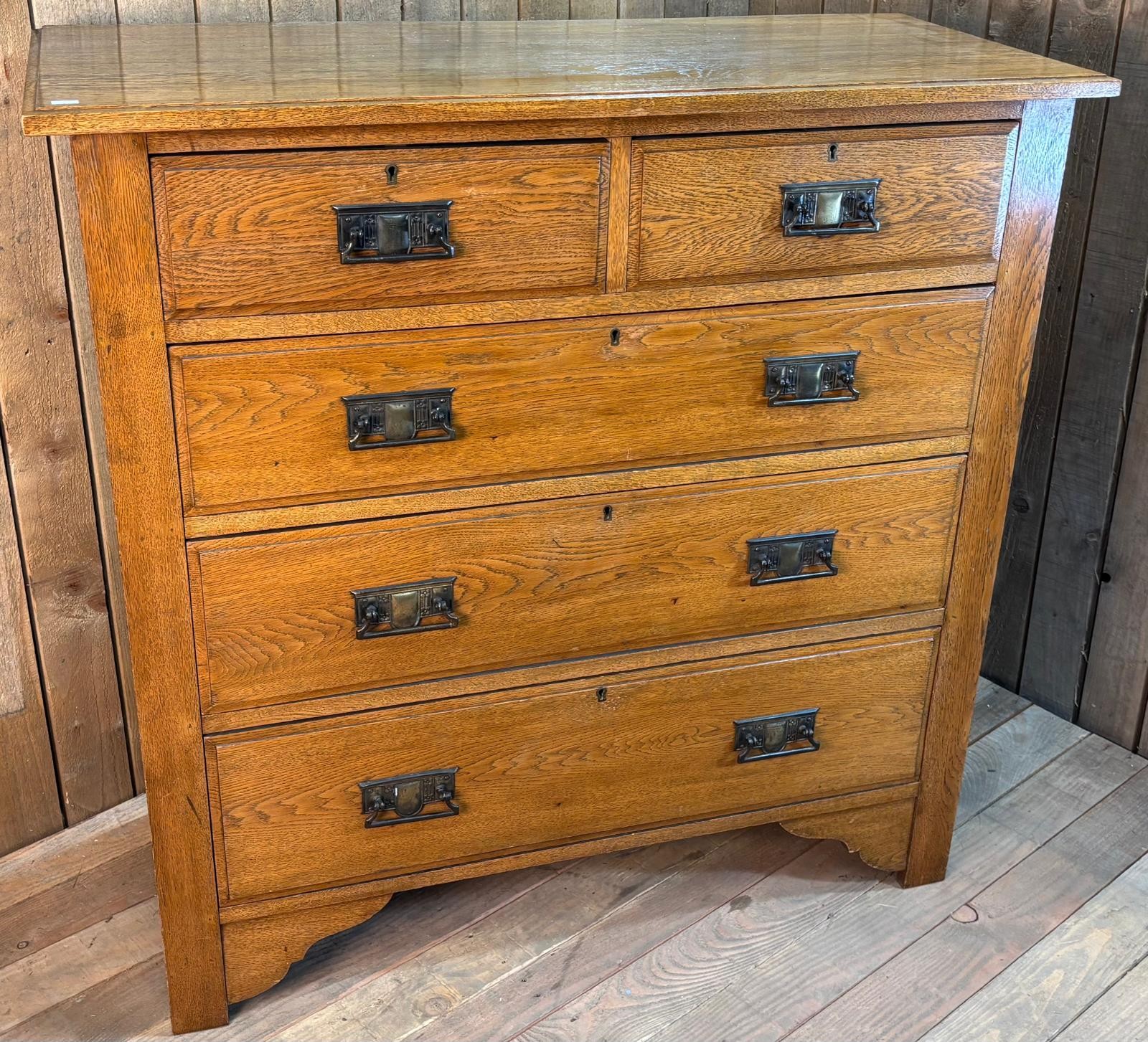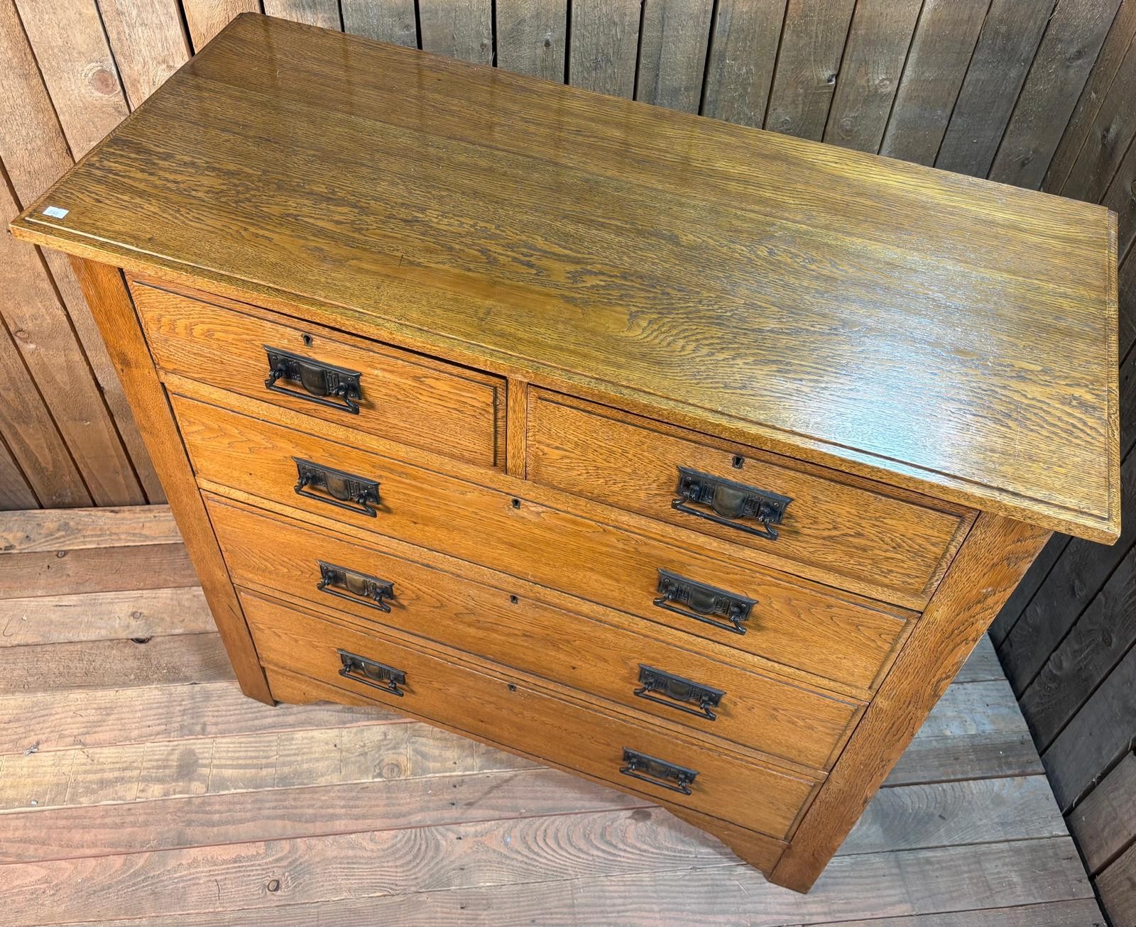 Late 19th century oak two over three drawer chest. Raised on block feet. 105x106x45cm.
