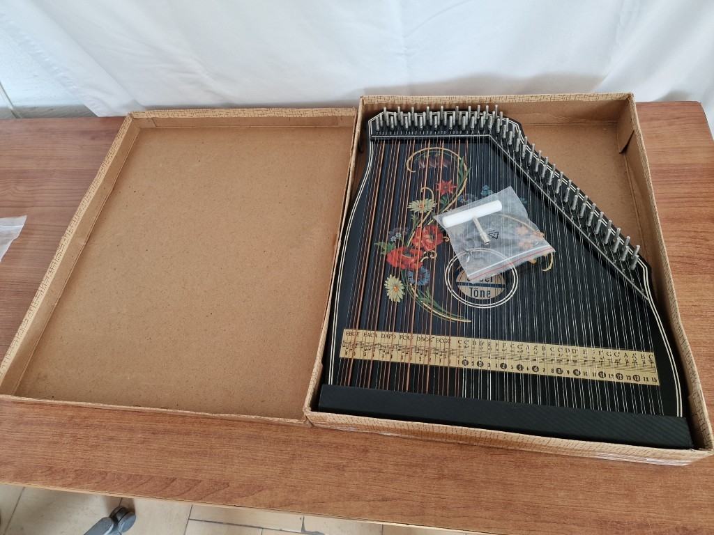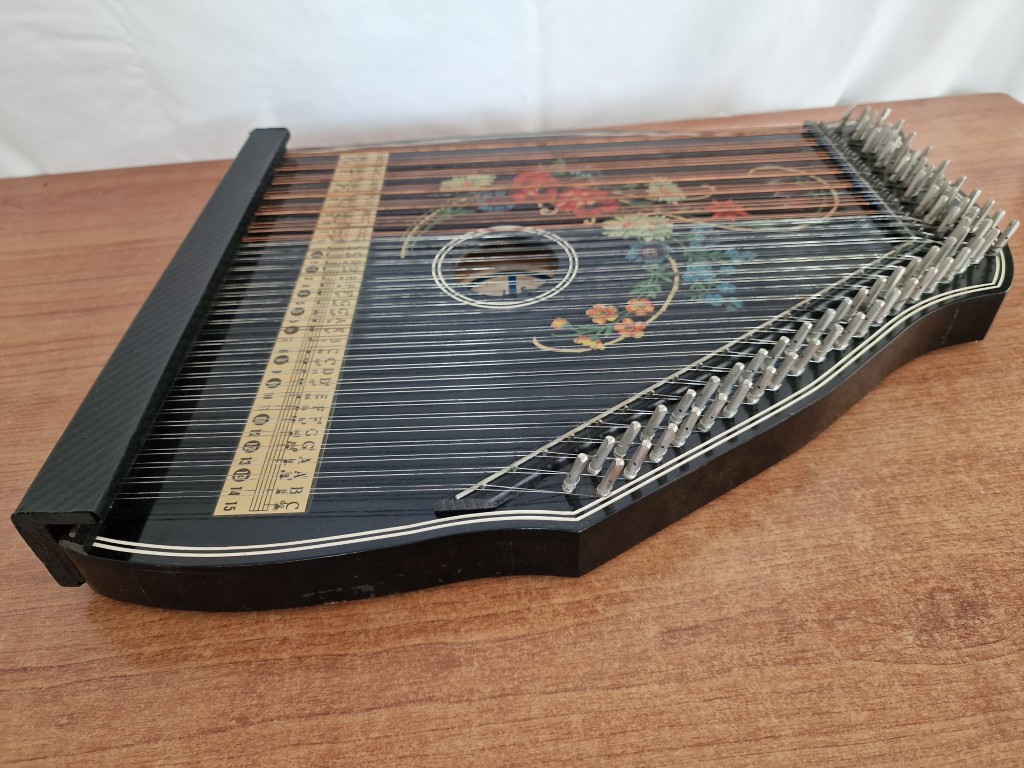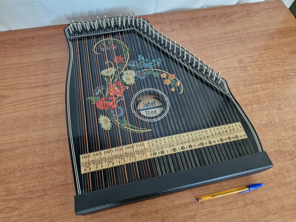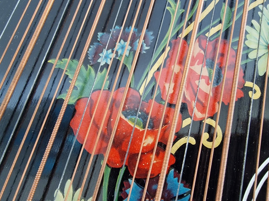 Vintage 'Jubel Tone' Zither (Musical Instrument), Made in GDR, Circa 1973, with Hand Painted Floral Decoration, Together with Tuning Key
