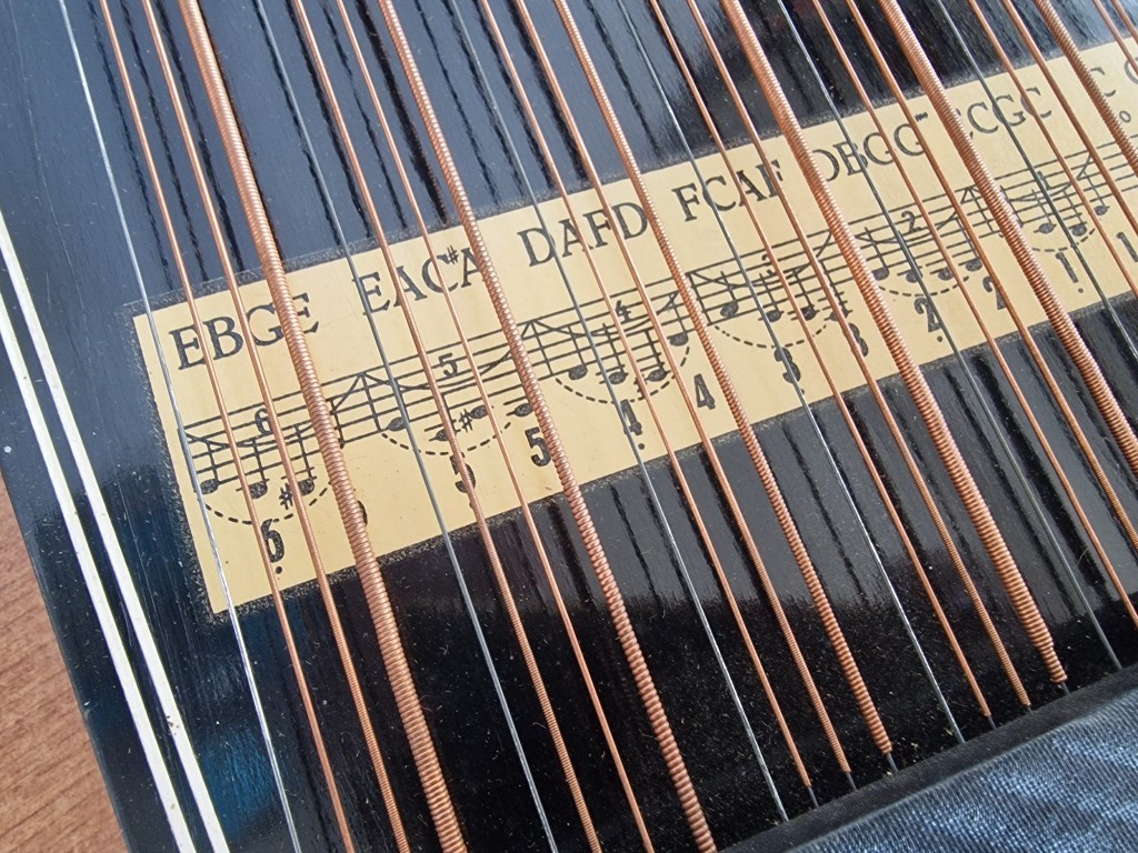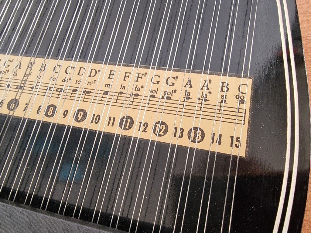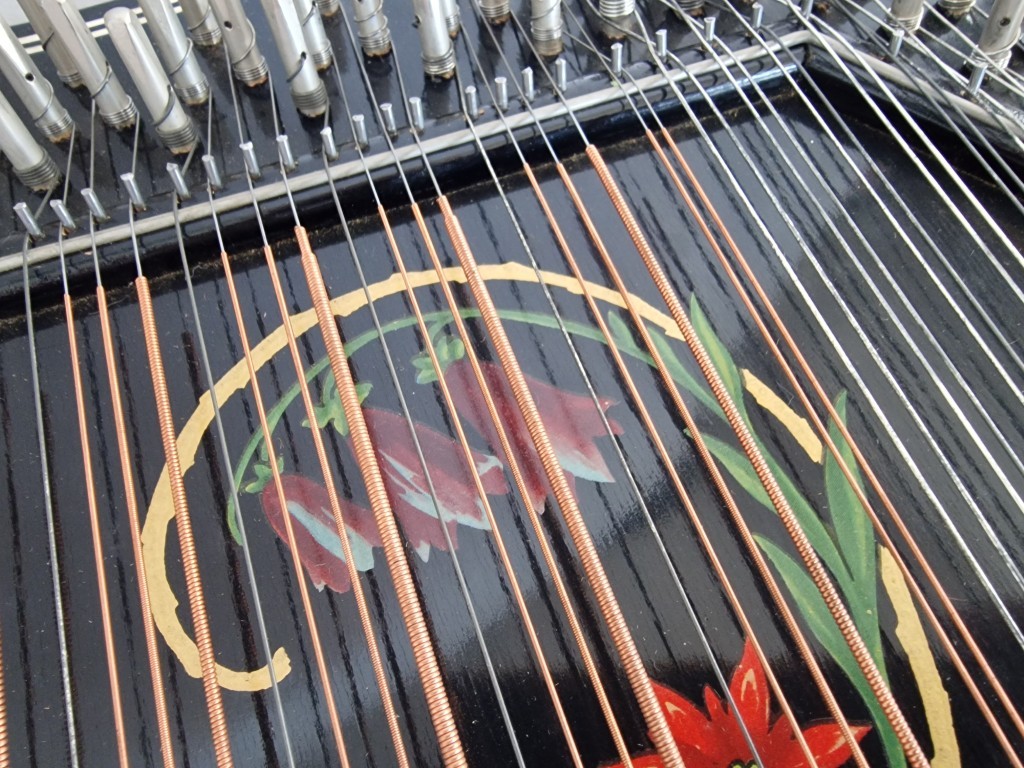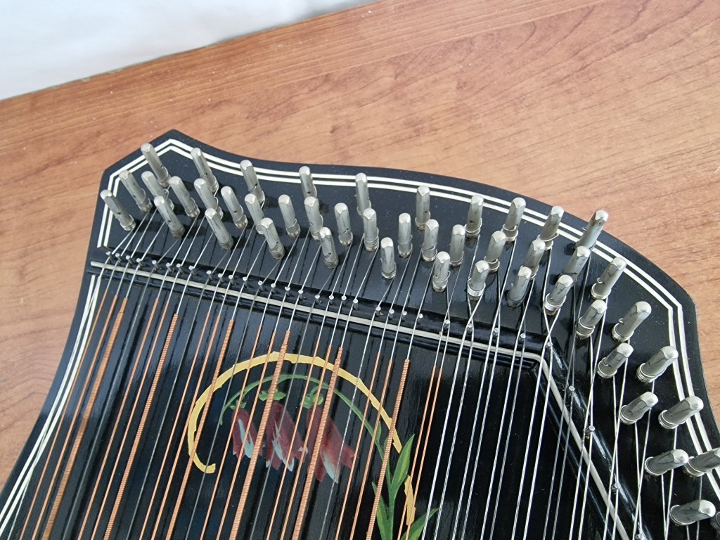 Vintage 'Jubel Tone' Zither (Musical Instrument), Made in GDR, Circa 1973, with Hand Painted Floral Decoration, Together with Tuning Key