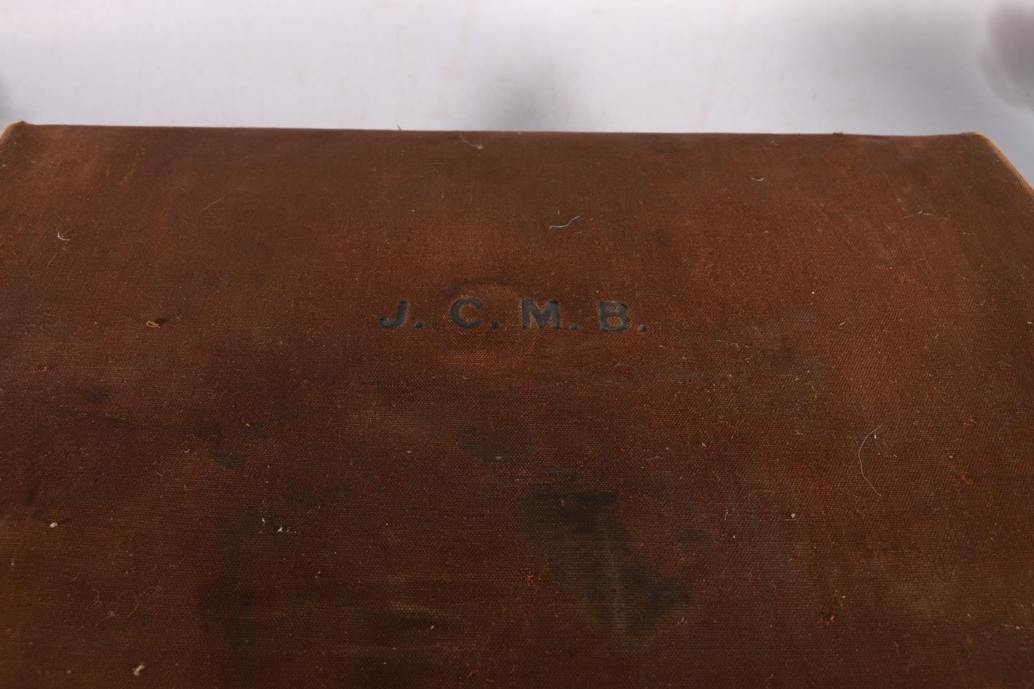 Art Deco period travel vanity case with fitted interior containing ivory brushes and silver topped toilet jars, the silver topped toilet jars by PWG, London 1918, case dimensions 46cm x 32cm x 18cm