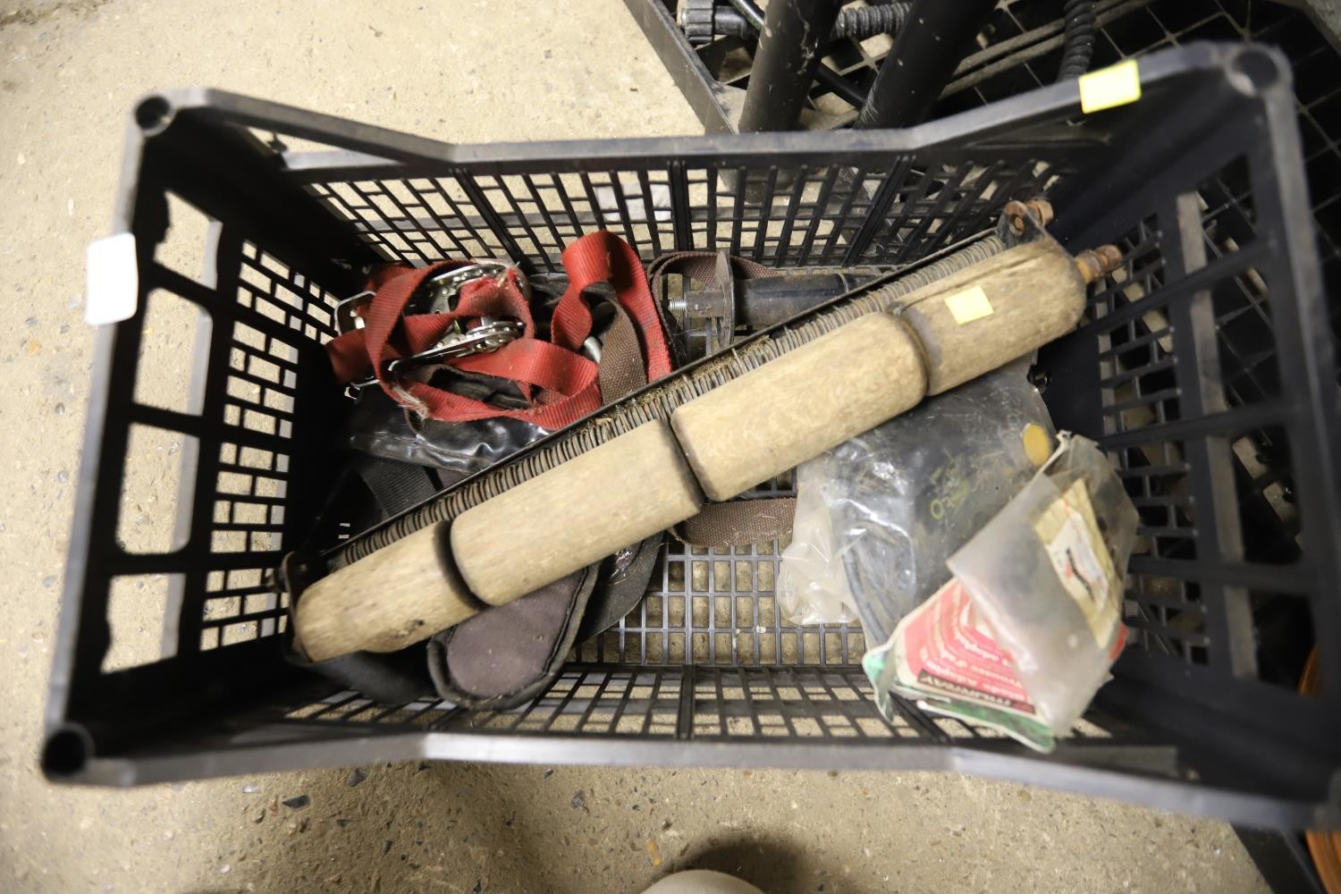Box - 2 switch box for electric mowers, wooden front roller for cylinder mower, straps for strimmer