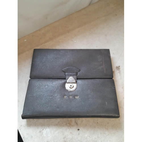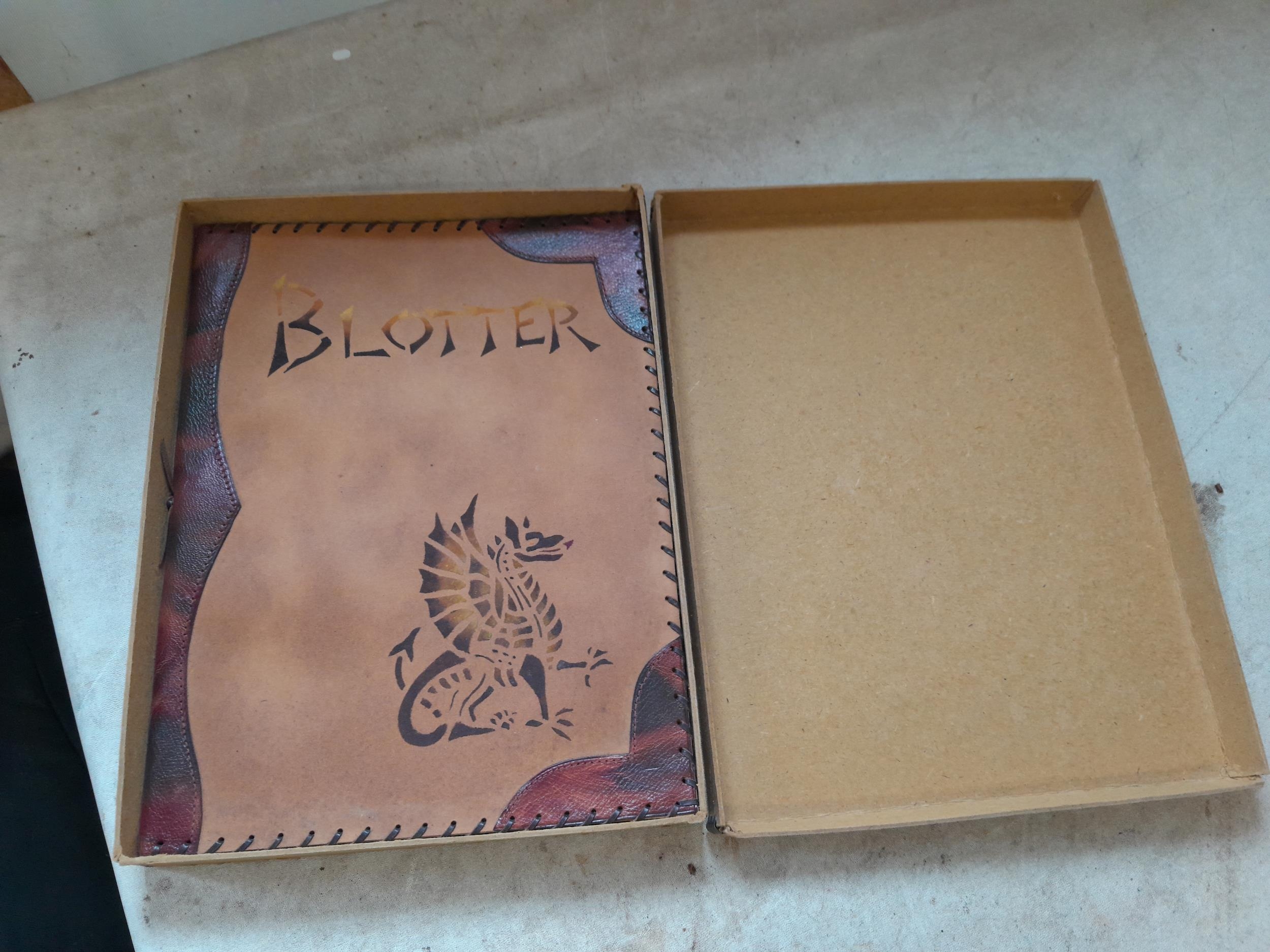 Vintage leather blotter with dragon decoration in box of issue