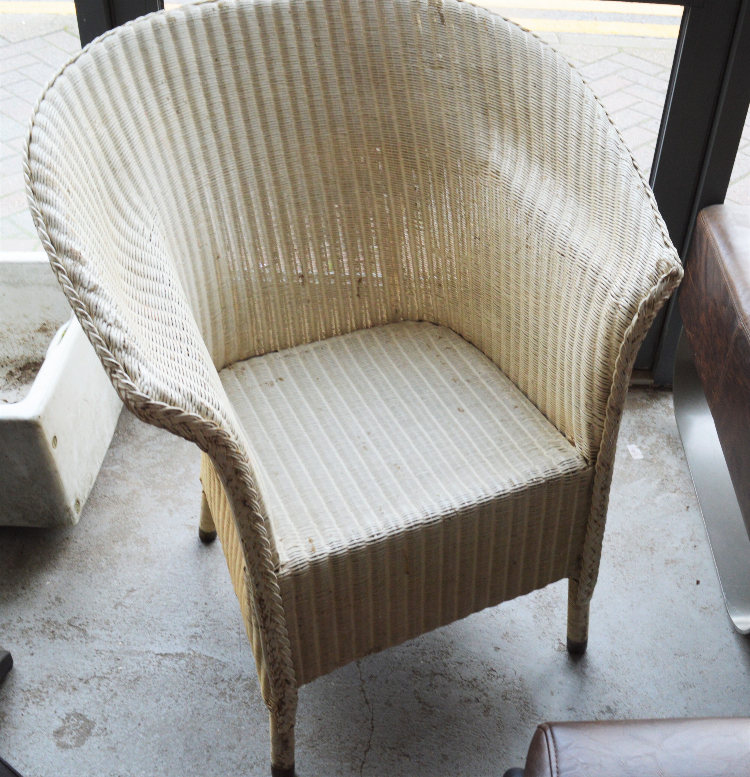 Vintage Lloyd Loom Chair With Fan Back and Brass-Capped Legs