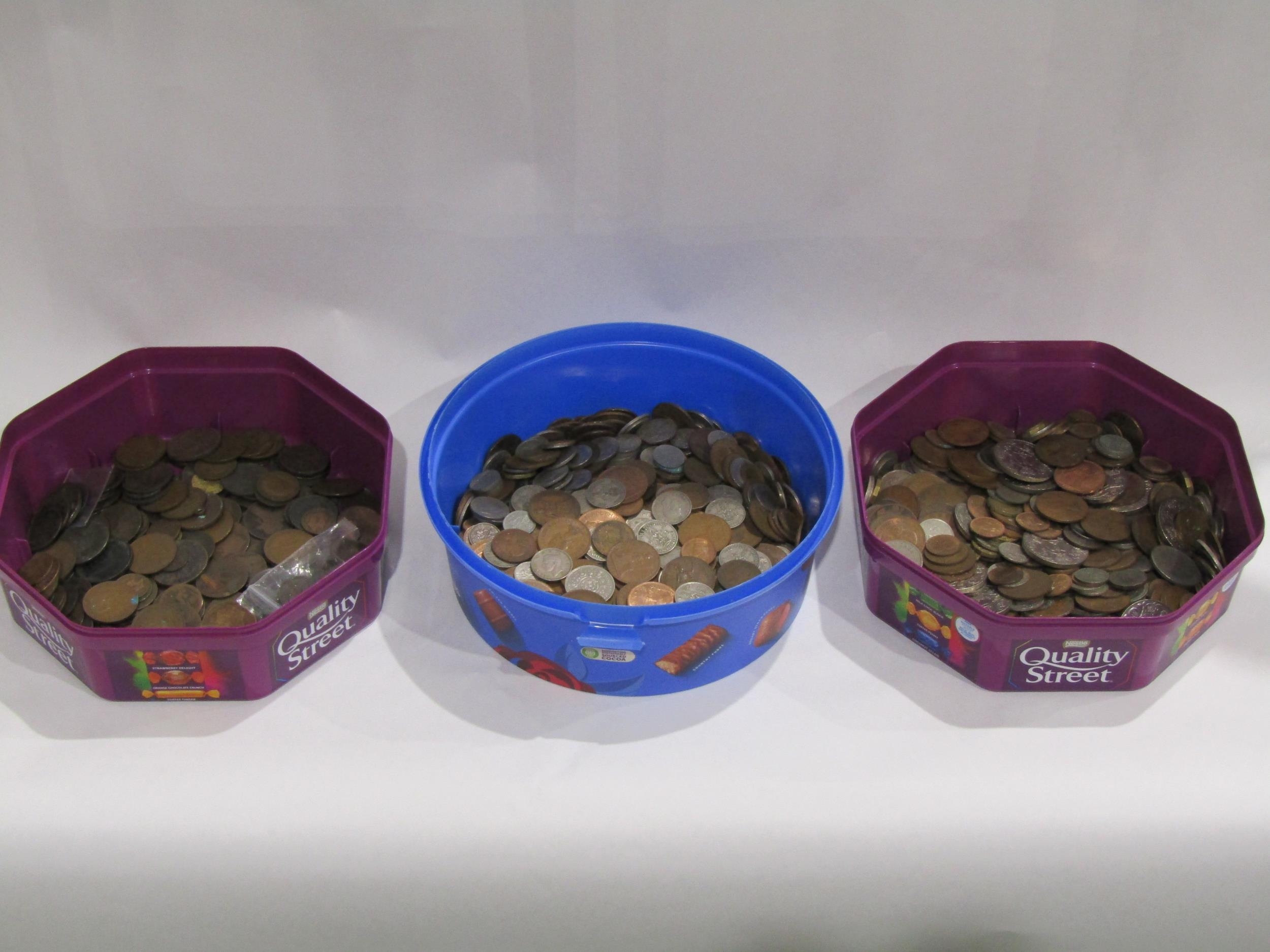 A tub of 18th-19th Century UK coinage and two tubs of pre-decimal (3)