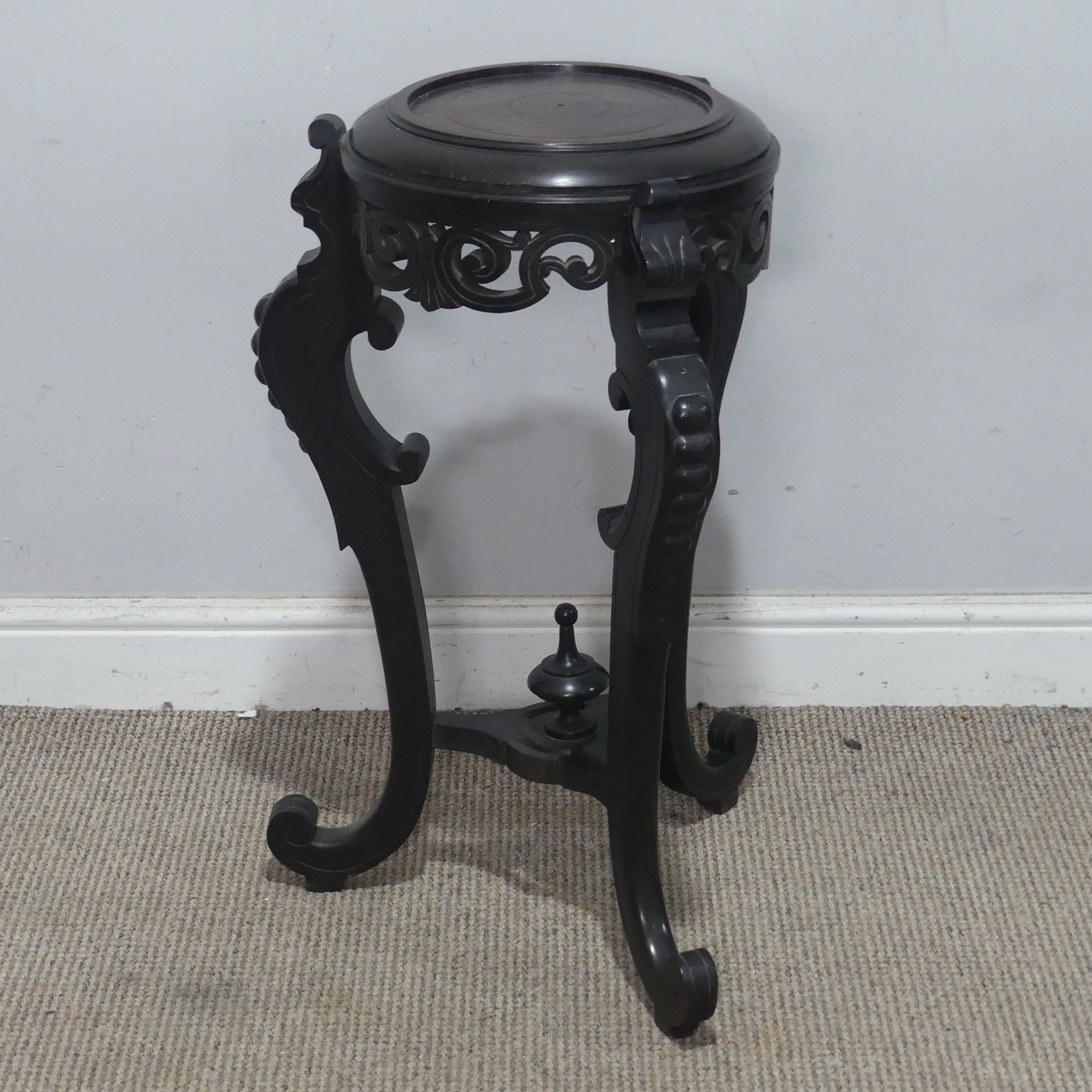 A 19th century style Chinese plant Stand, lacking marble top, W 40 cm x H 68 cm x D 40 cm.