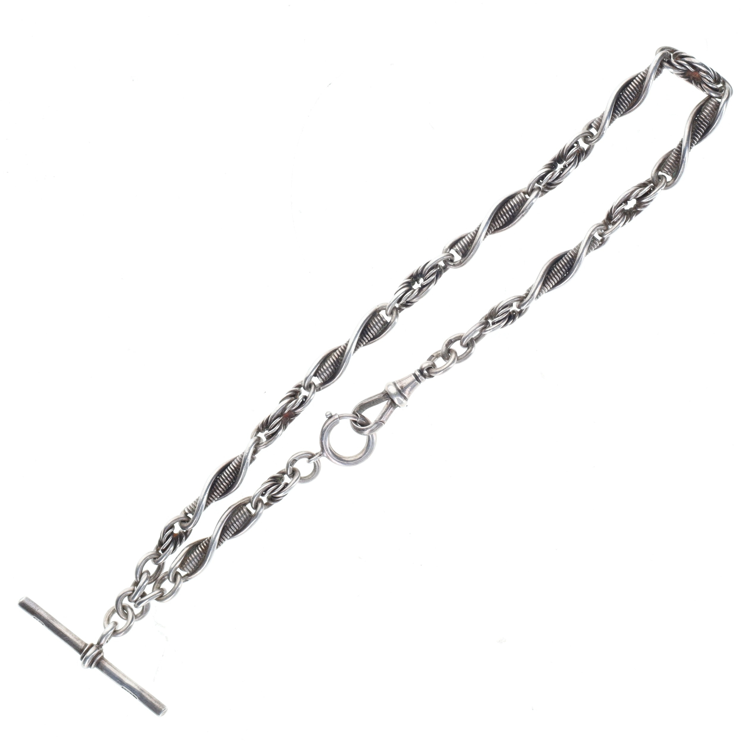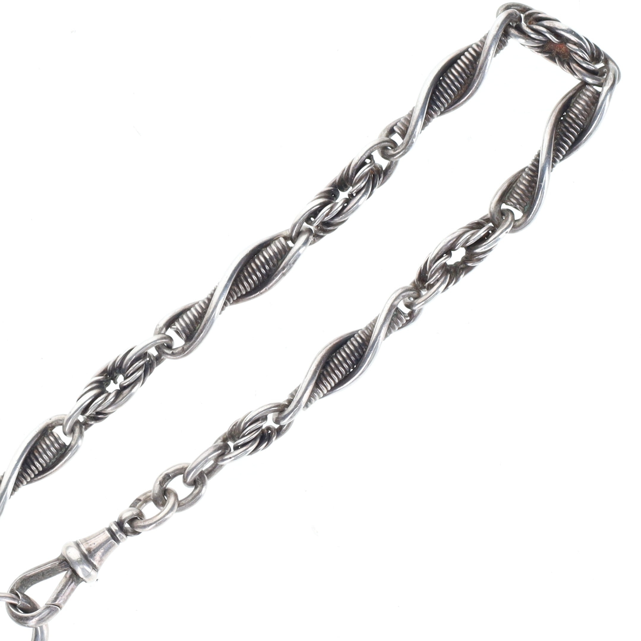 Antique Silver Watch Chain with Albert Clip, 31g