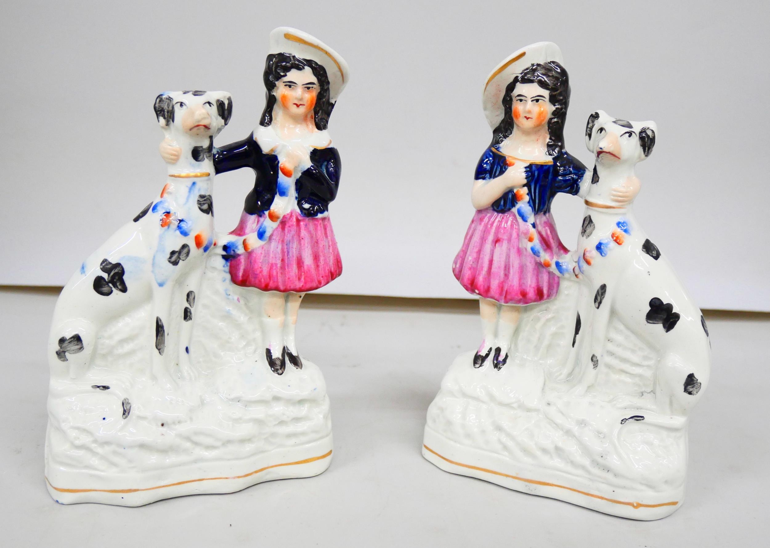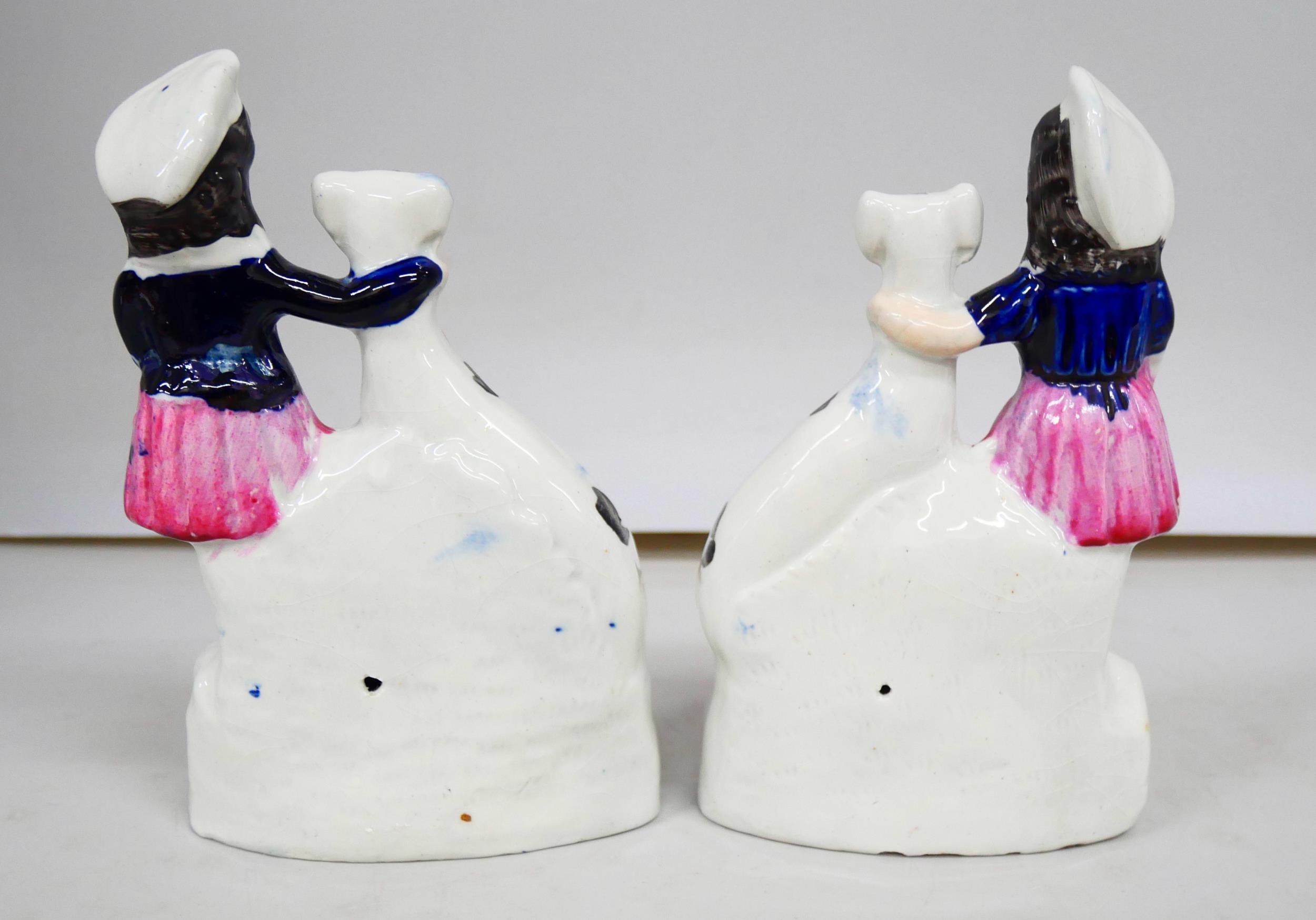 A pair of Staffordshire pottery flat back figures, 15cm