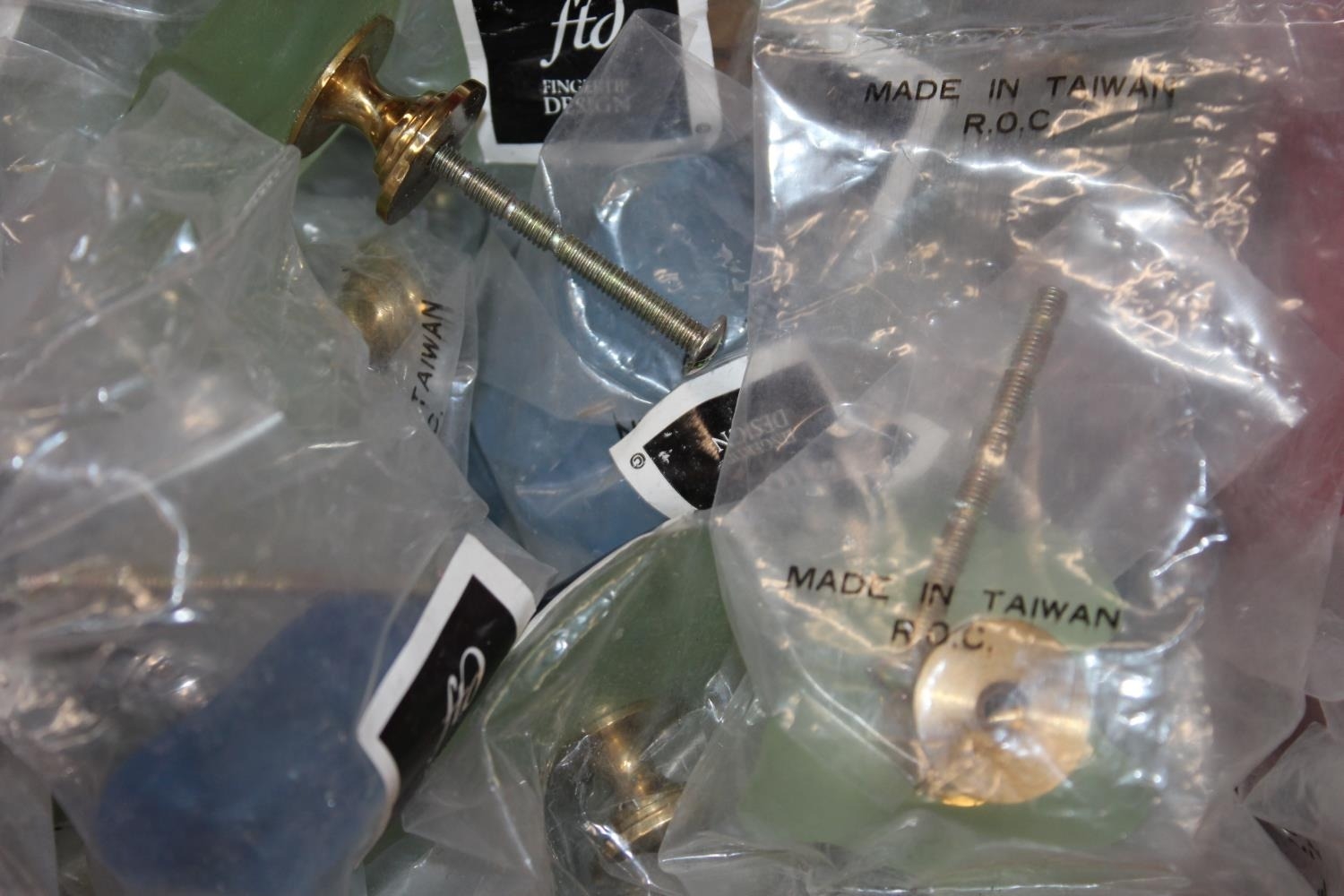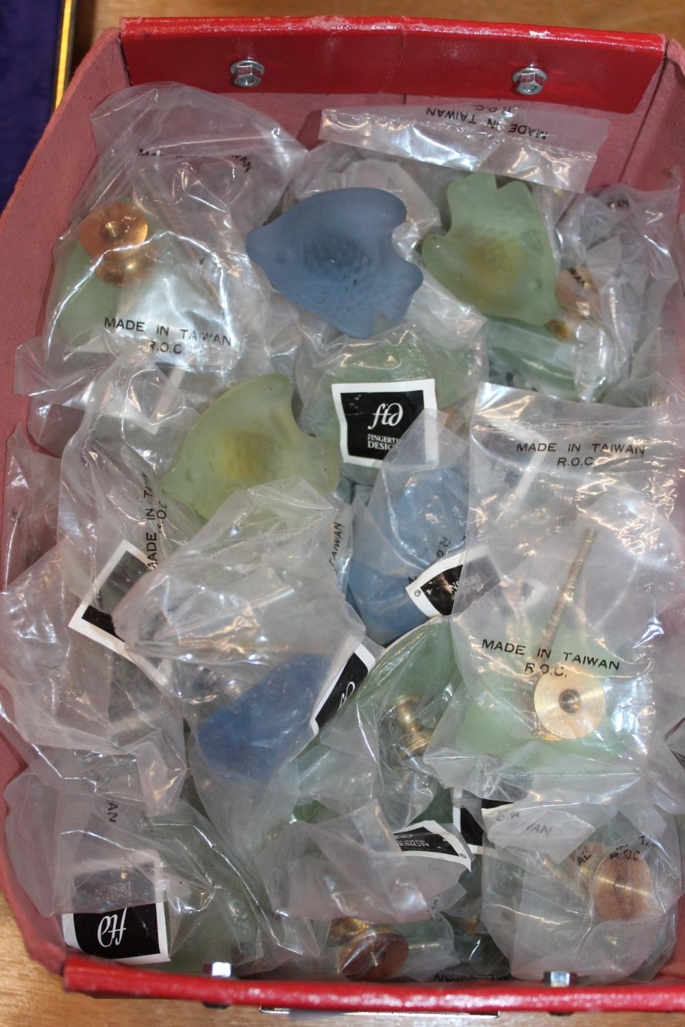 Box containing FTD Finger Tip Design frosted glass doorknobs.