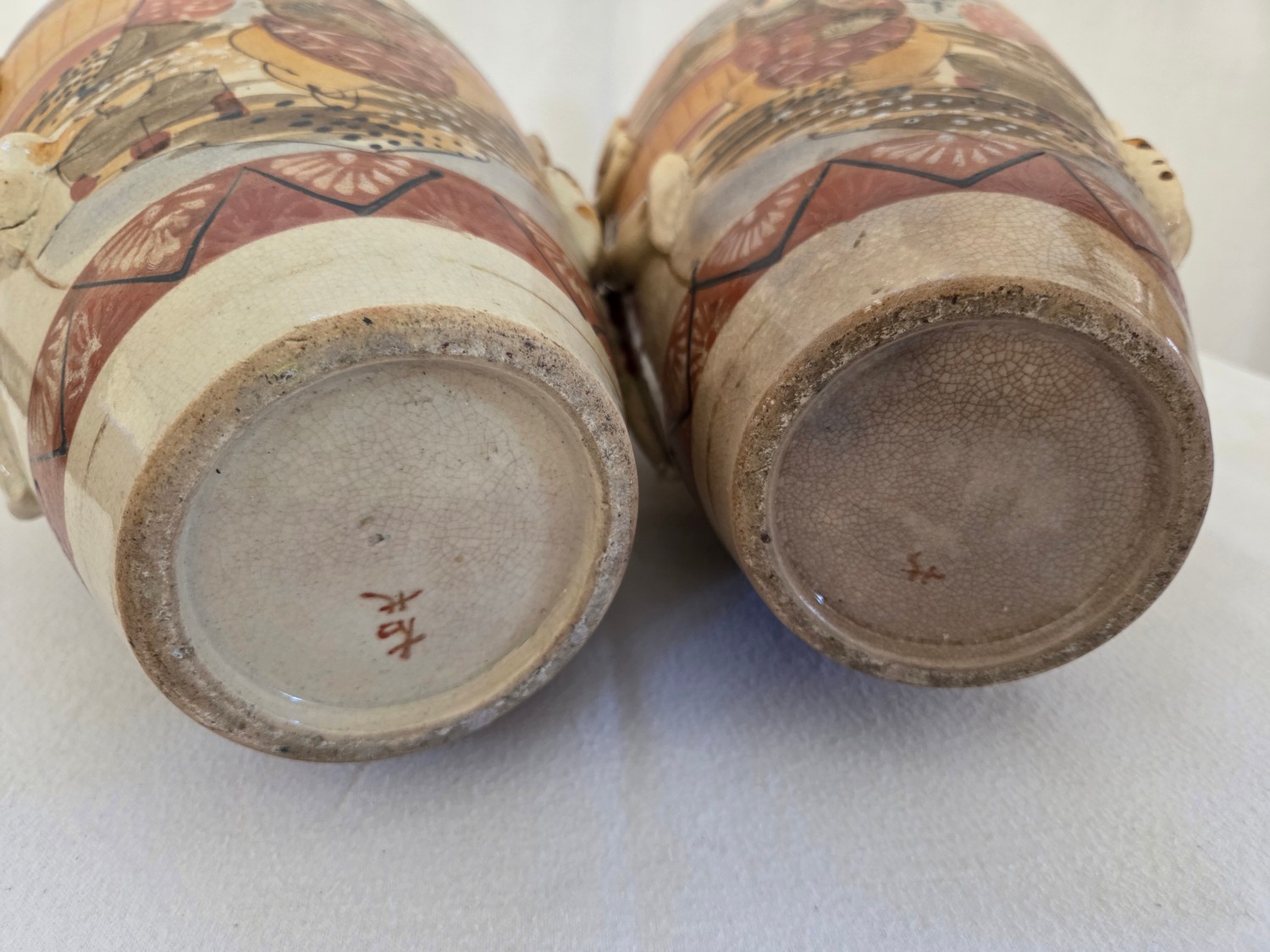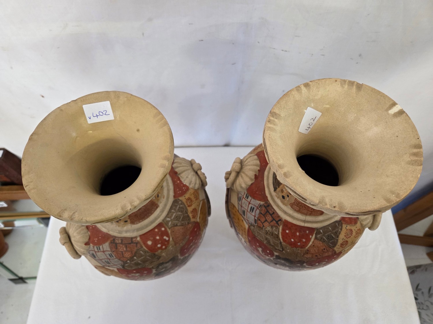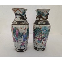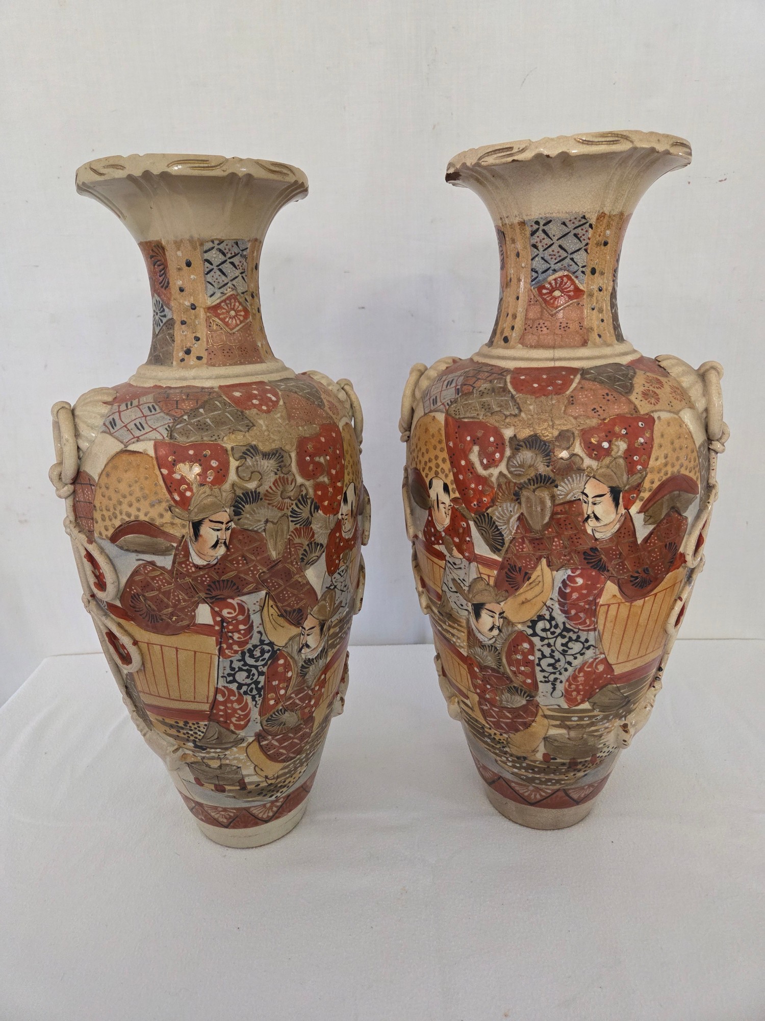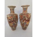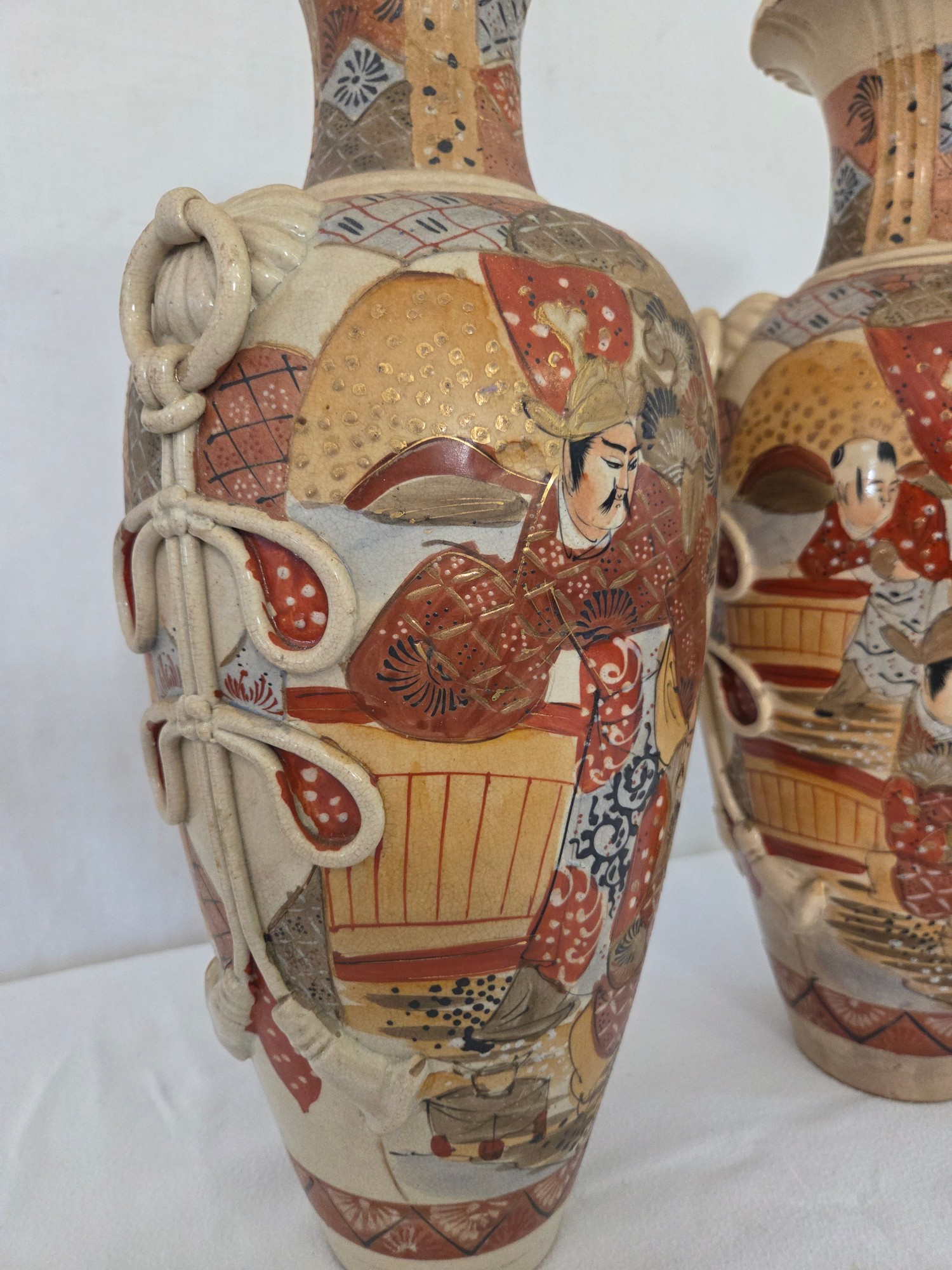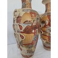 Pair of Satsuma baluster vases with rope swag relief handles approx. 47cm tall