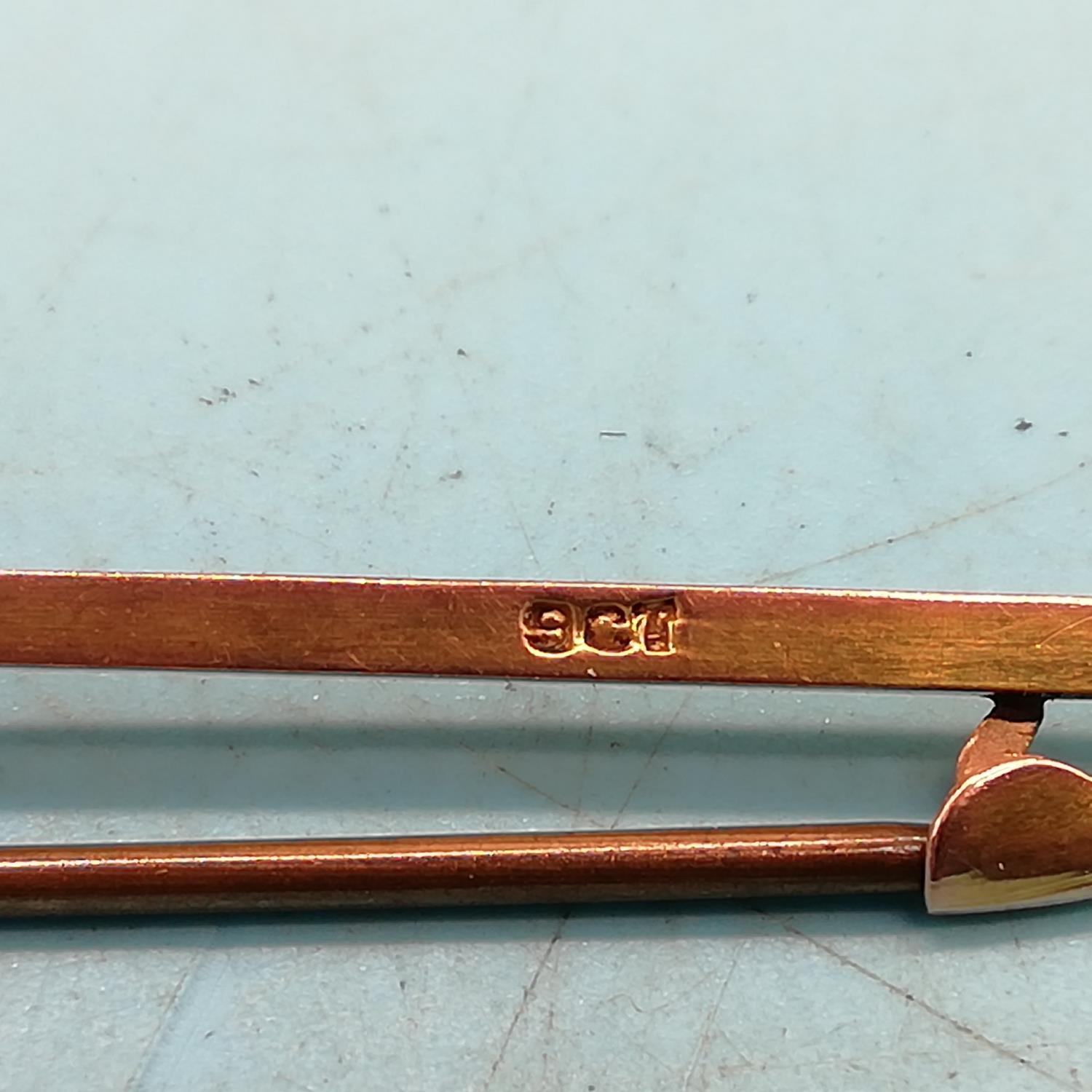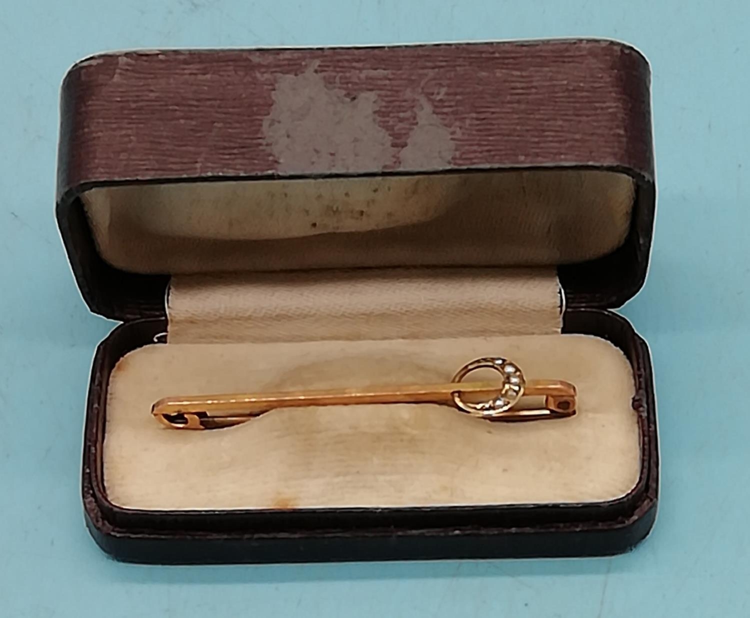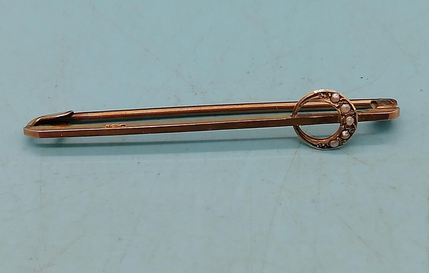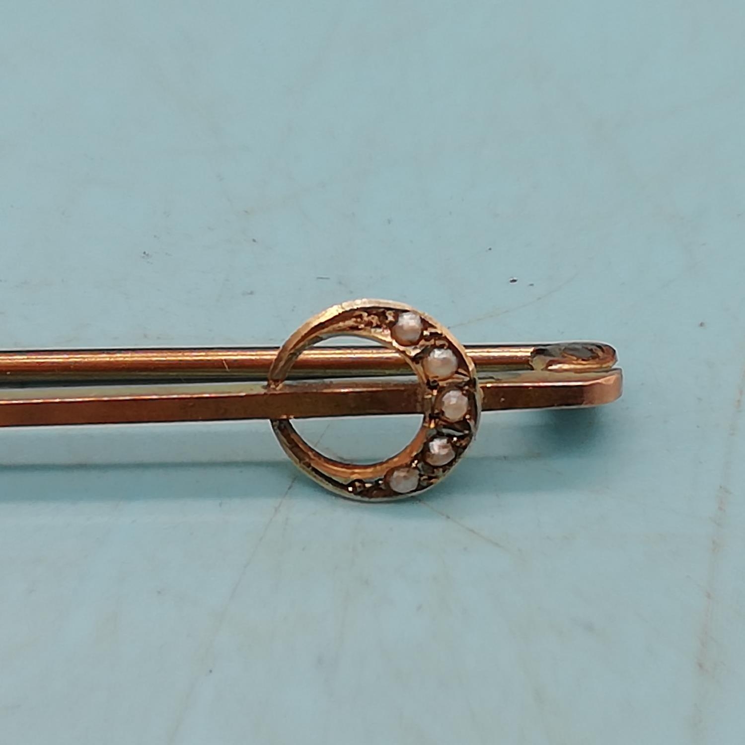 Vintage 9ct Gold Seed Pearl Crescent Design Bar Brooch. 1.9 Grams.