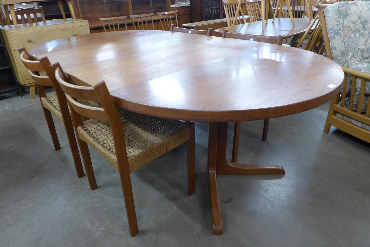 A Danish teak extending dining table and four chairs