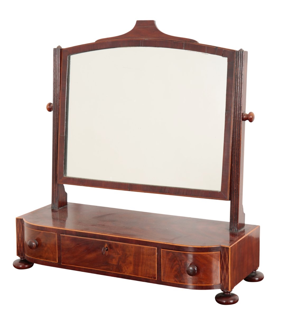 A GEORGE III MAHOGANY AND SATINWOOD INLAID DRESSING MIRROR