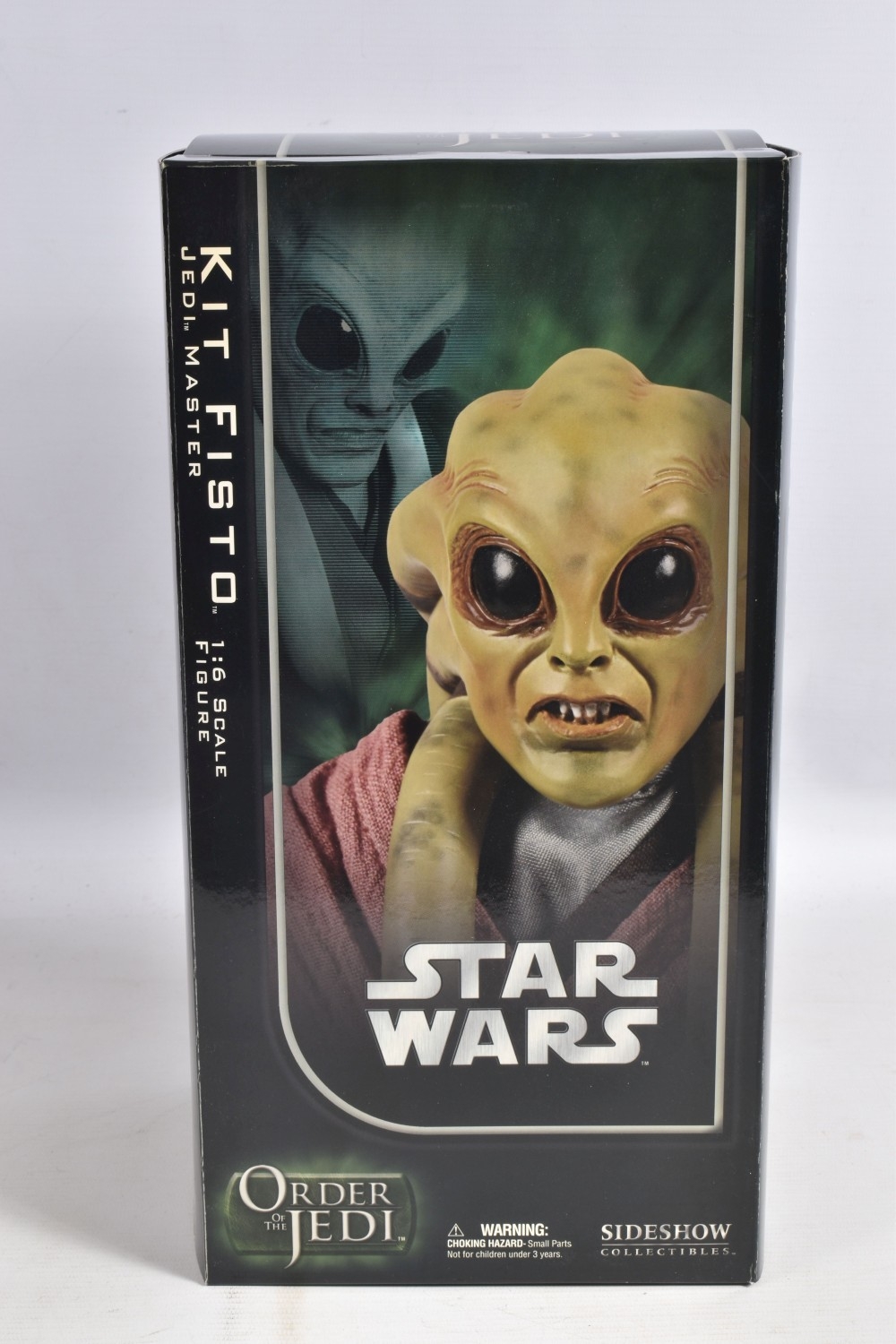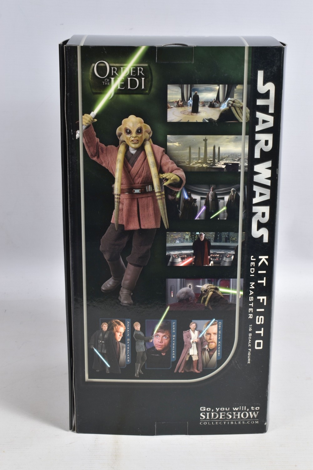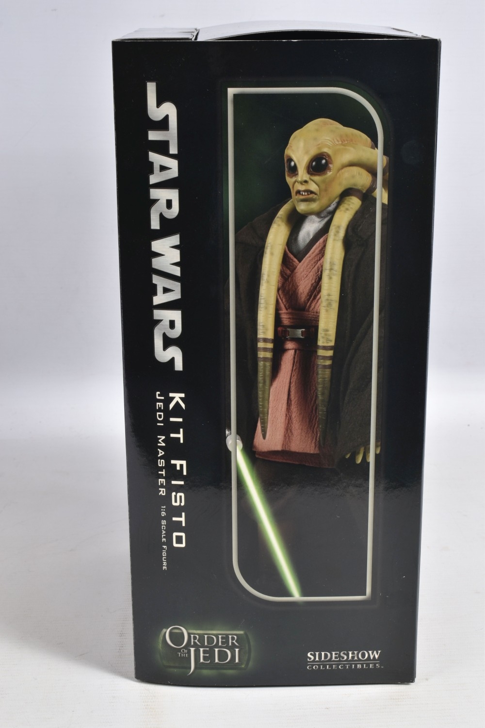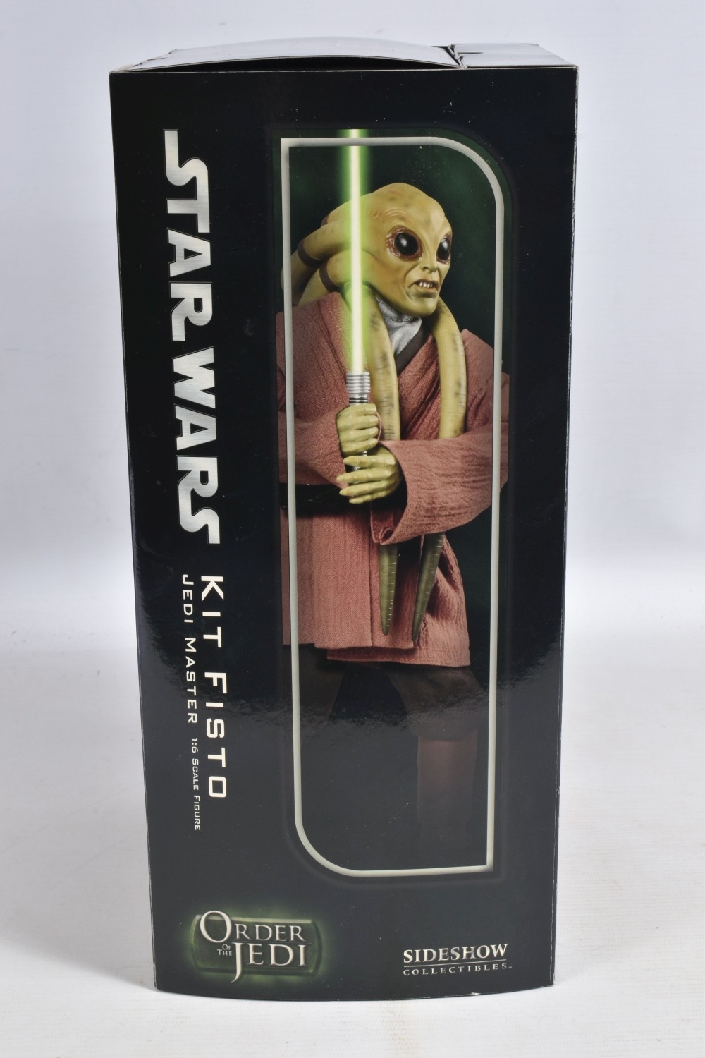 A BOXED SIDESHOW COLLECTIBLES 1:6 SCALE STAR WARS ORDER OF THE JEDI KIT FISTO JEDI MASTER FIGURE, no. 2106, model appears new with figure and accessories presented in cardboard packaging, very little wear other than scratches to base