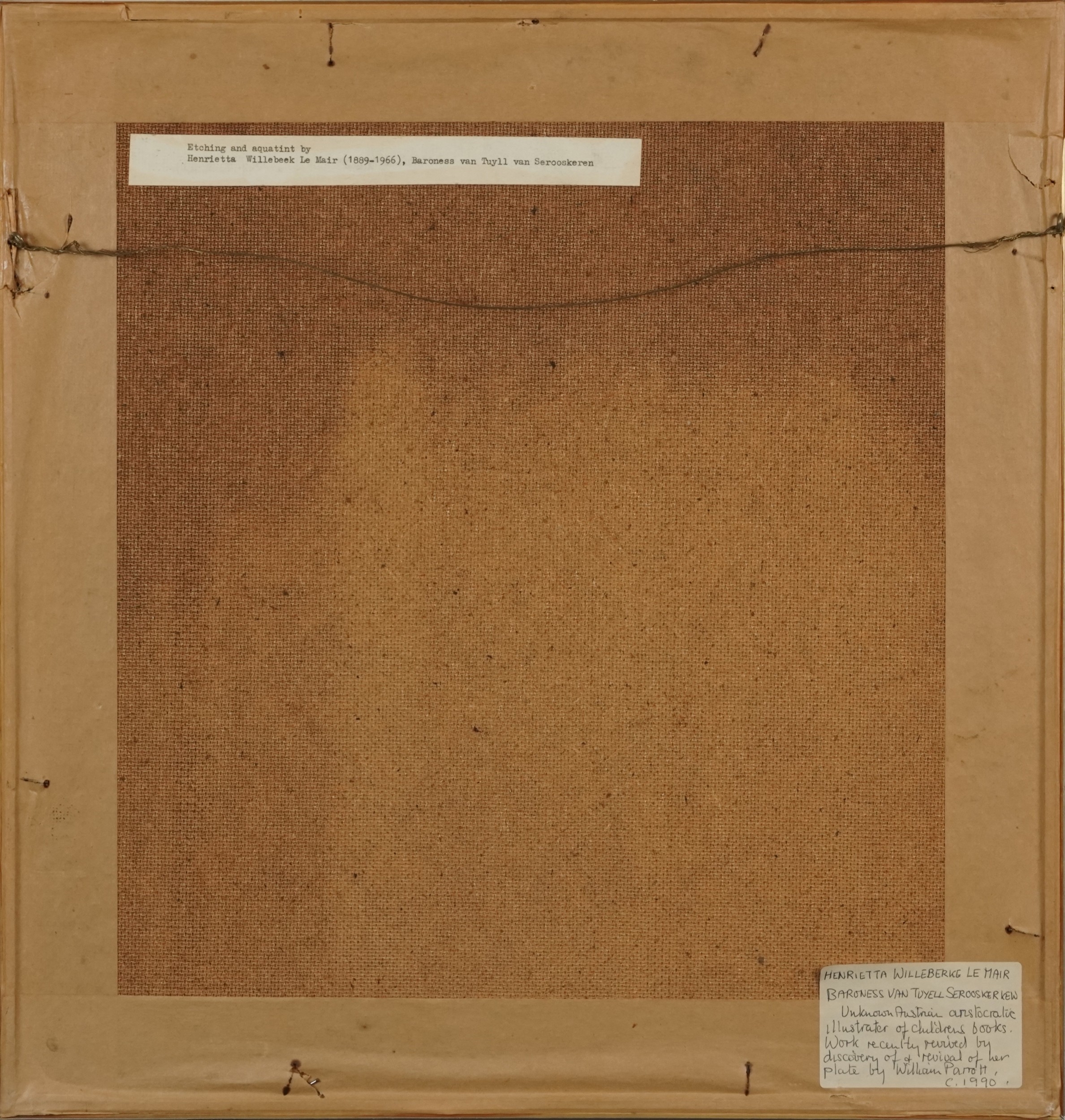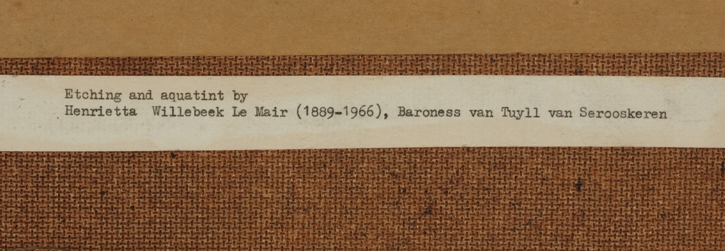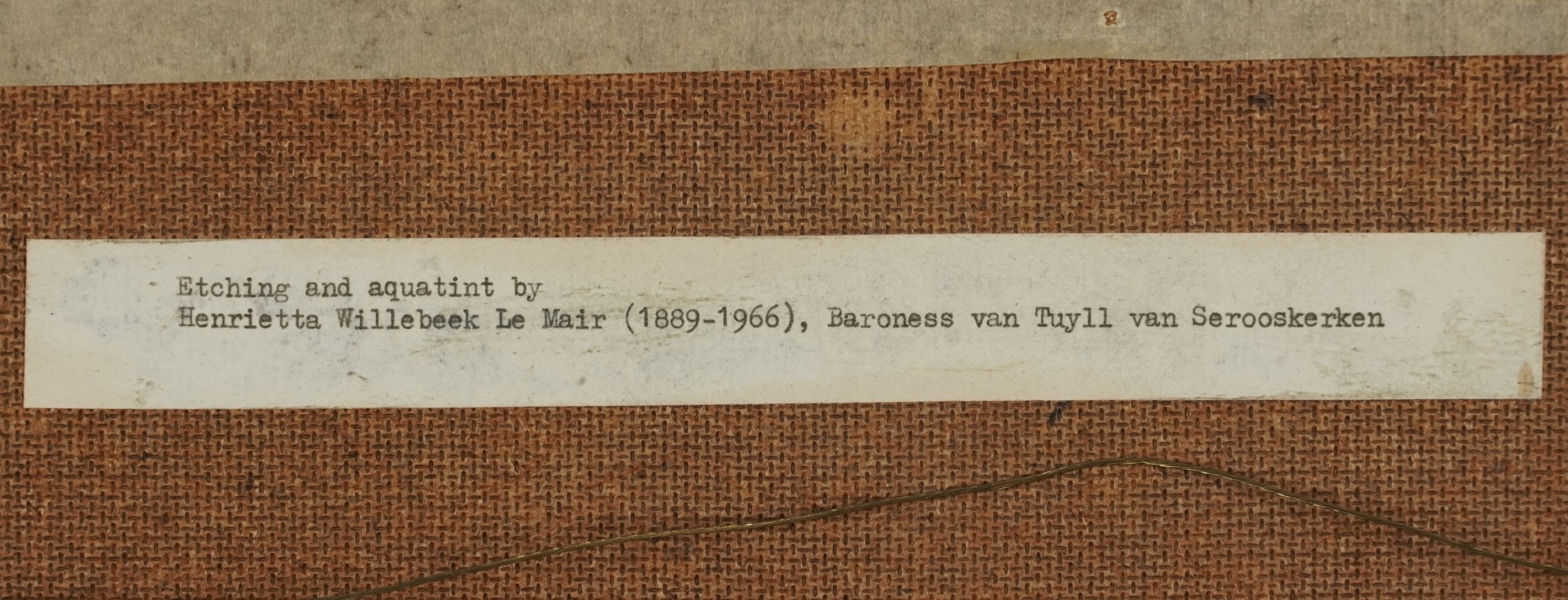 Henriette Willebeek le Mair (1899-1966) - Baroness van Tuyll van Serooskerken, a 20th century aquatint etching bearing label verso, 31cm x 29cm together with a similar work by the same hand.