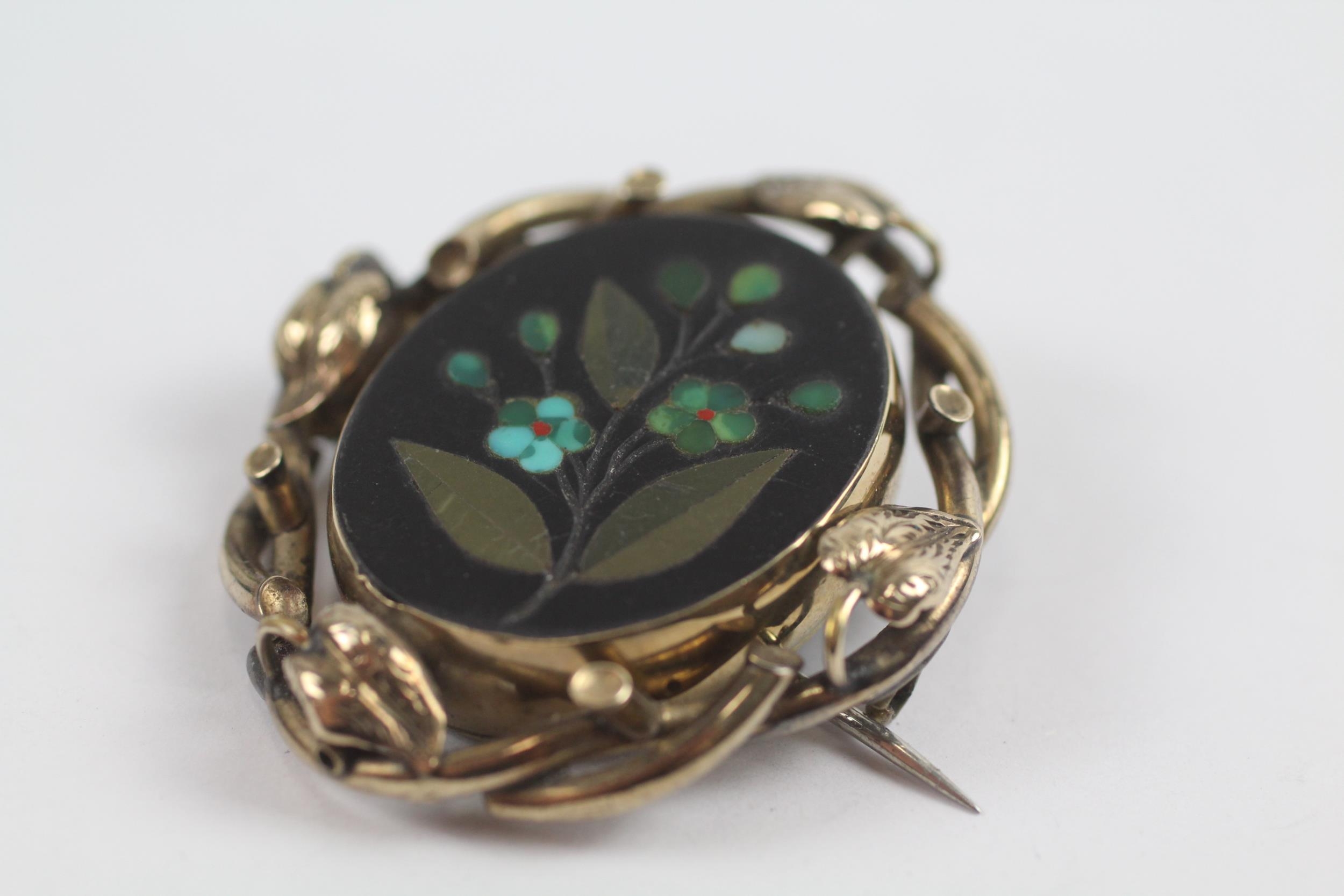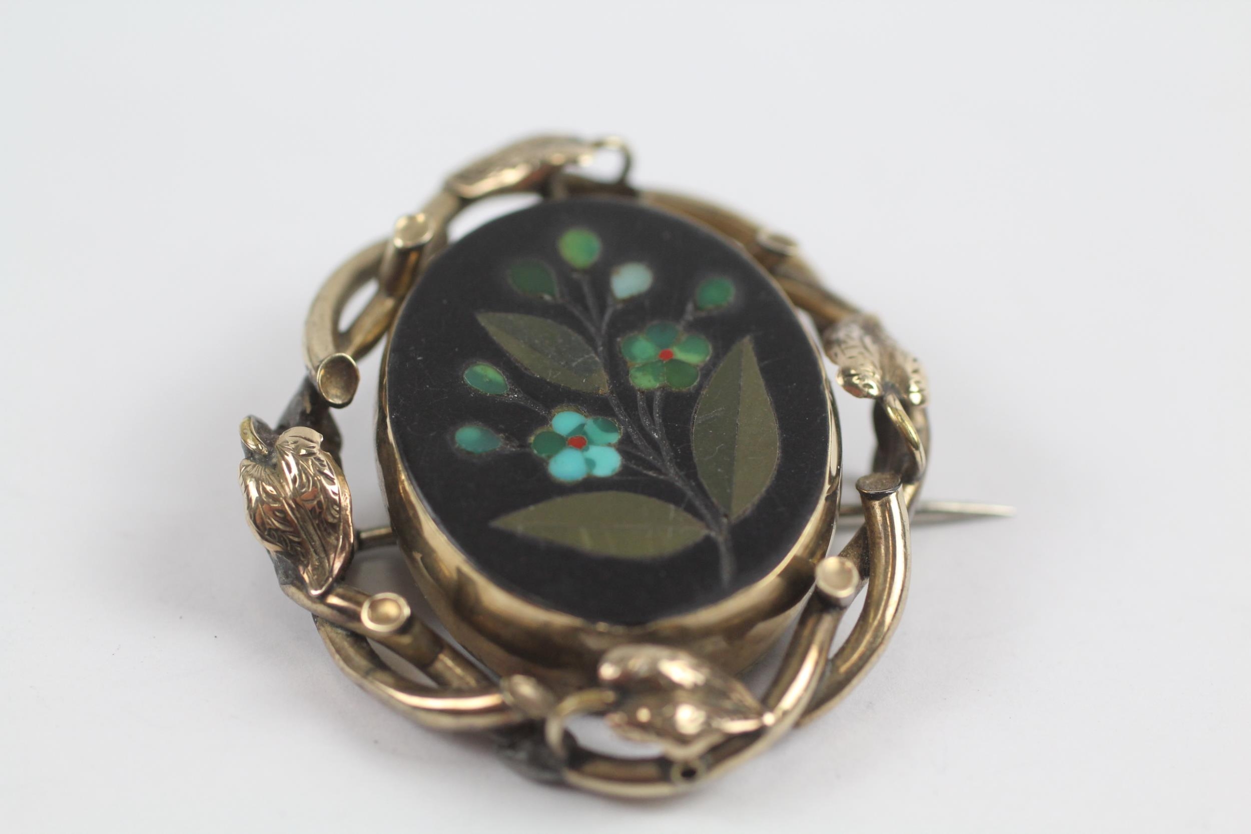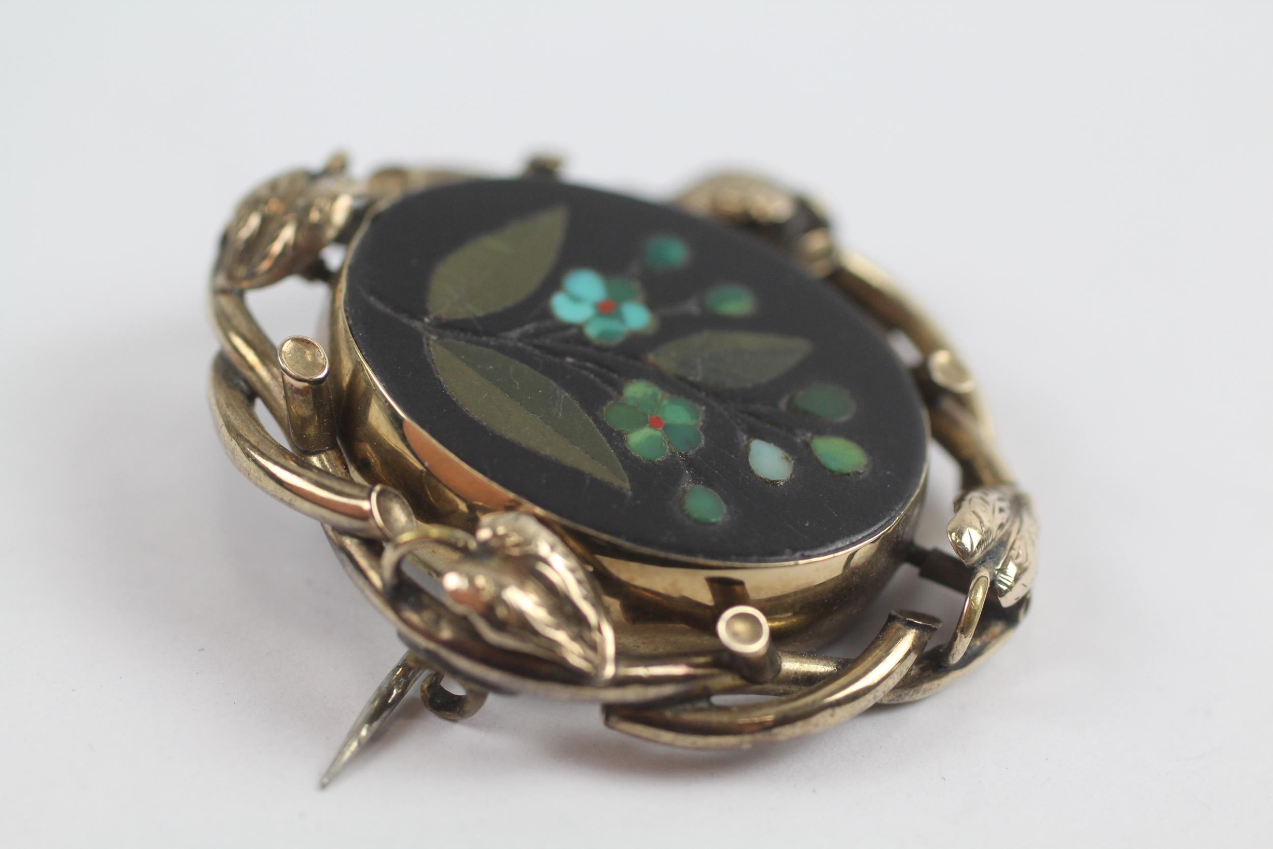 9ct Gold Framed Victorian Pietra Dura Multi-Gemstone Set Brooch (13.3g)
