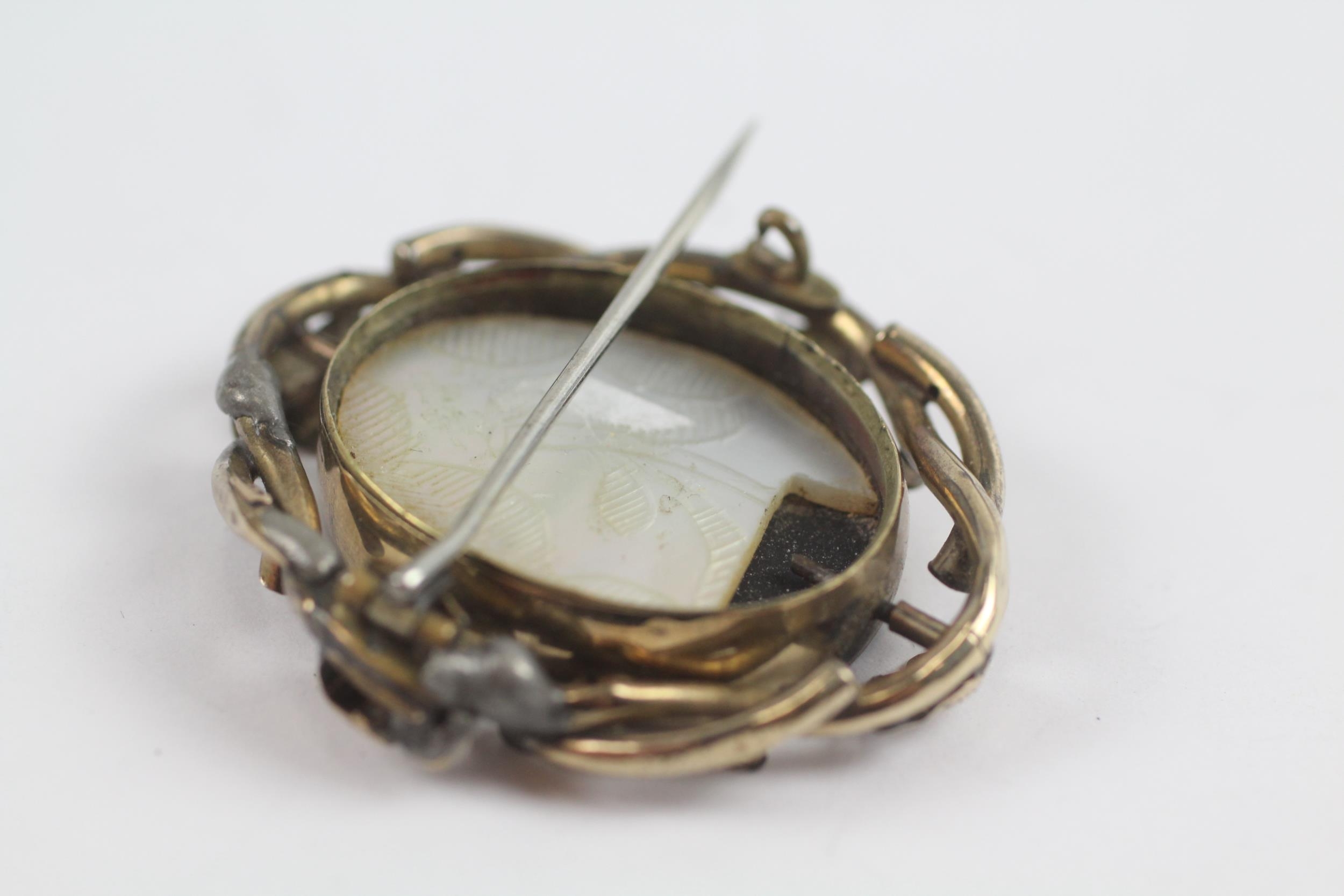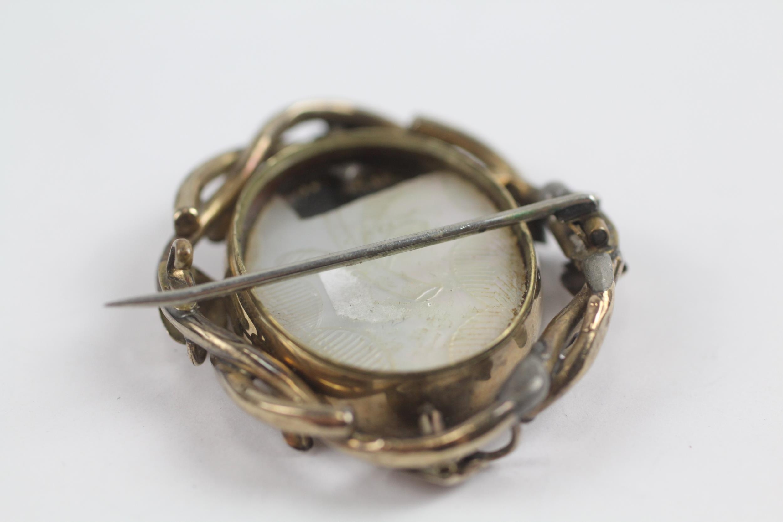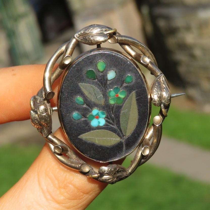 9ct Gold Framed Victorian Pietra Dura Multi-Gemstone Set Brooch (13.3g)