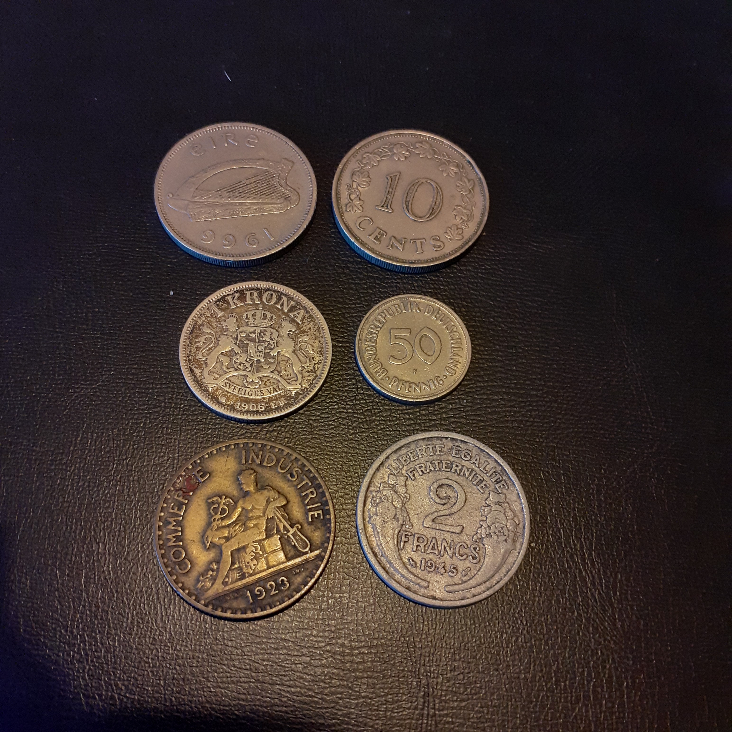 Silver and other collectible coins to include 1906 Krone (eb), 1923 2 Franc coin, 1945 2 Francs and more