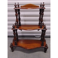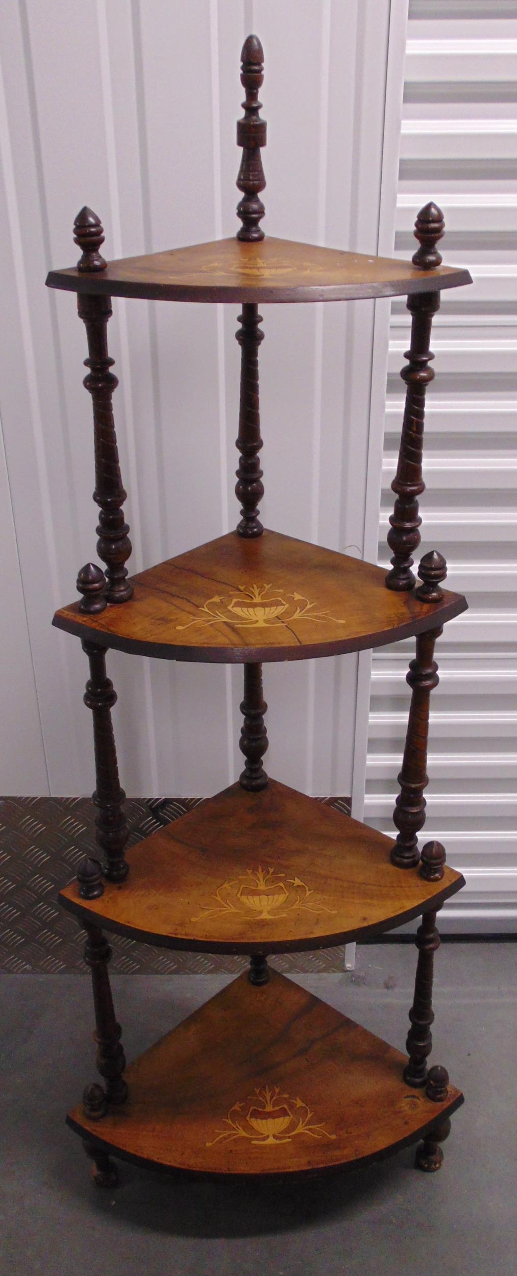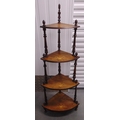 A Victorian mahogany four tier corner whatnot with turned column supports, 146 x 57 x 38cm
