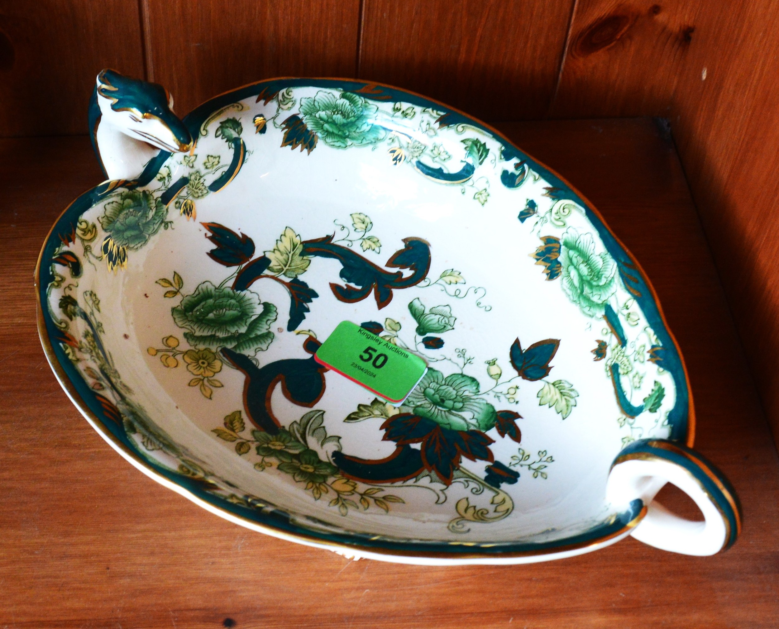 Masons Chartreuse China Bowl having a Serpent Head and Tail Handle