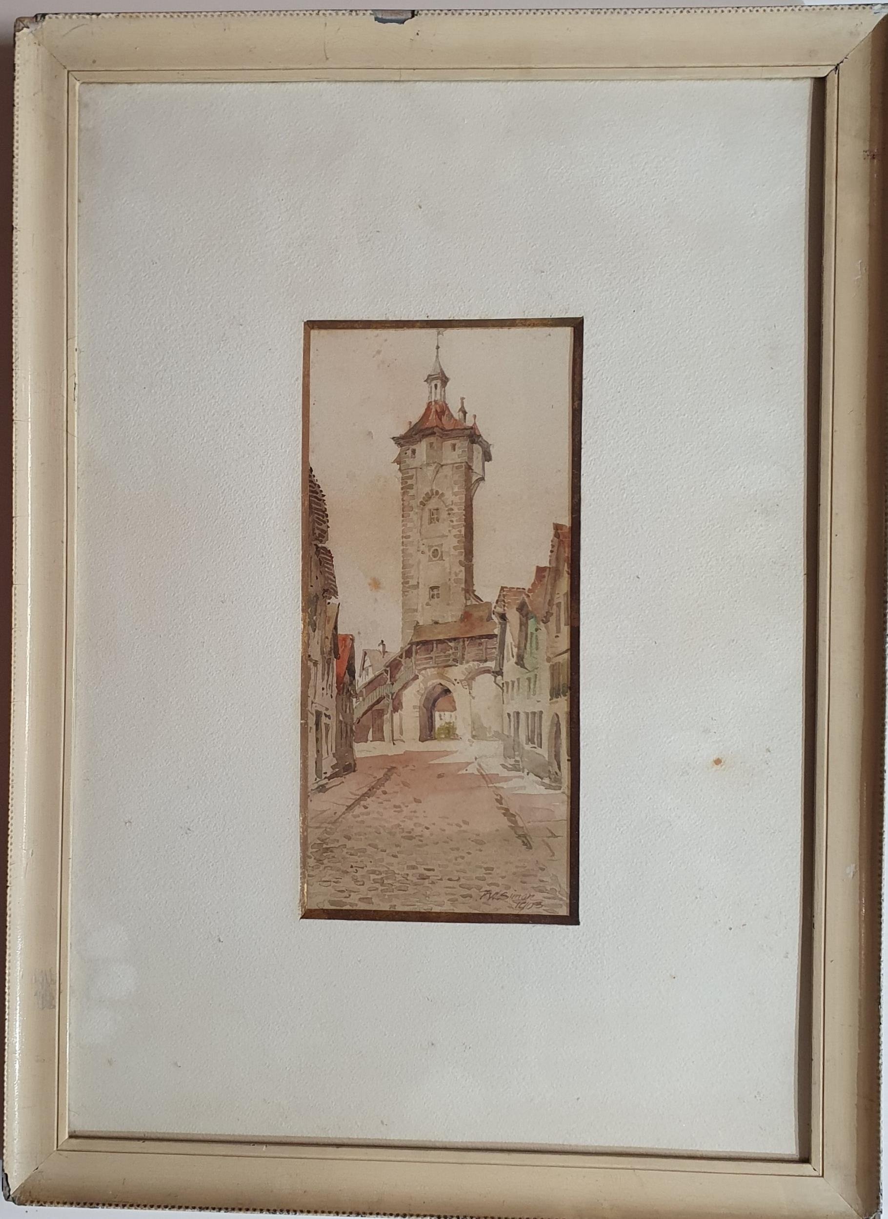 A Pair of late 19th Century Watercolours of a Continental street scenes indistinctly signed LL. 26 x 12cm approx.