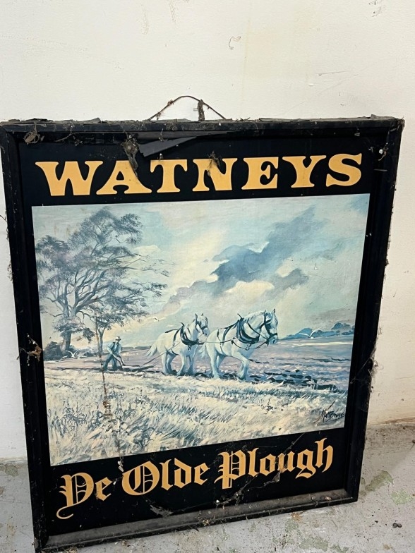 A wooden pub sign for The Old Plough 77cm x 65cm