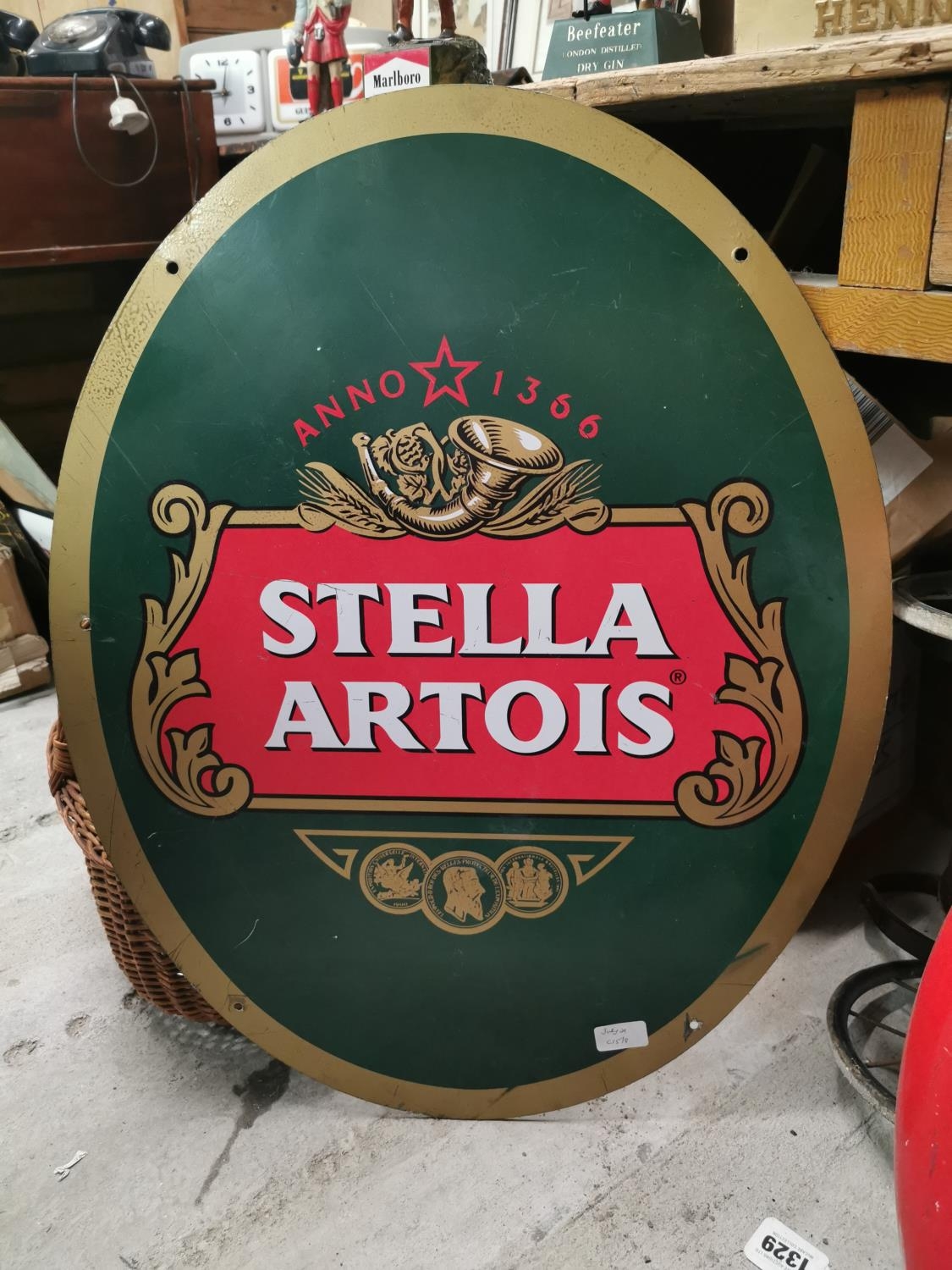 Stella Artois alloy advertising sign {72 cm H x 57 cm W}.