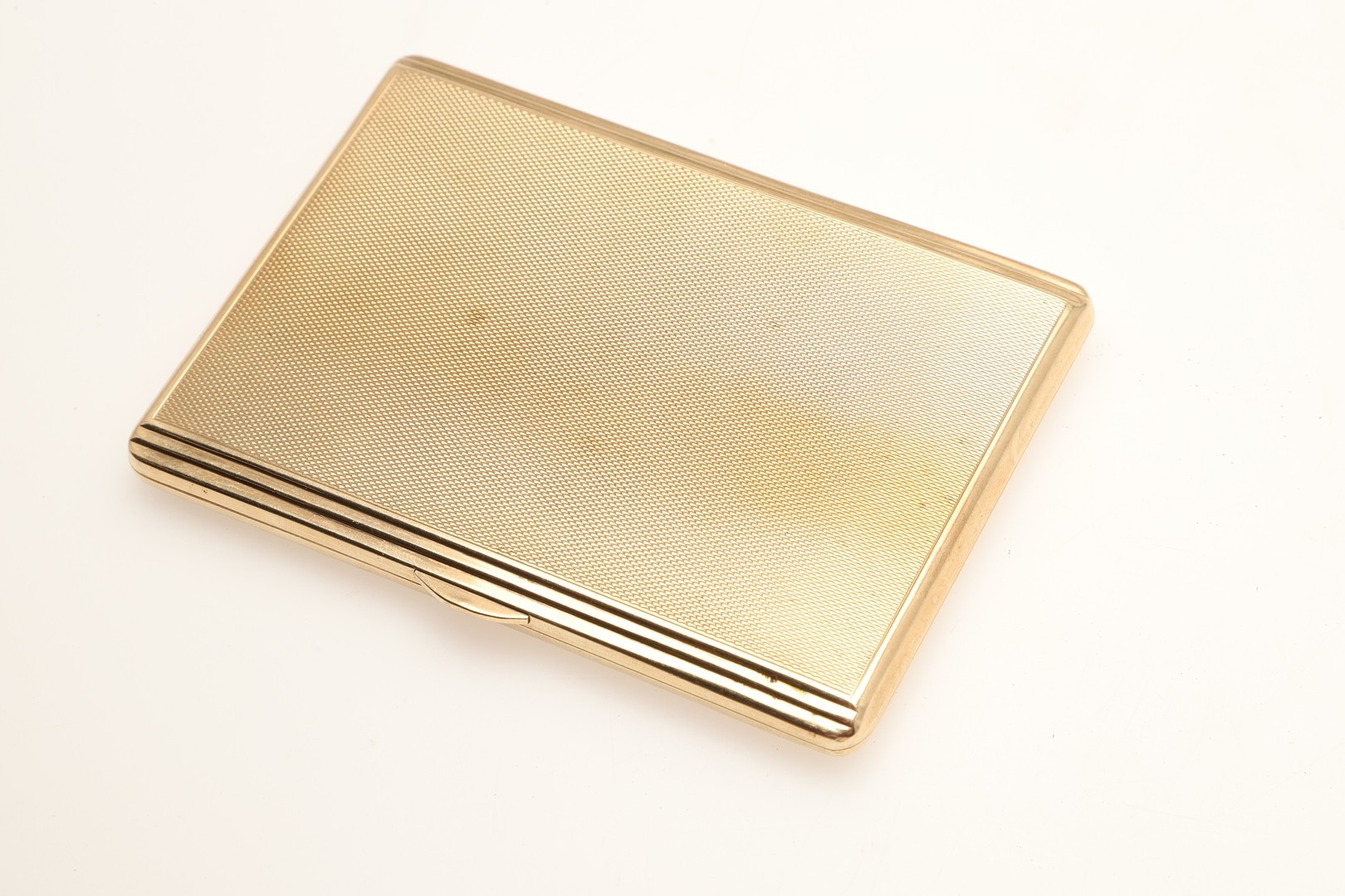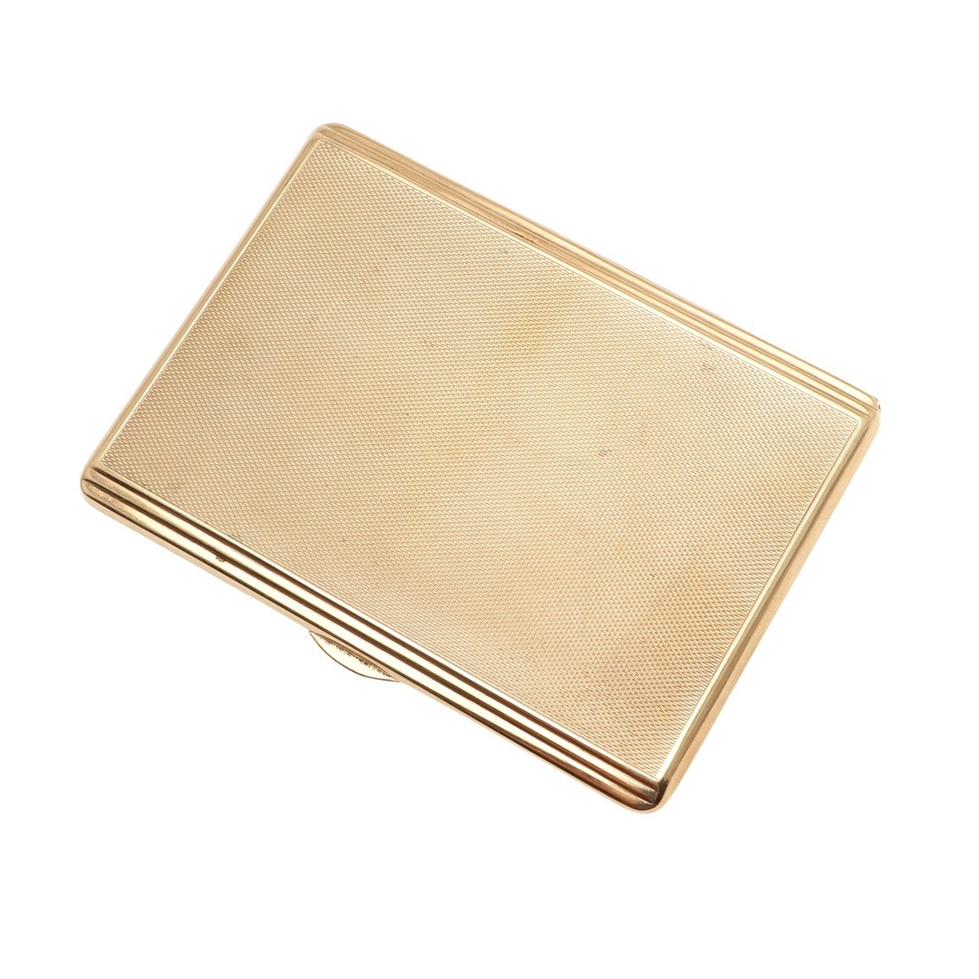 A GEORGE VI 9 CARAT GOLD CIGARETTE BOX. Rectangular shape with engine turned decoration Birmingham 1947, 149g 11.5cm long.