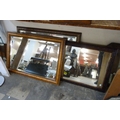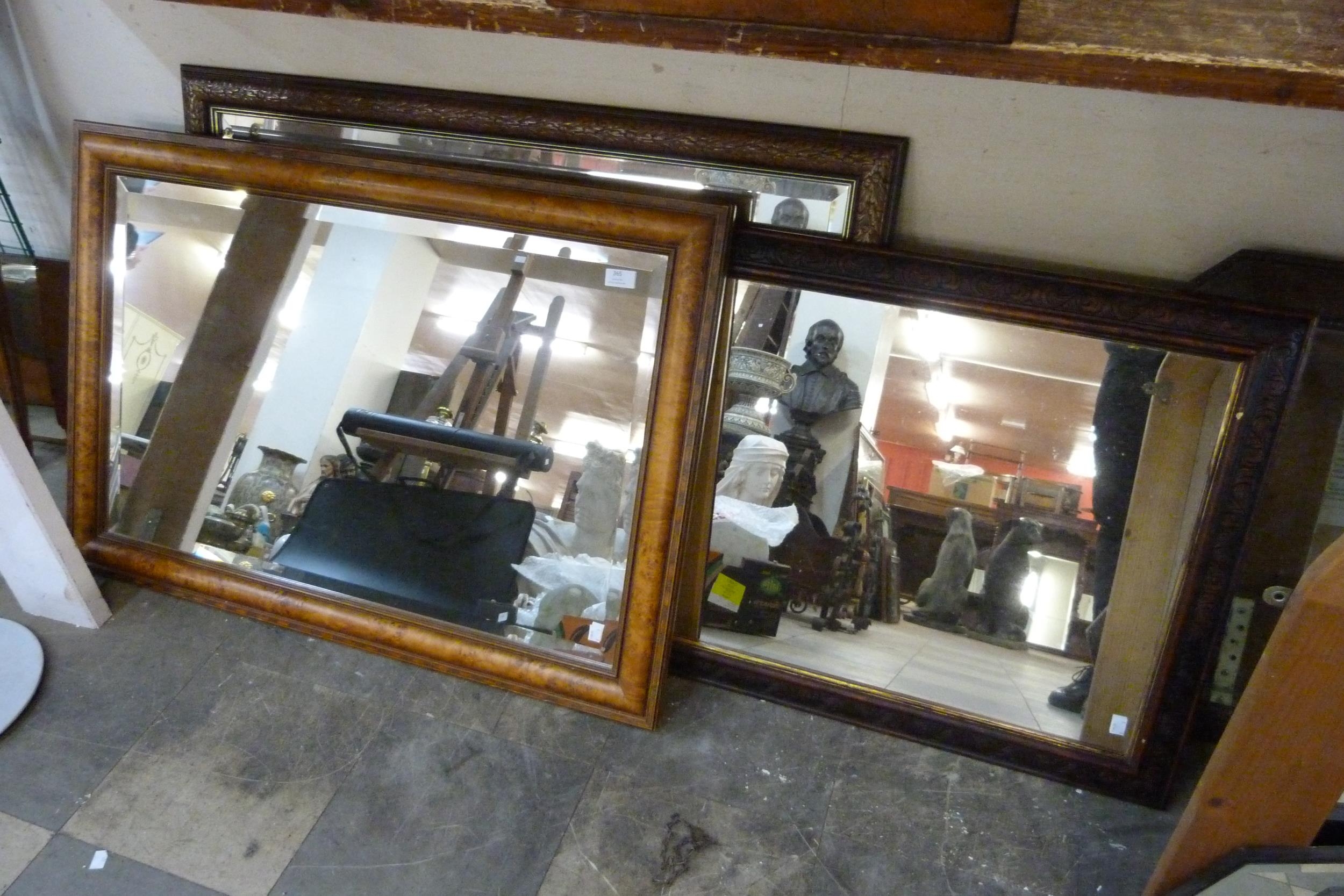 A birds eye maple framed mirror and two other mirrors