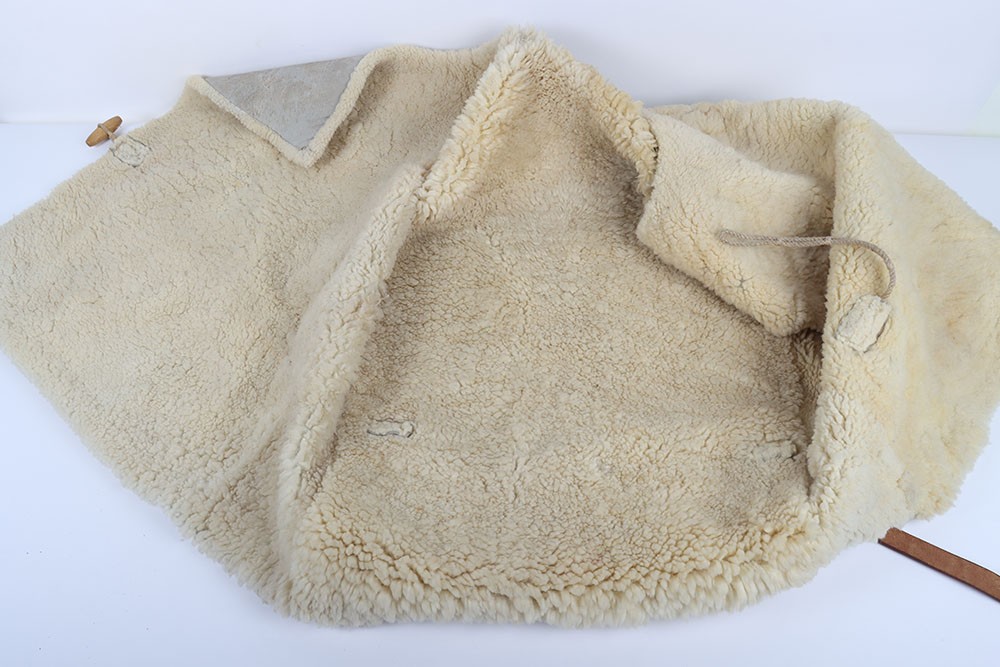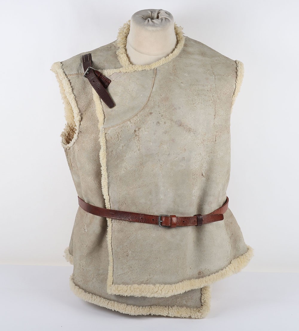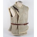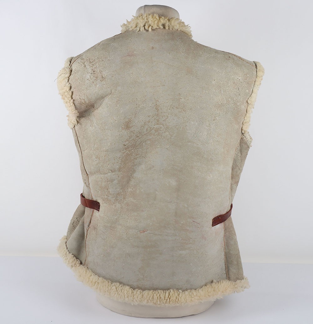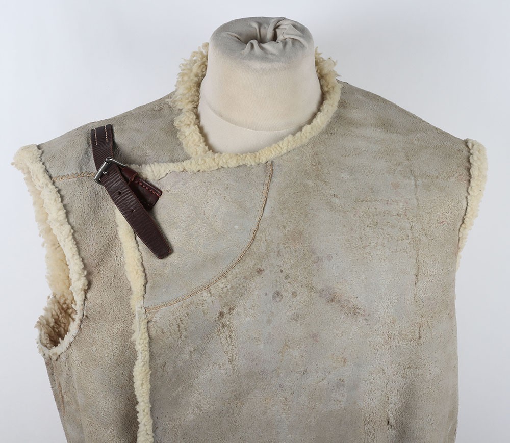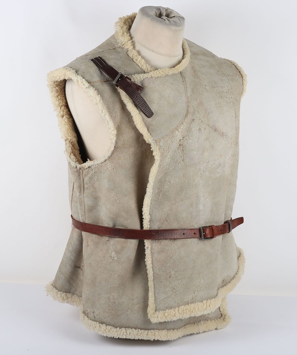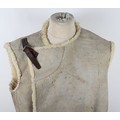 WW2 Period Sheepskin Waist Coat. RAF Aircrew Use. A good clean example of a private purchase sheepskin waist coat. Good clean condition with a nice sheep fur lining. Leather securing tabs with buckles present of which are replacements. Inside a toggle and string. Popular with RAF aircrews.