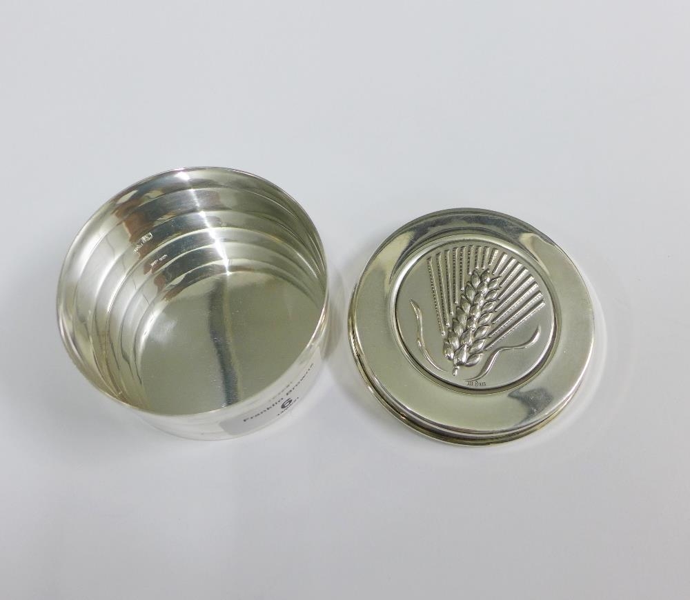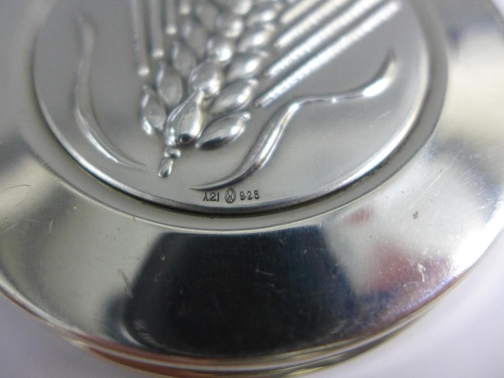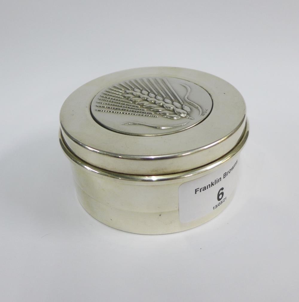Georg Jensen style wheat sheaf pattern silver box and cover, of circular form, stamped 925, A.21, 9cm