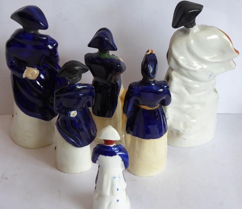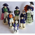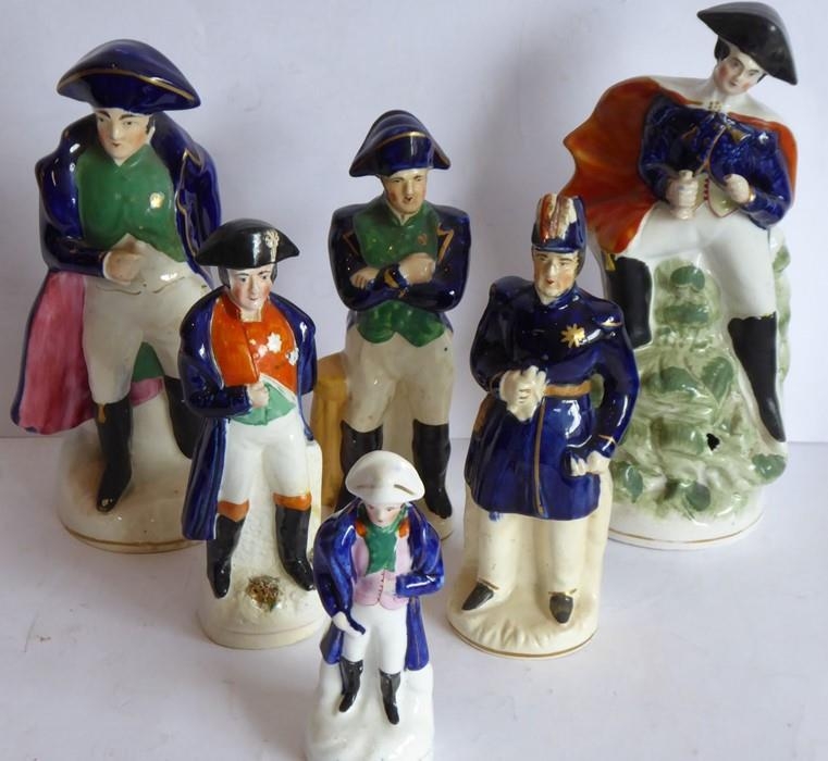 Six varying sized hand-decorated Staffordshire figure models of Napoleon; the tallest (with hole to green rockwork in front) 21cm