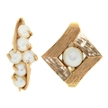 Two cultured pearl rings, in 9ct gold, London 1965 and 1969,...