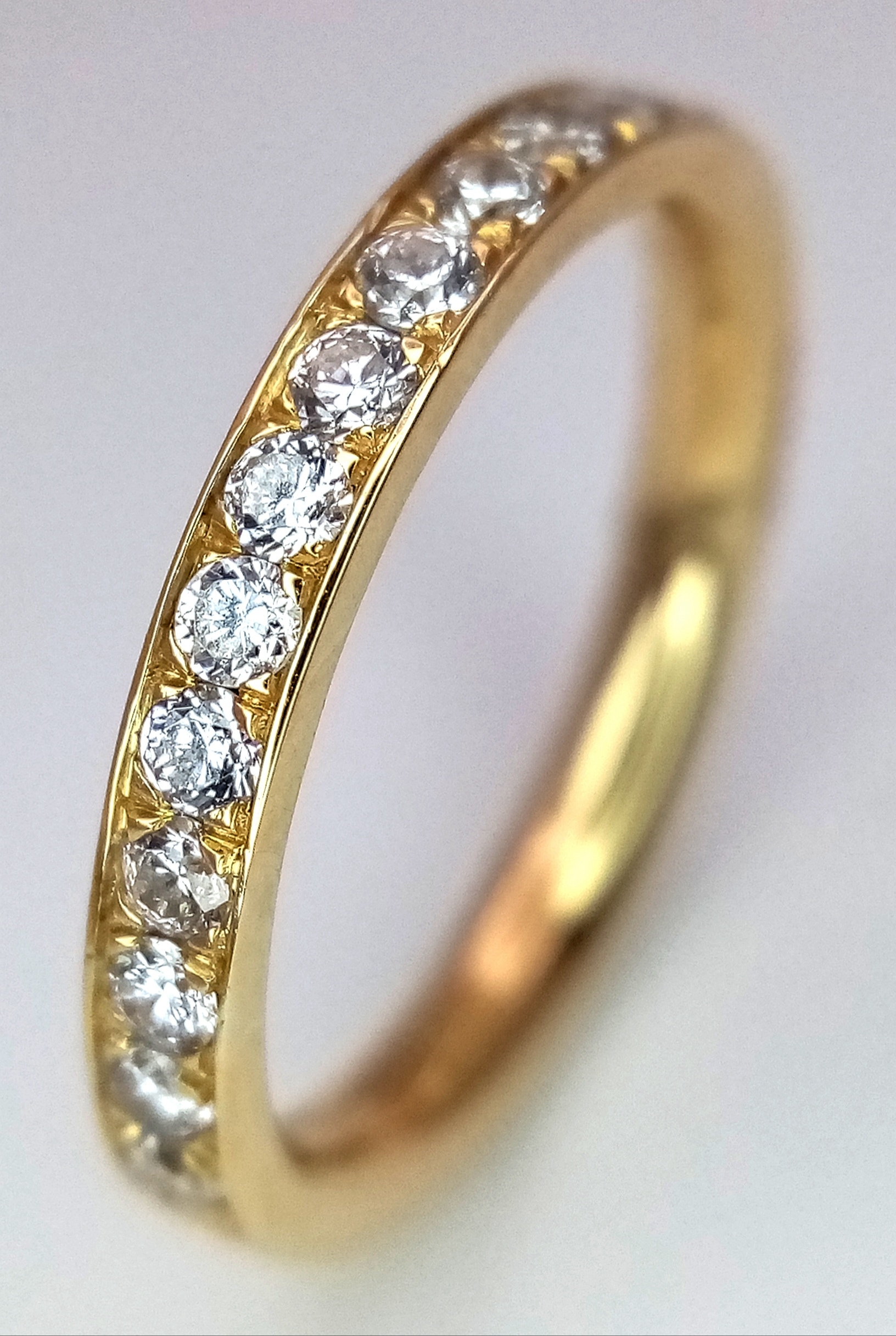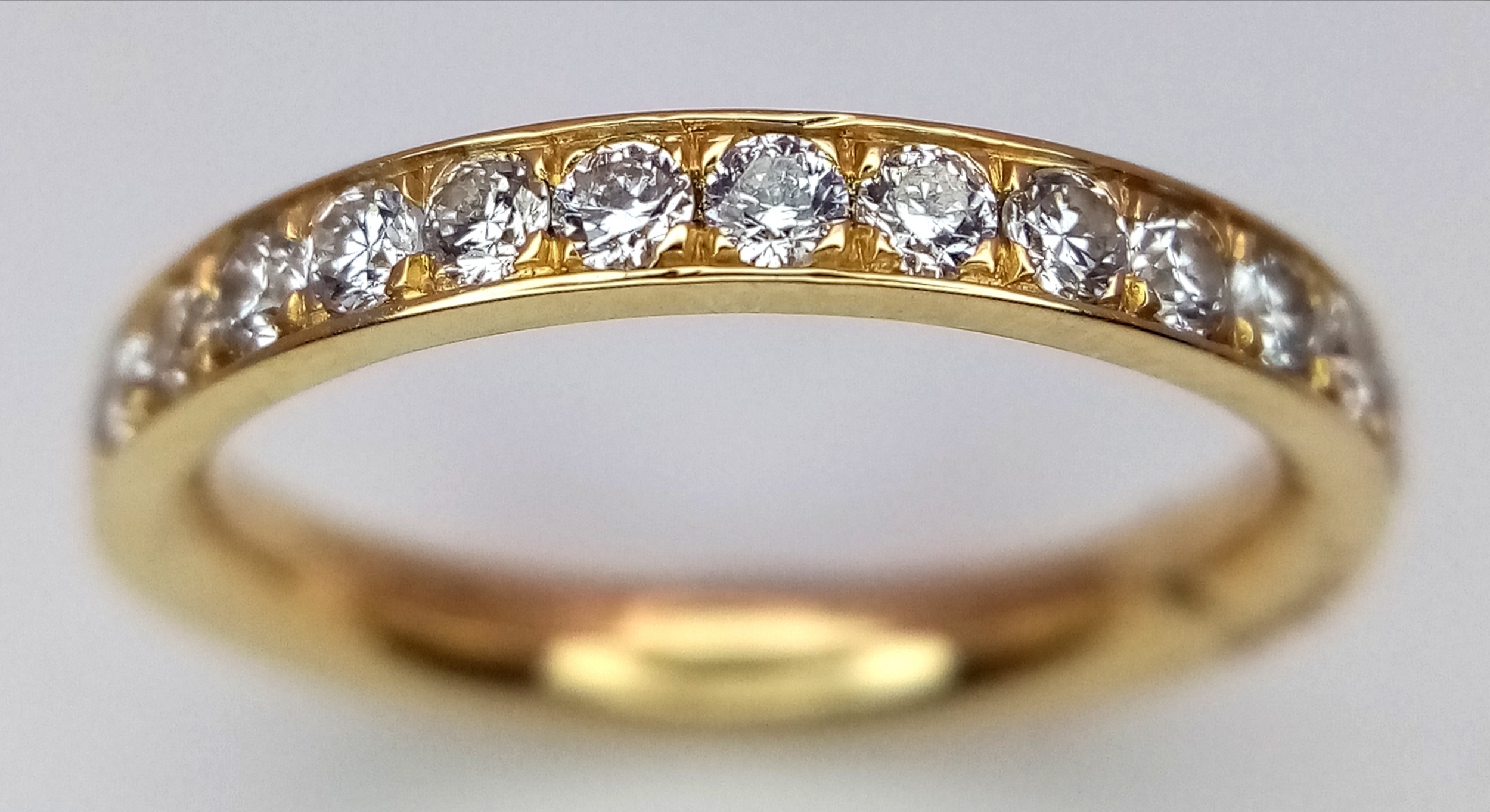 An 18K Yellow Gold Half Eternity Diamond Ring. Size H. 2.4g total weight. NL-1204.