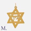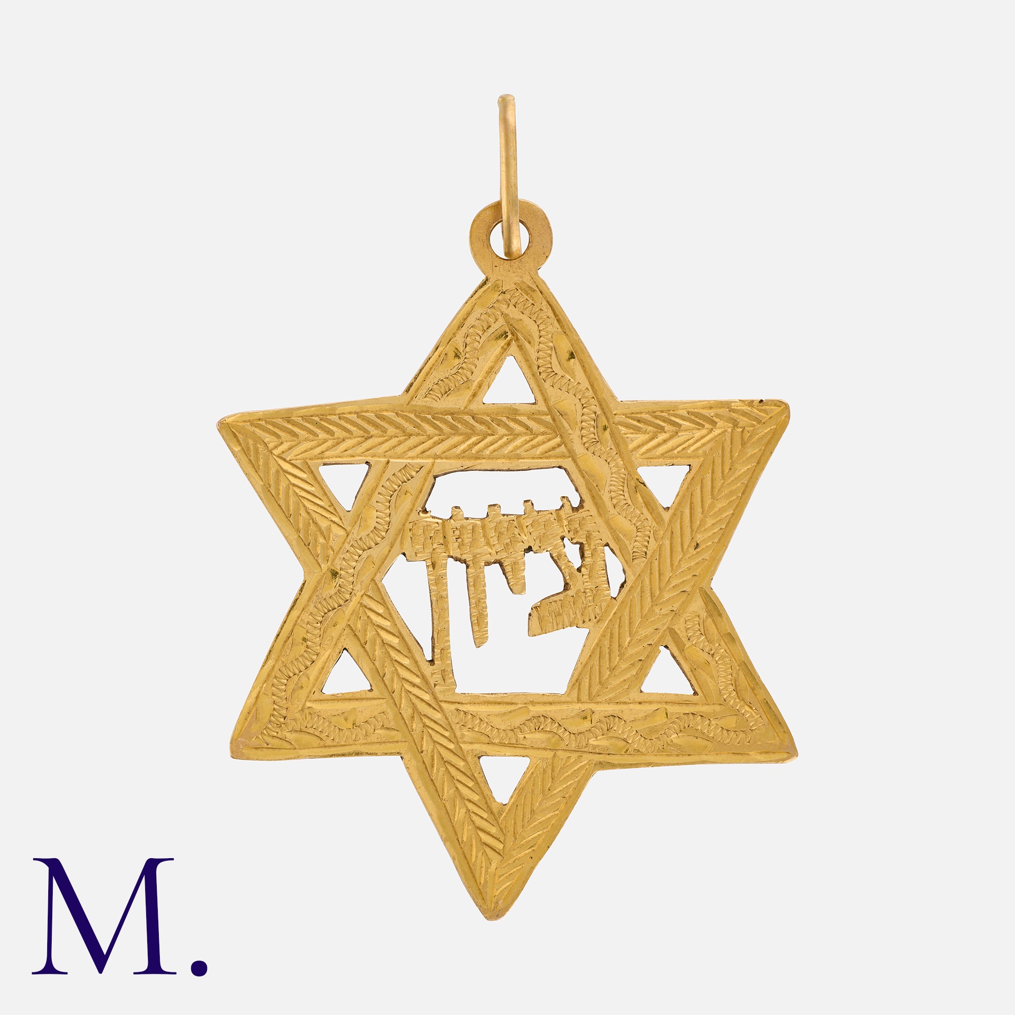 A Star Of David Pendant in yellow gold, the ornate engraved star depicting the word 'Zion' in Hebrew to the centre. Unmarked, tests indicate 18 carat gold.