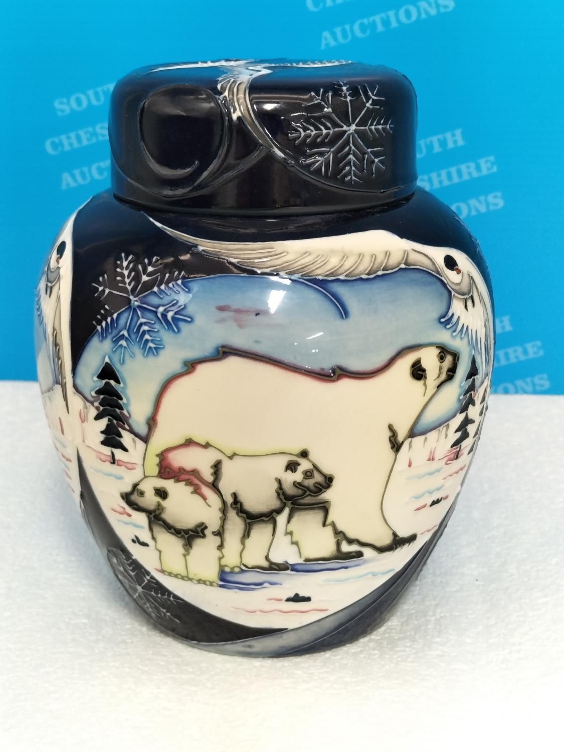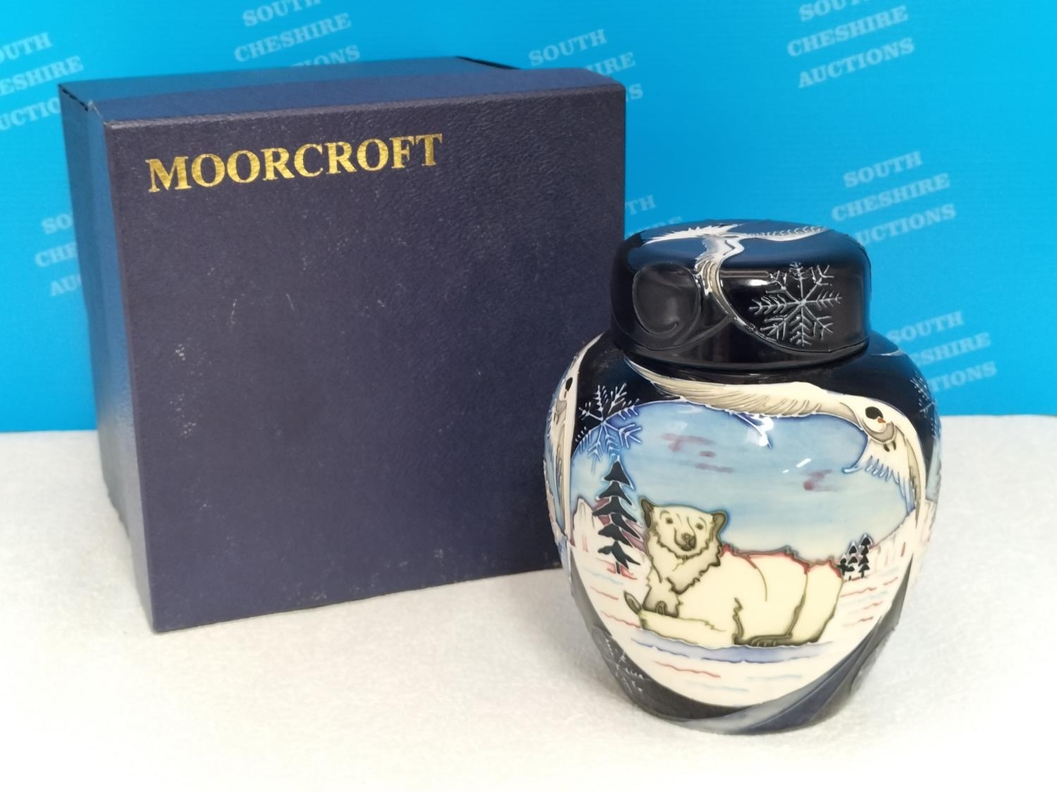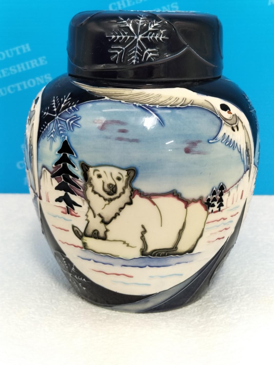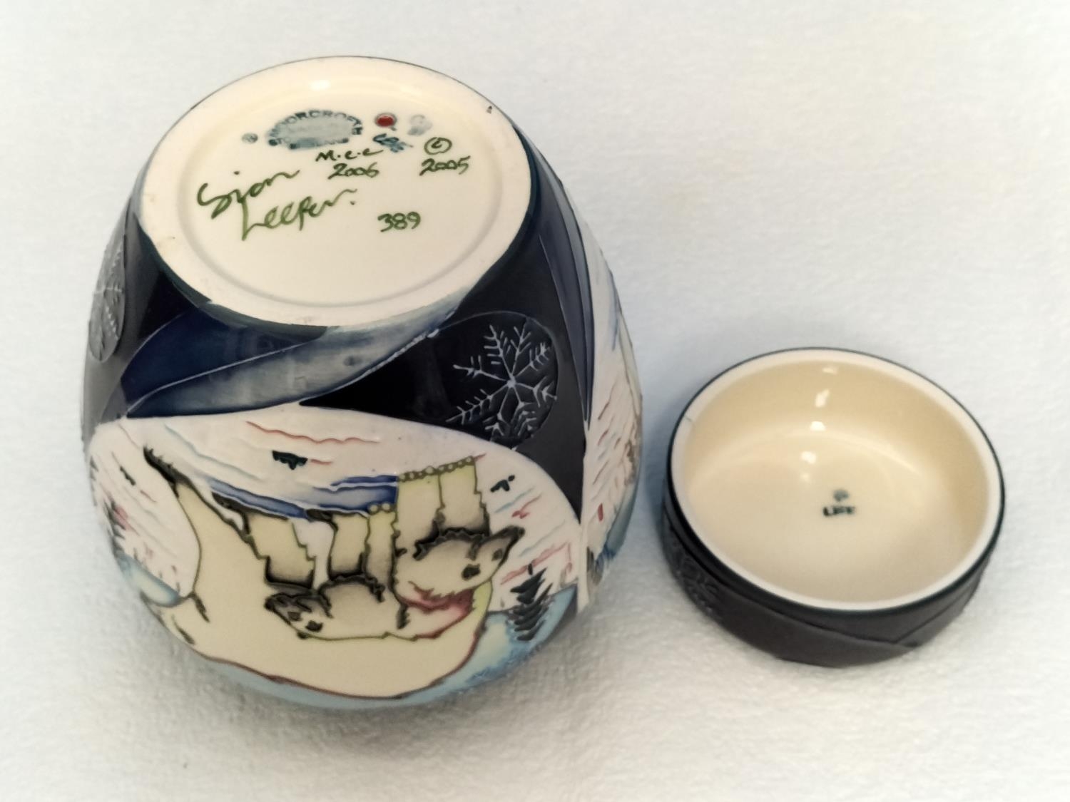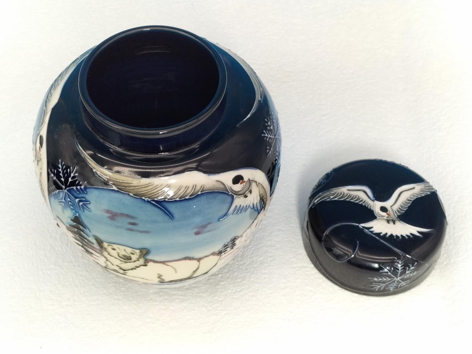 Boxed Moorcroft Collectors Club 'Arctic Tundra' 16cm Lidded Ginger Jar by Sian Leeper 2006. Red Dot