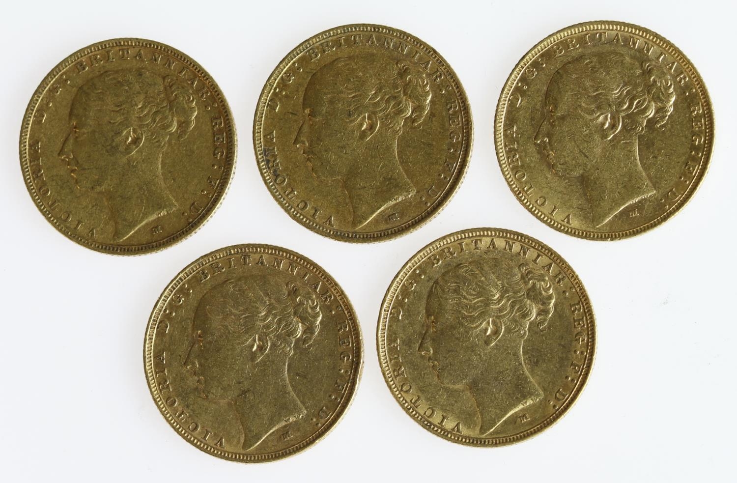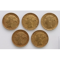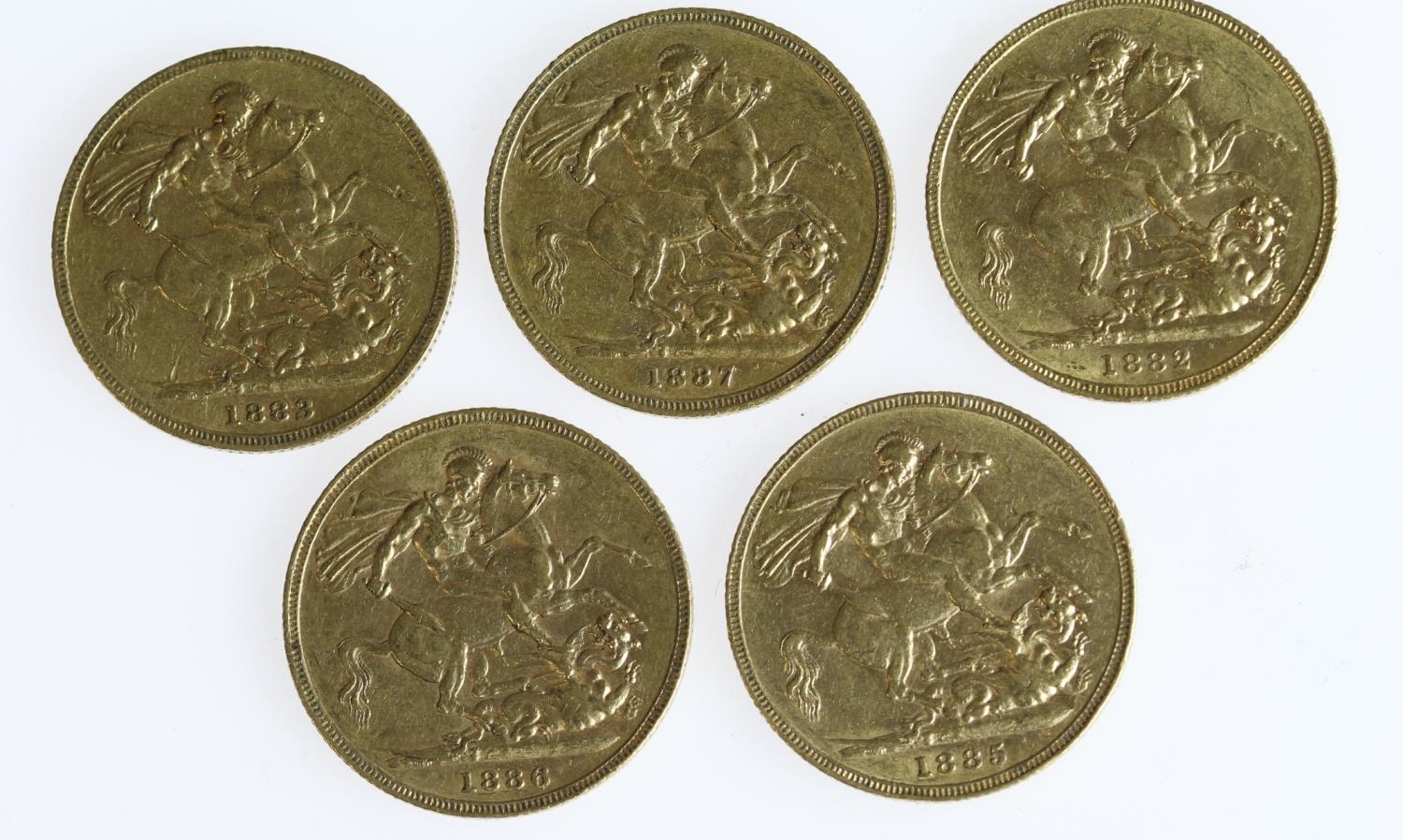 Sovereigns (5) All St George Melbourne Mint. 1882, 1883, 1885, 1886 & 1887 (YH). GF - GVF